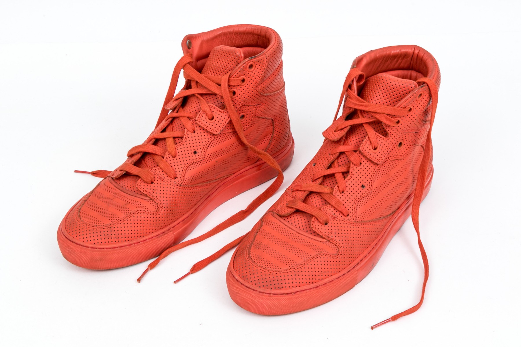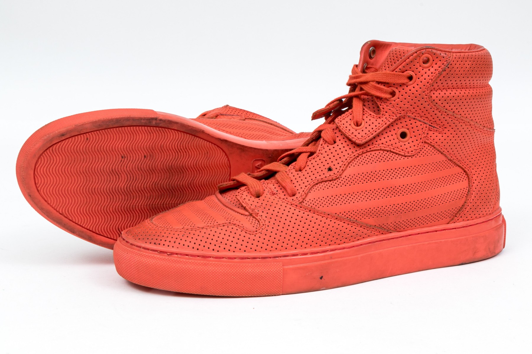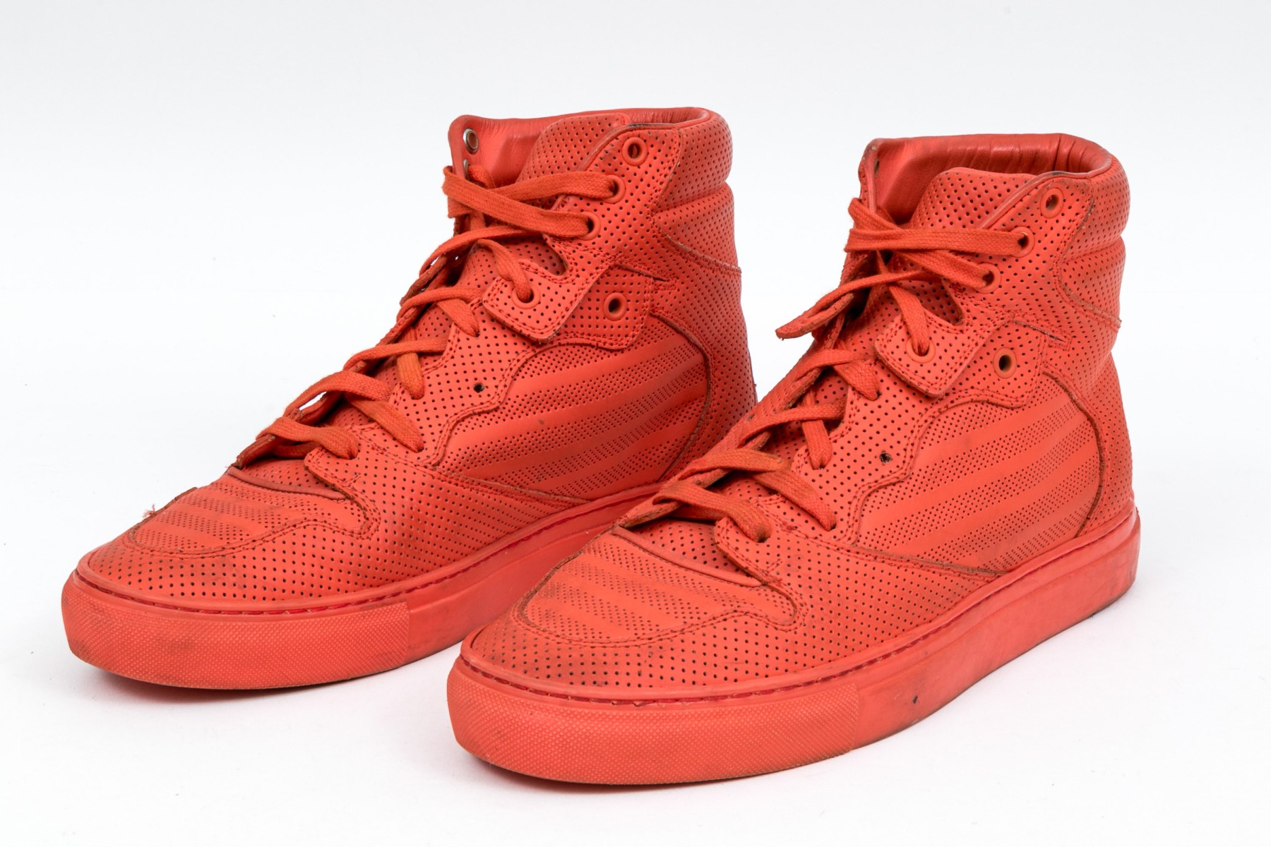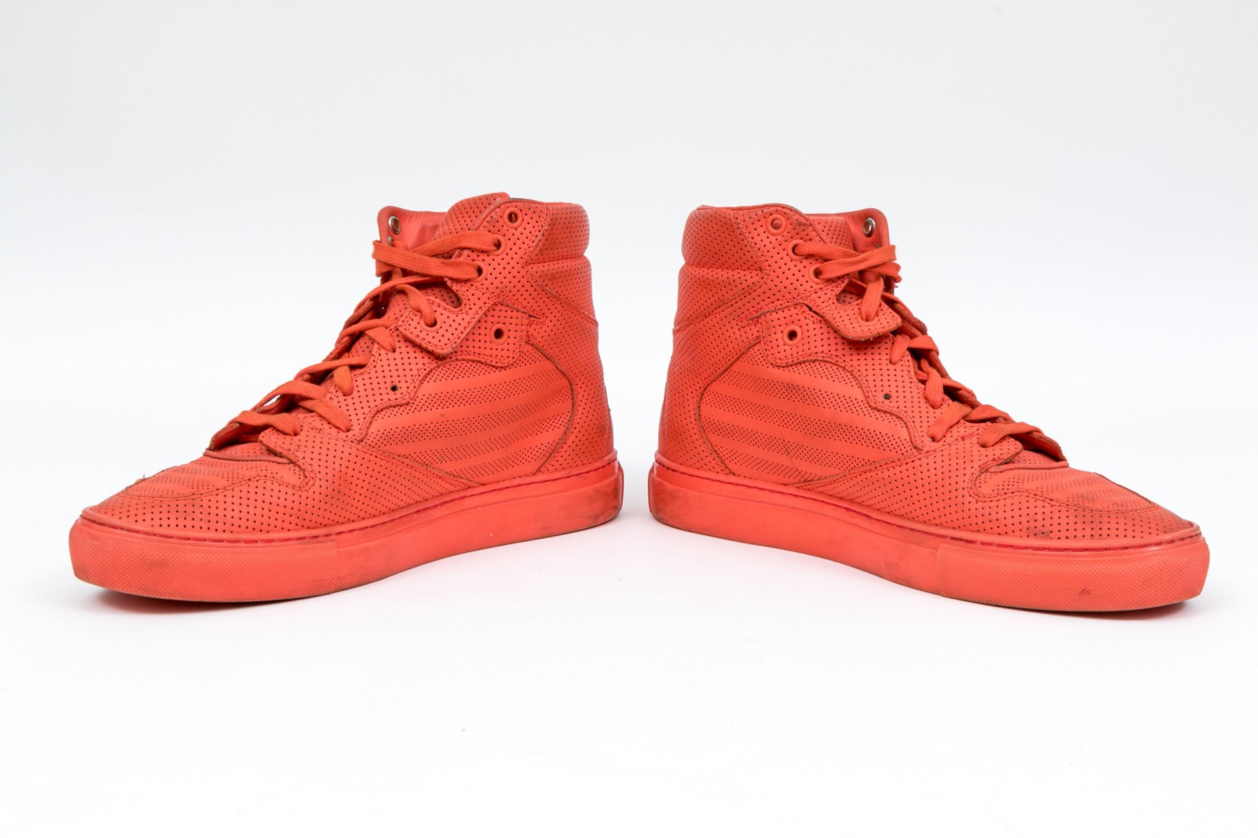 Balenciaga striking red orange leather mens high top sneakers, size 41