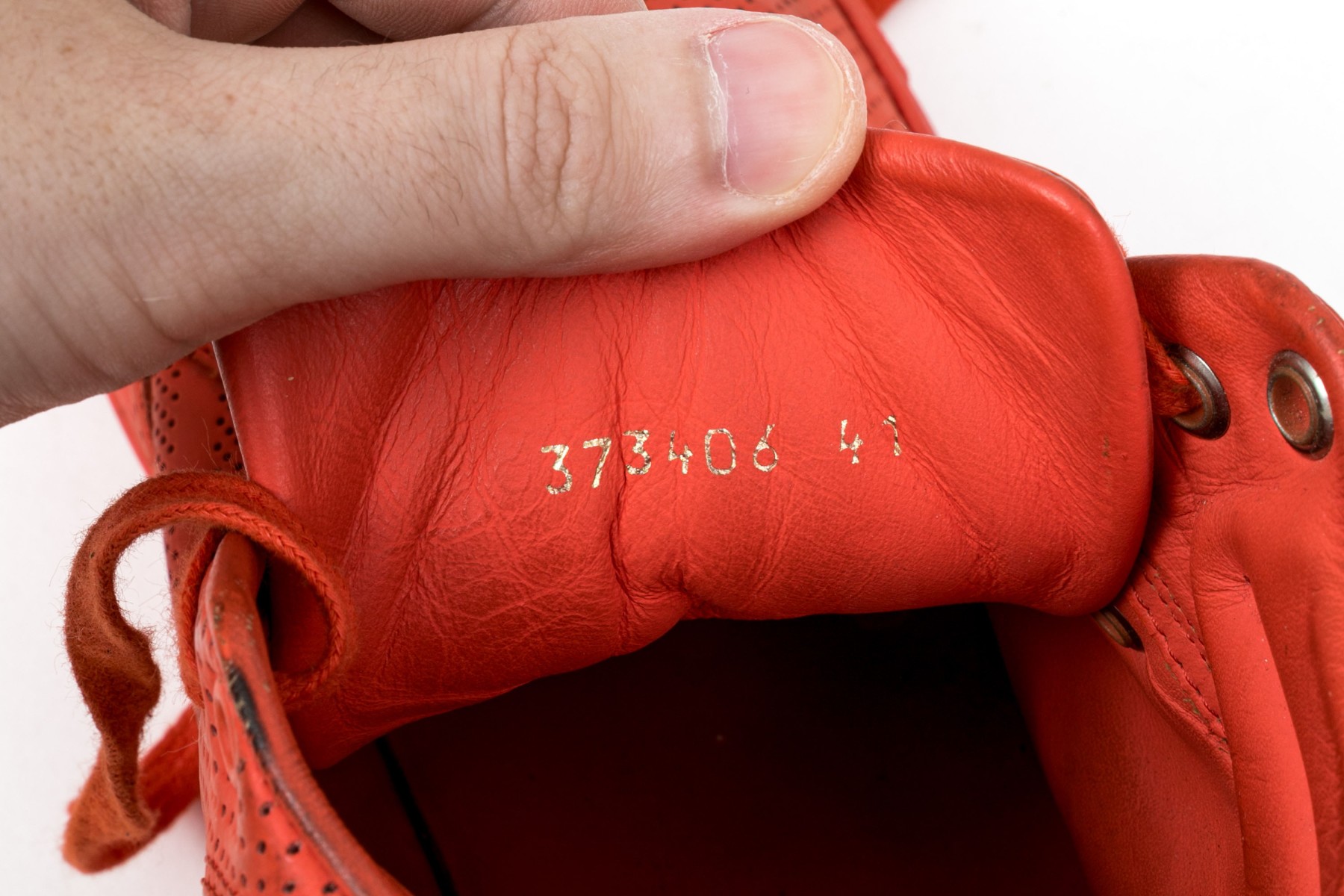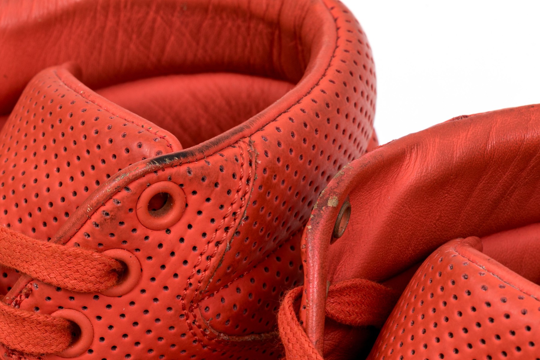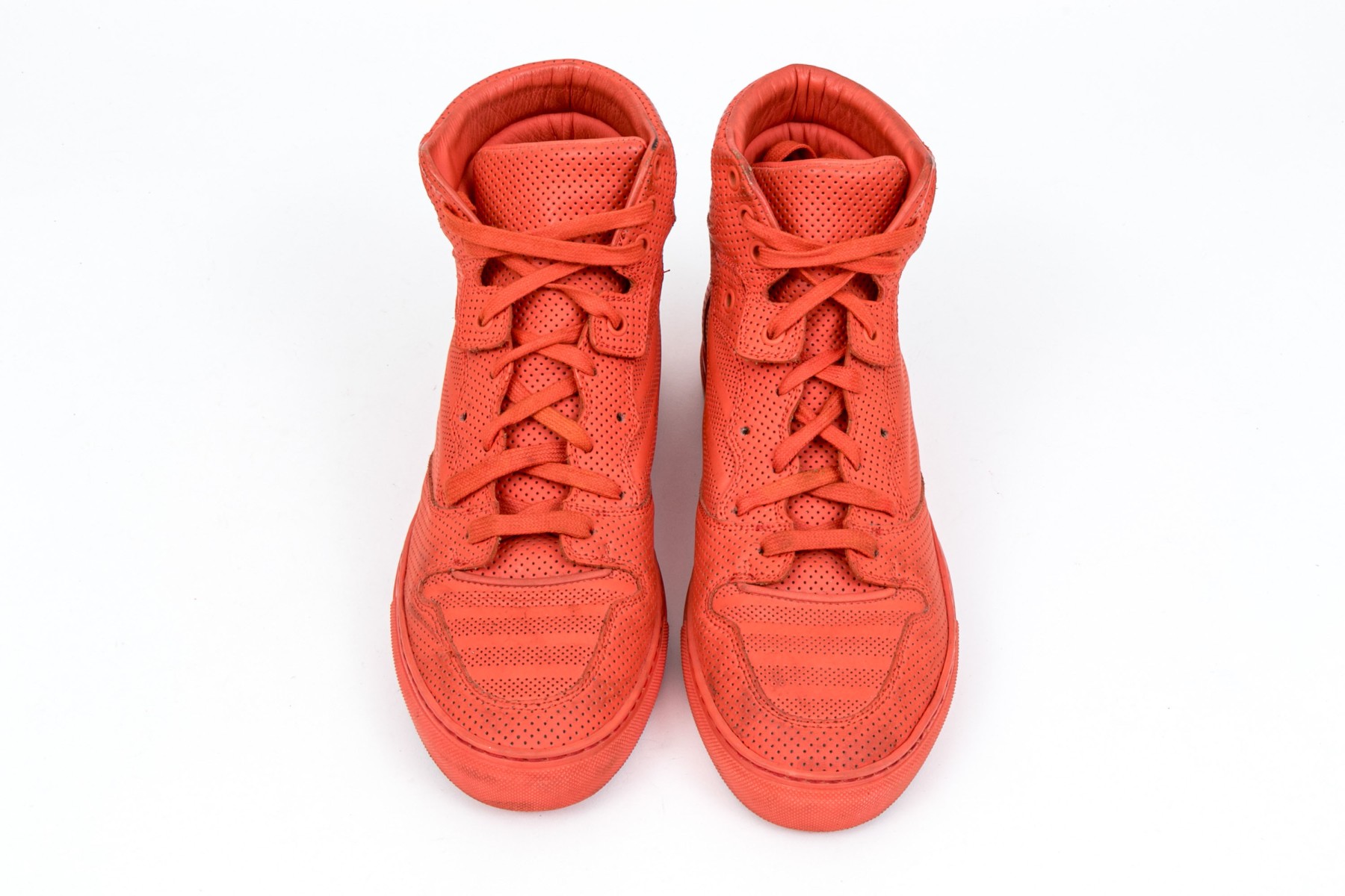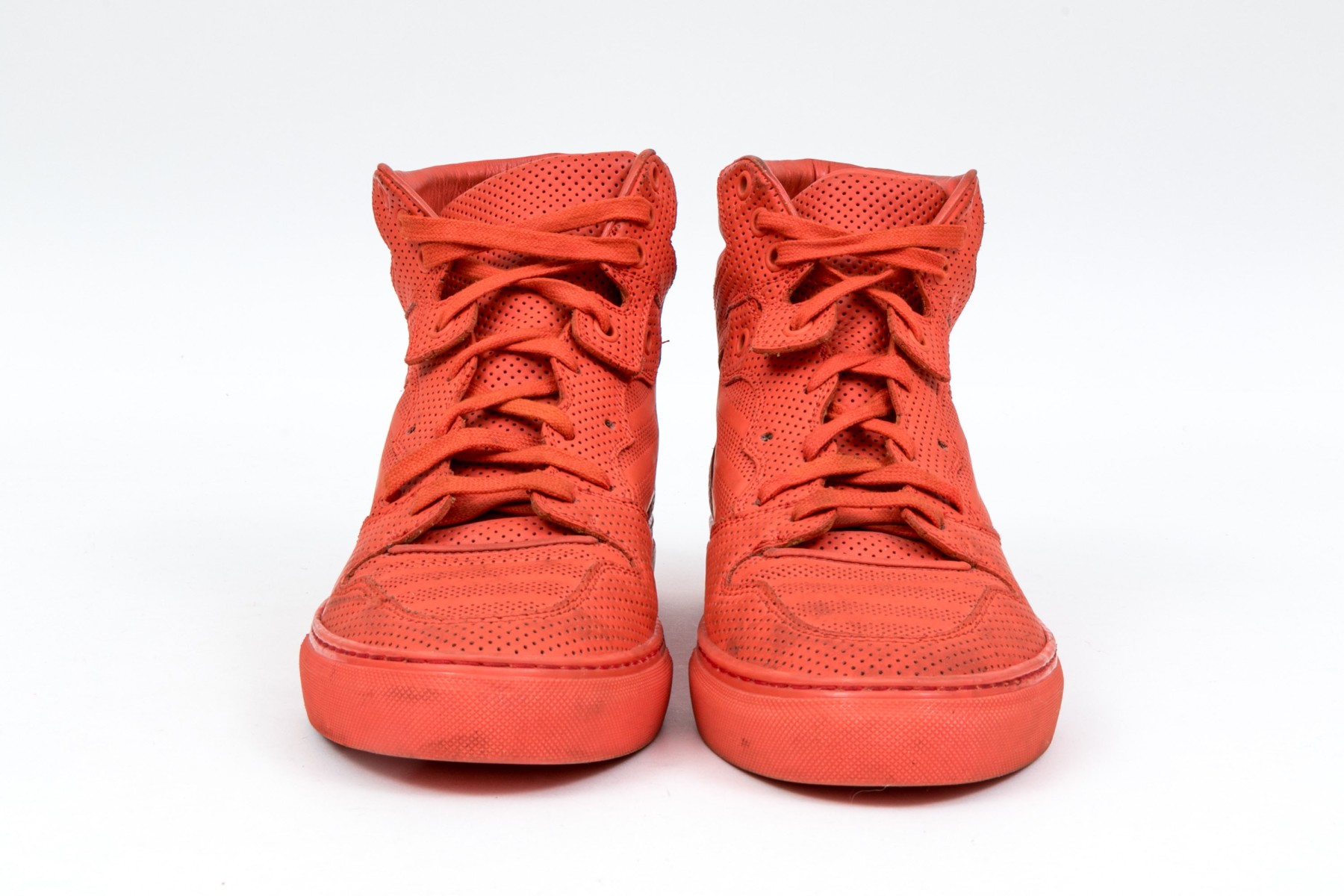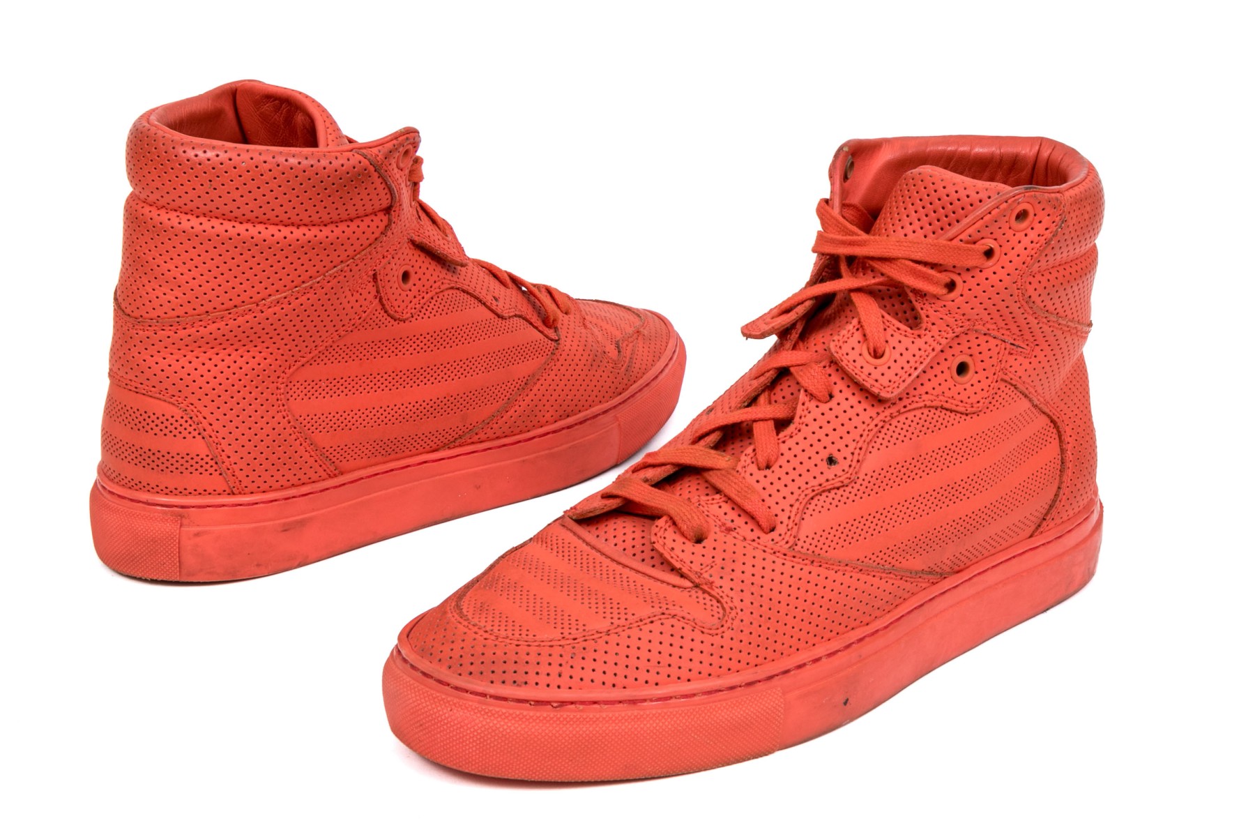 Balenciaga striking red orange leather mens high top sneakers, size 41