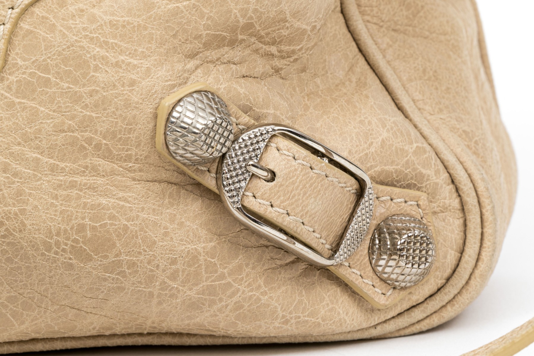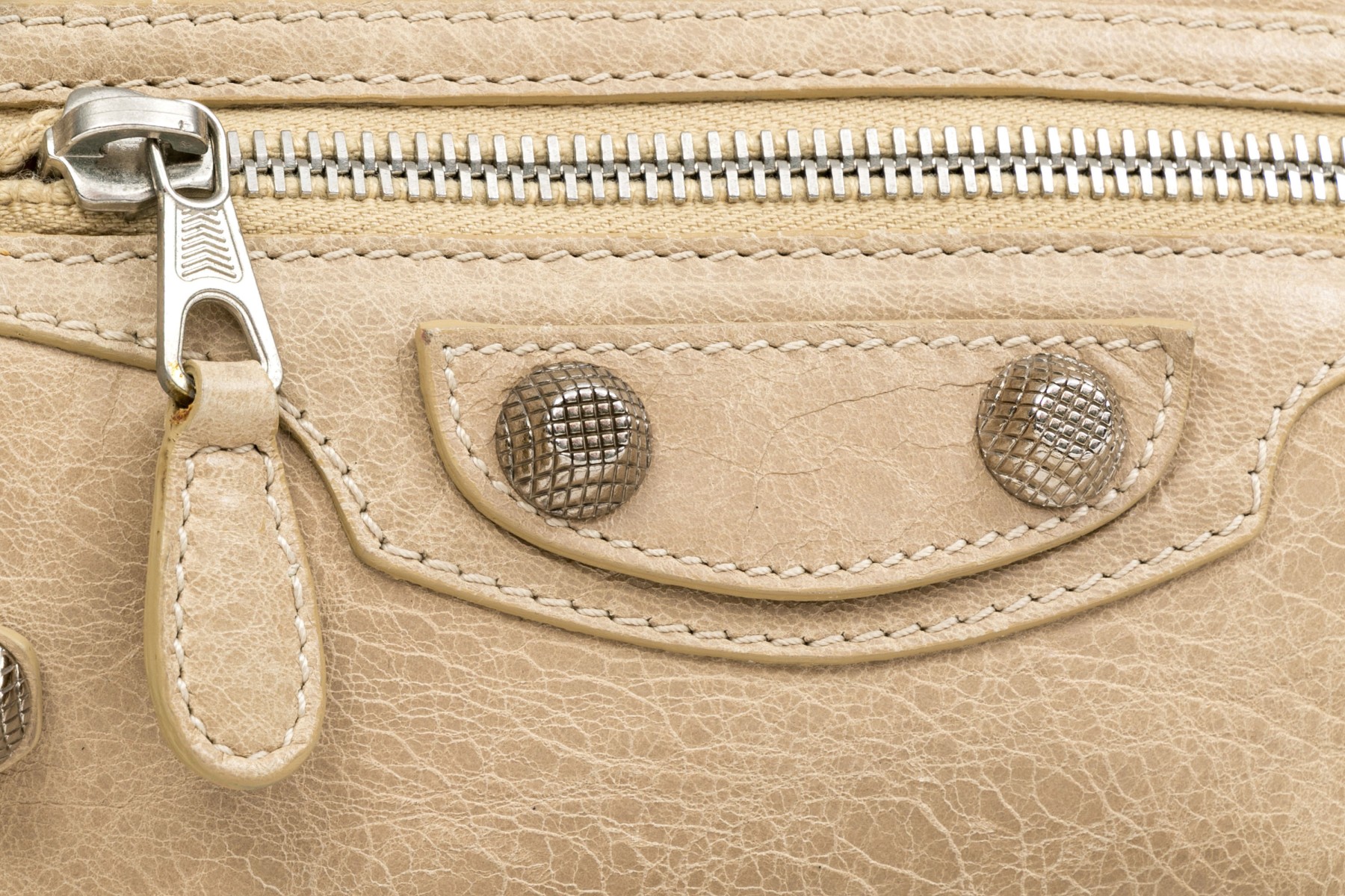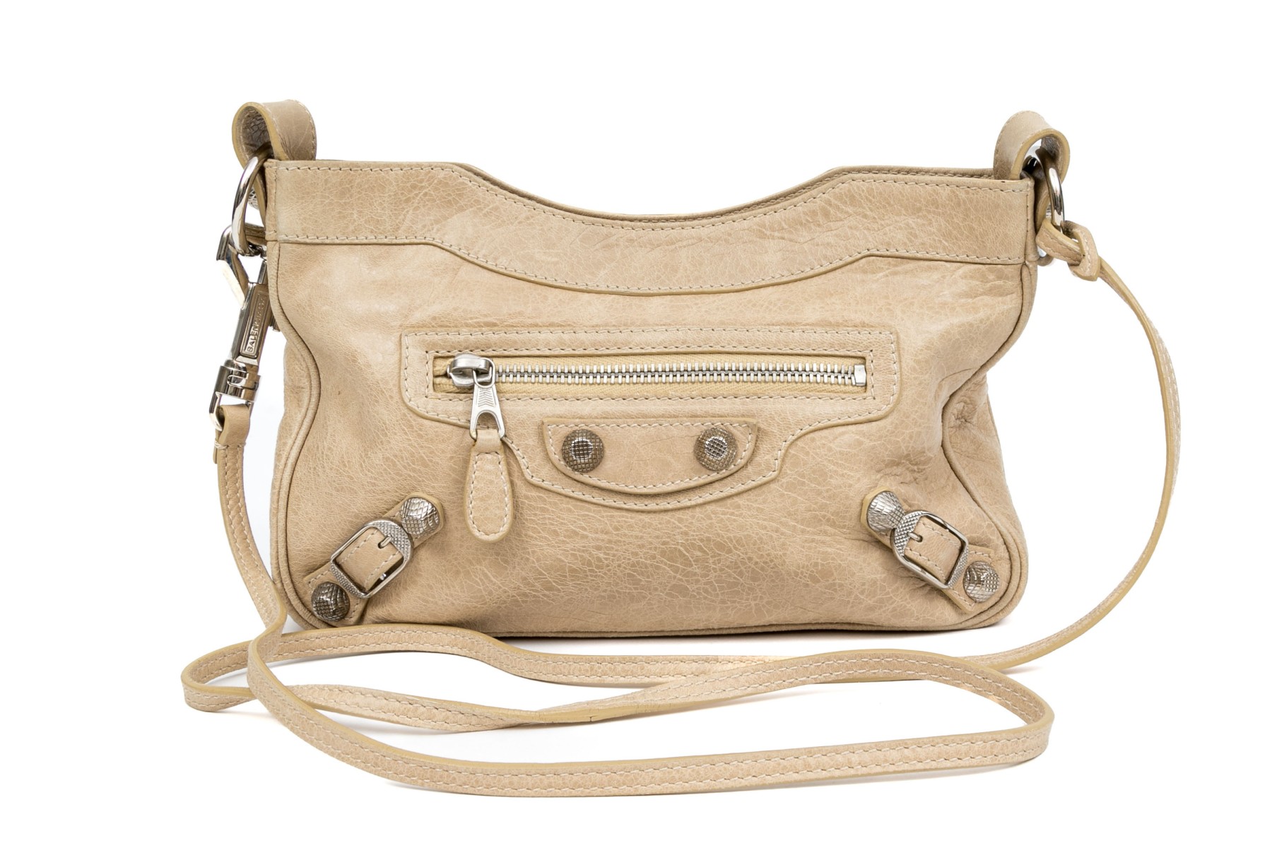 Balenciaga striking tan leather baguette top zip shoulder bag, studded accents