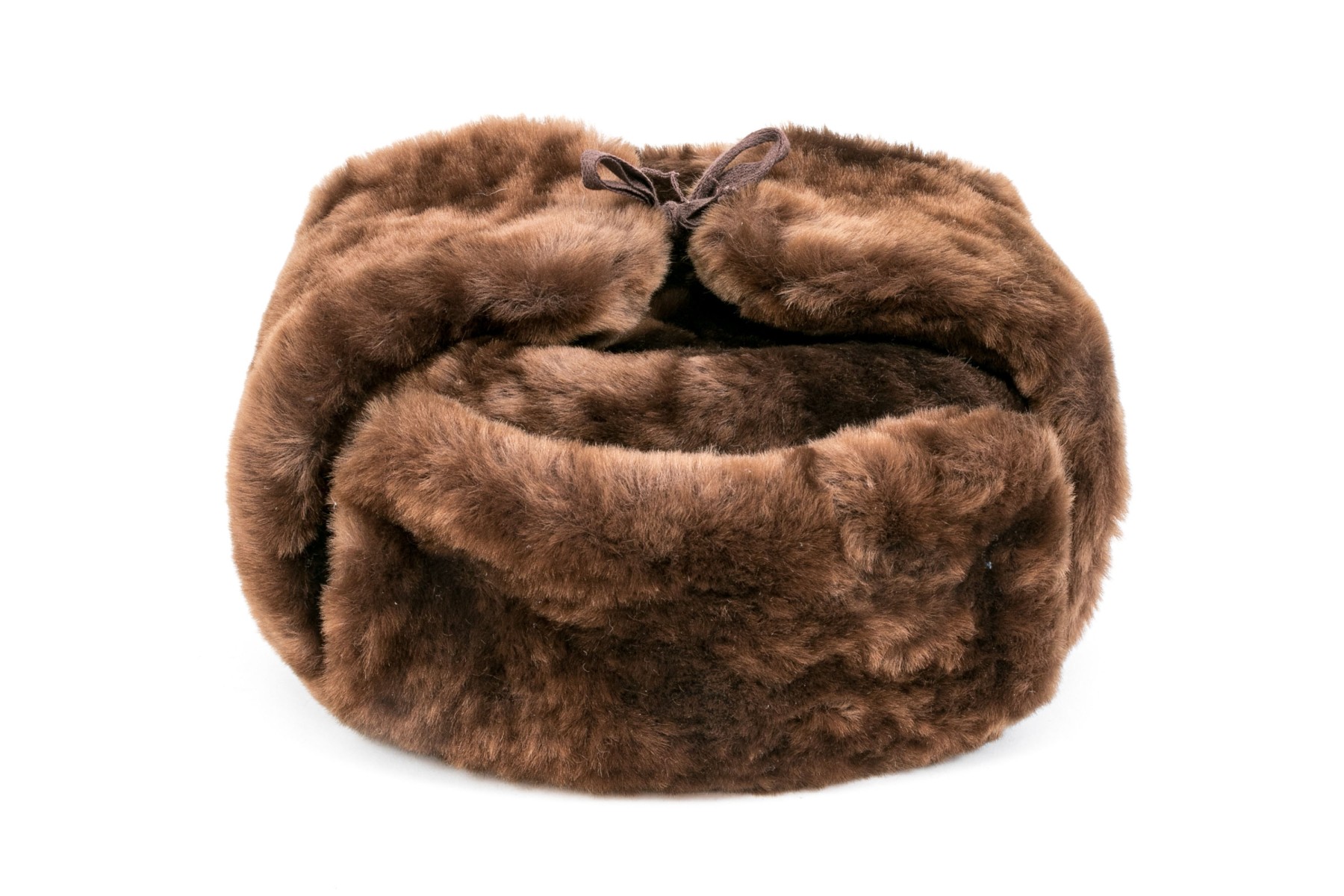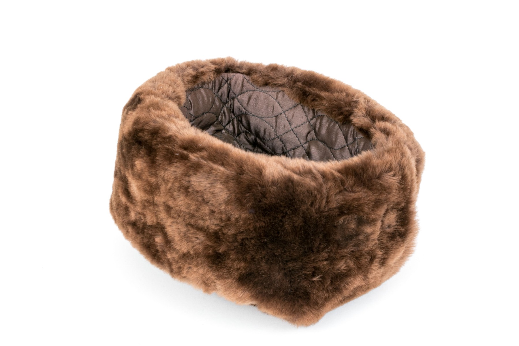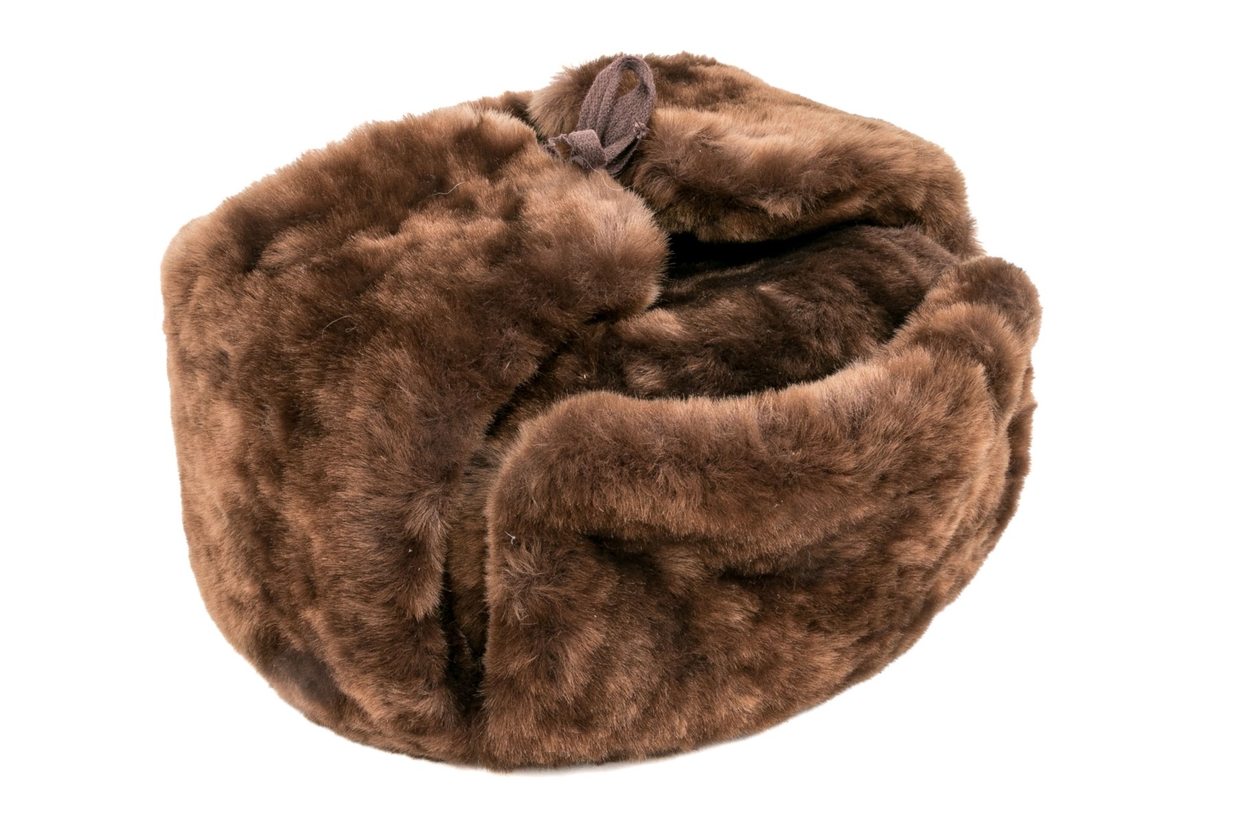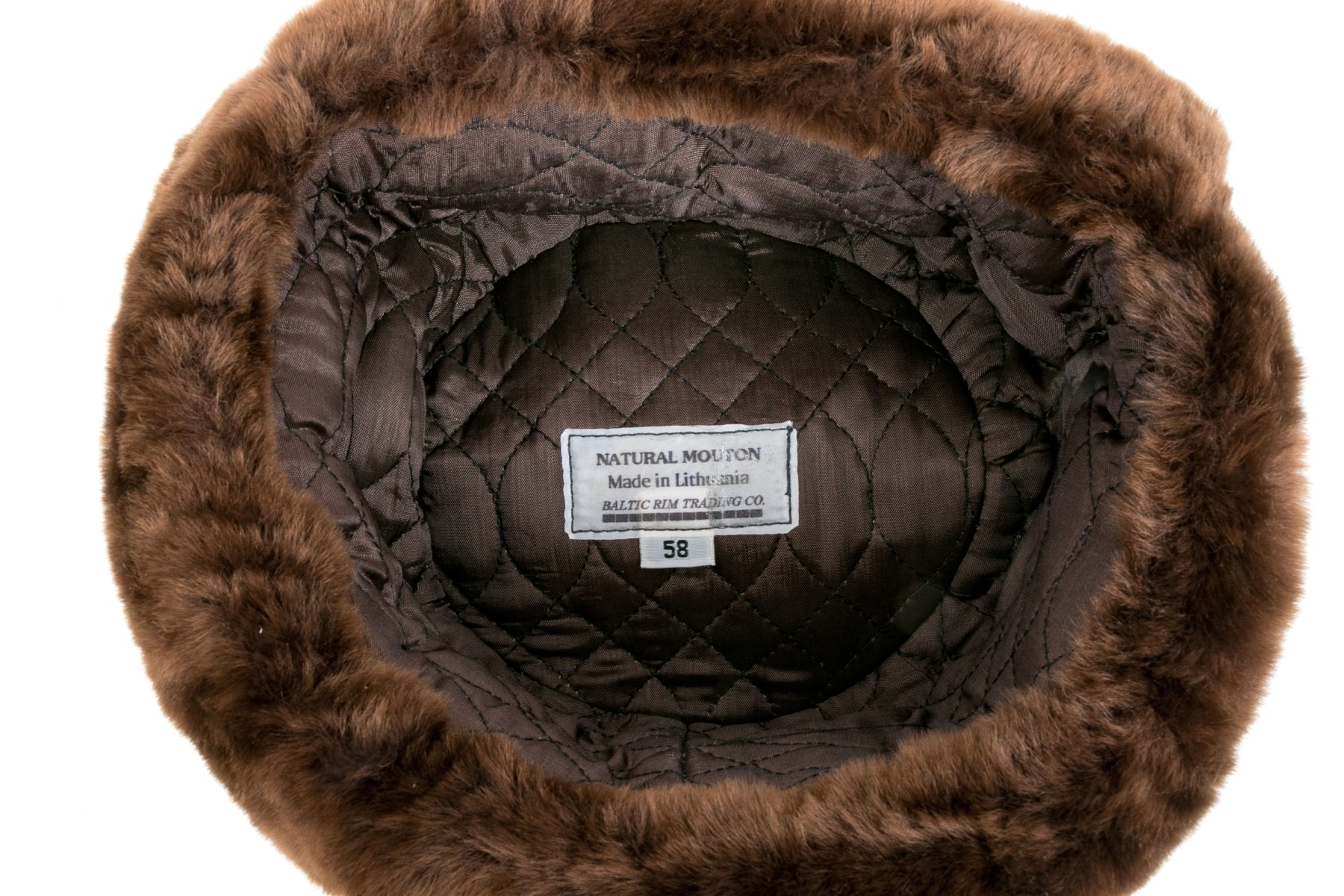 Baltic Rim Trading Company vintage brown mouton fur trappers hat, size 58
