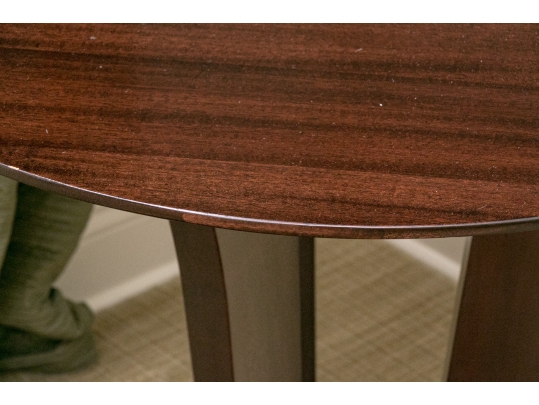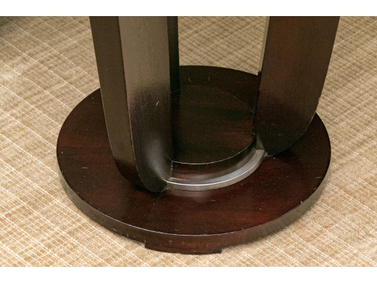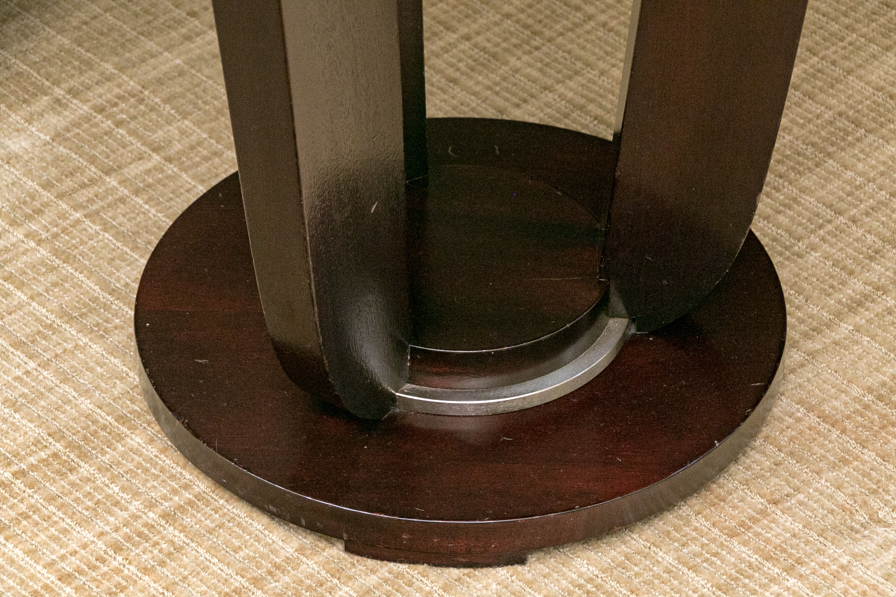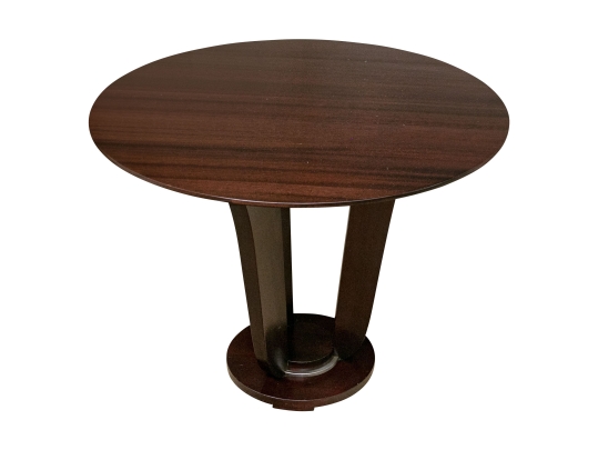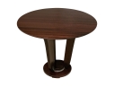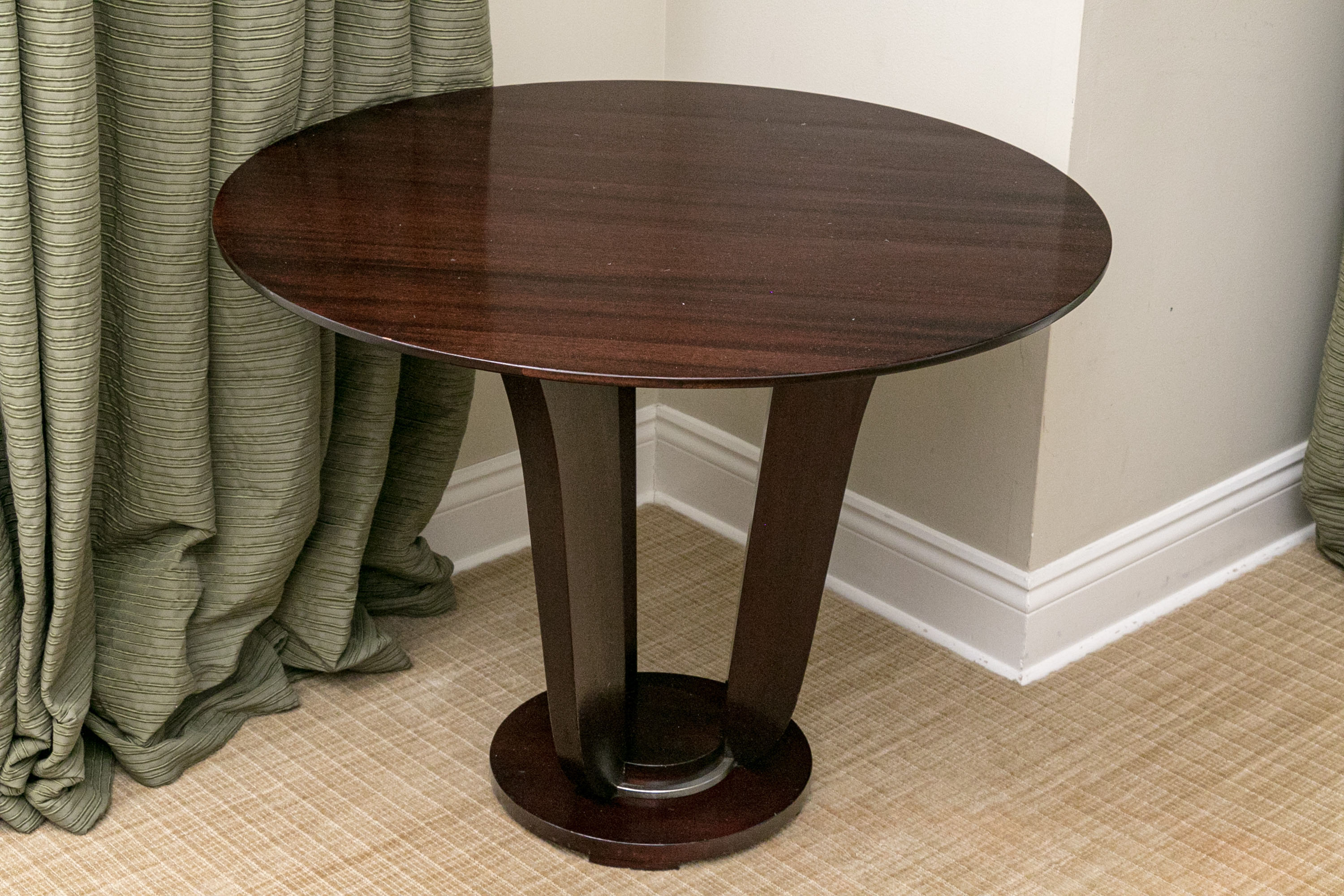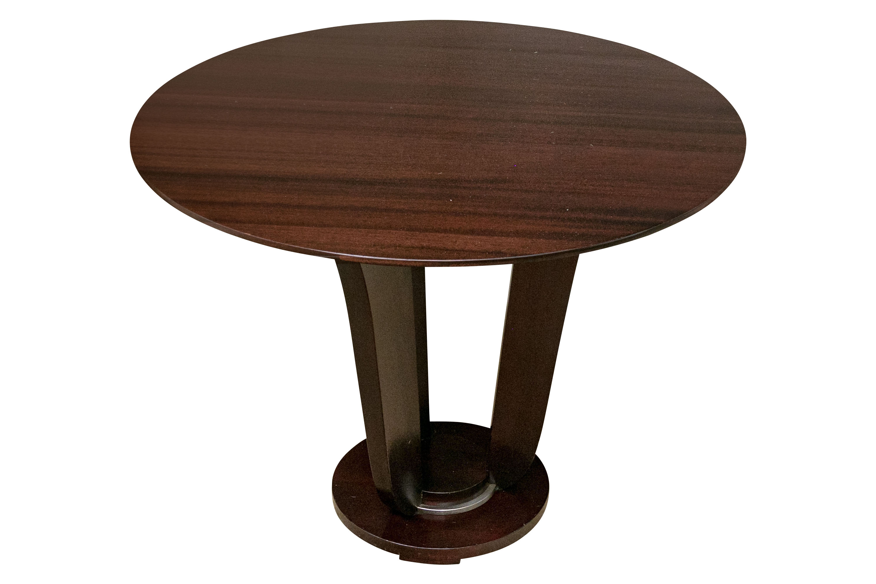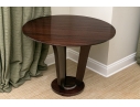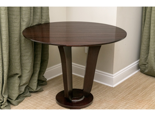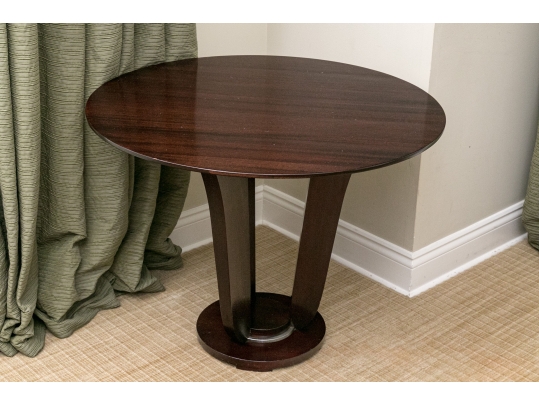 A later design by Barbara Barry for Baker Furniture. Dark Mahogany with handsome graining in a Tulip form reminiscent of the great Art Deco Era. Refined simplicity of form adds style to this piece which may be used as a Center, Occasional , End or Cocktail table.
