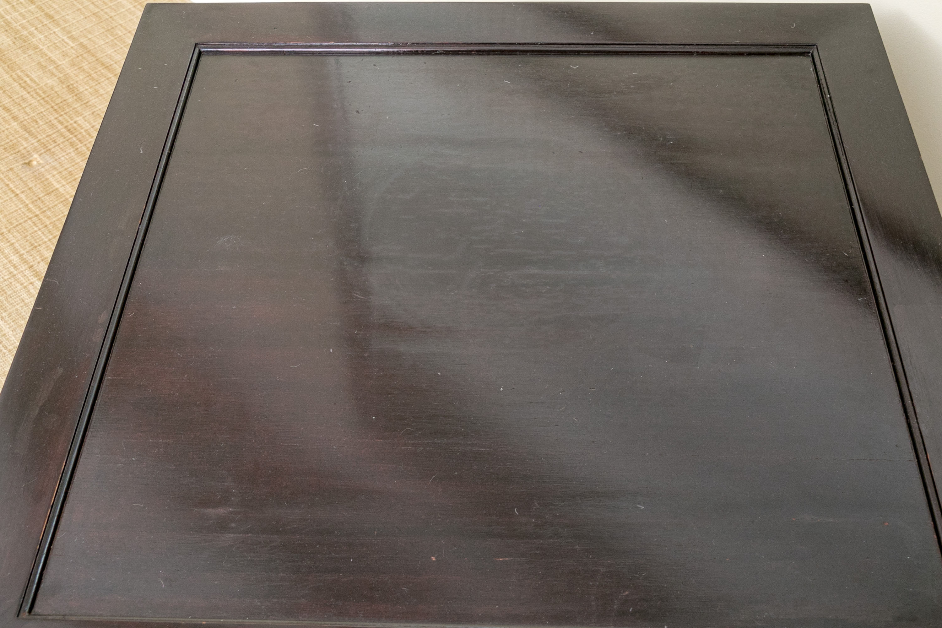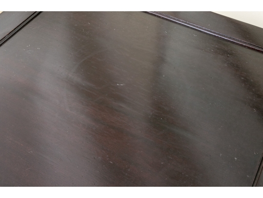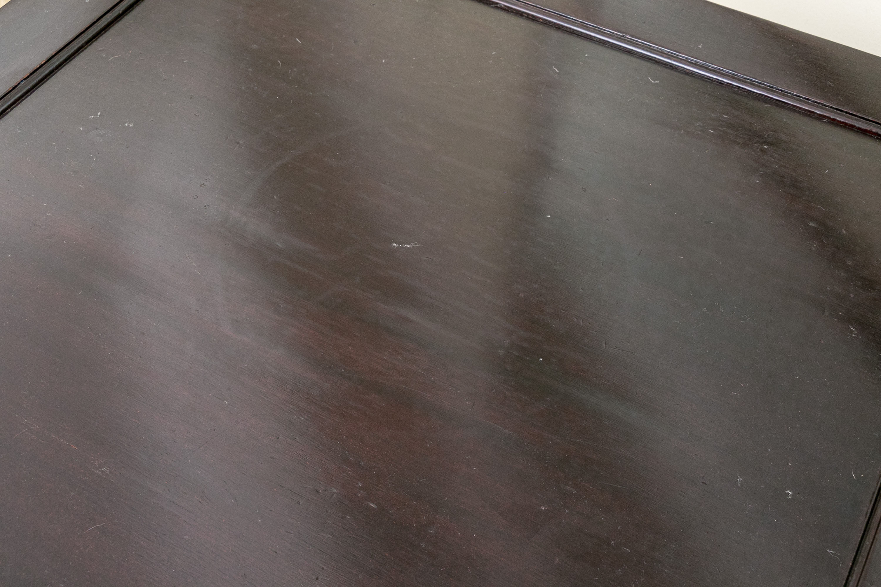 Condition: Overall good condition with signs of age to the top including some scratches, rubs and rings with a section of polish loss to one flat edge which does not detract from the elegant presentation.