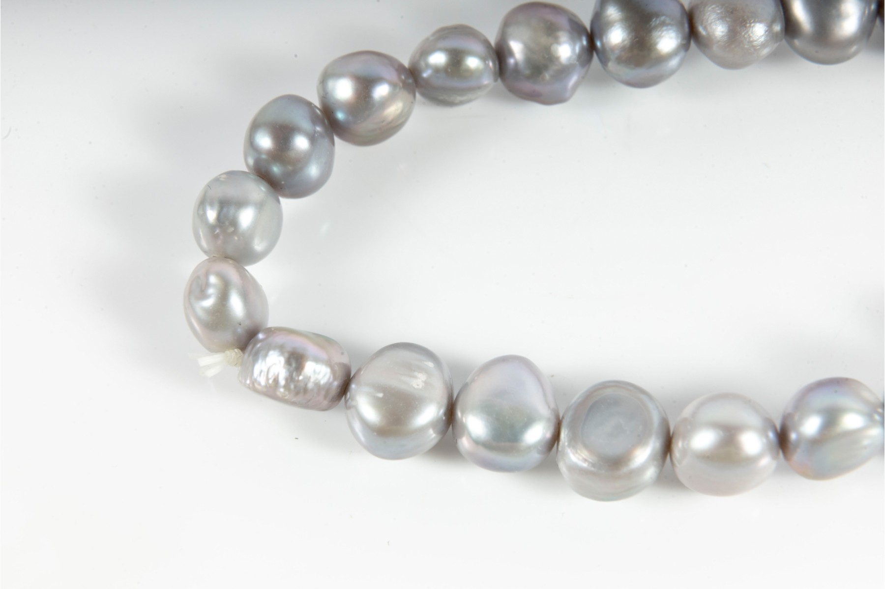 This exquisite Baroque pearl necklace paired with two matching bracelets showcase the unique beauty of irregularly shaped pearls. Each Baroque pearl, with its organic, non-symmetrical form, displays a captivating iridescence.