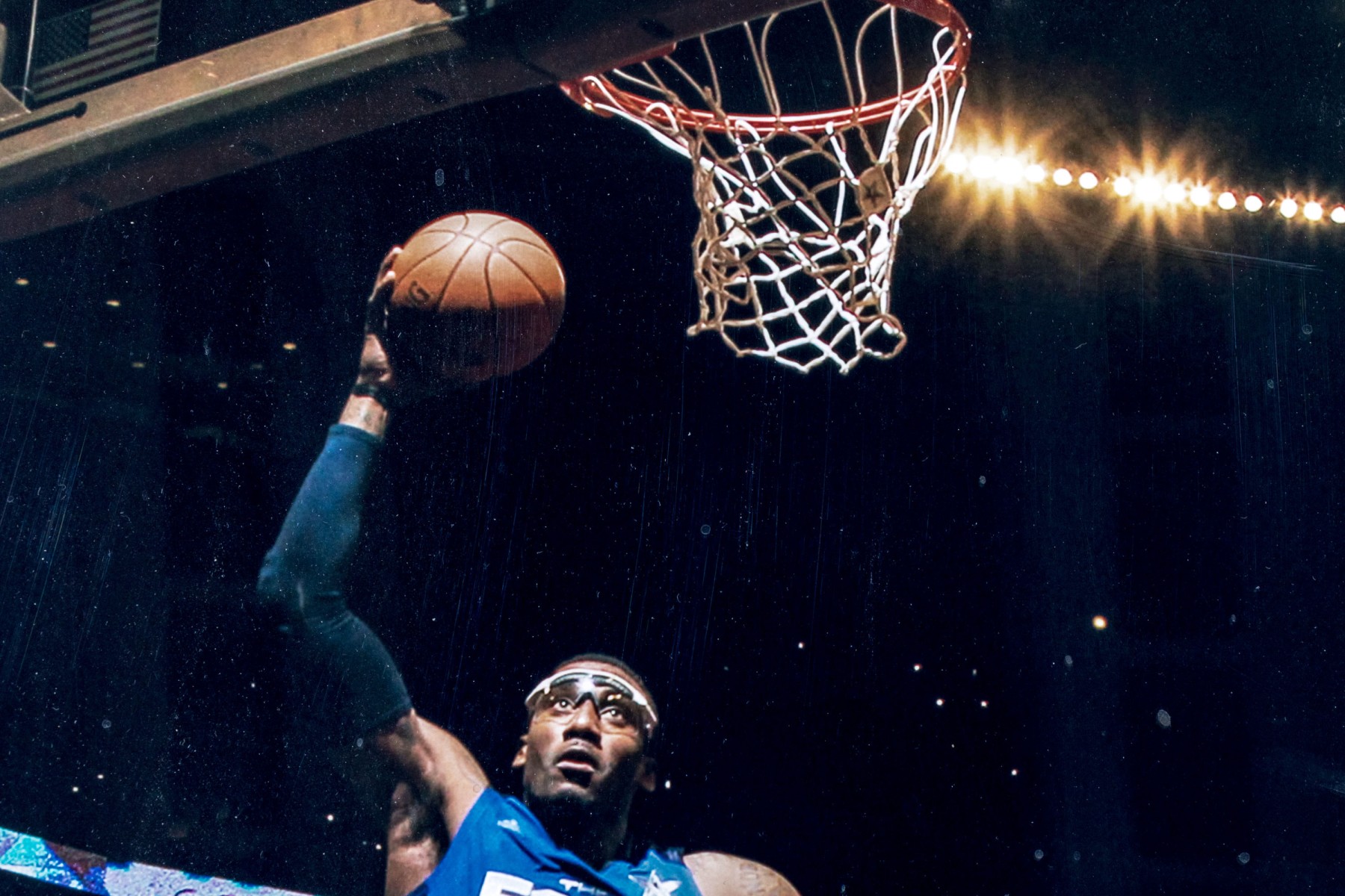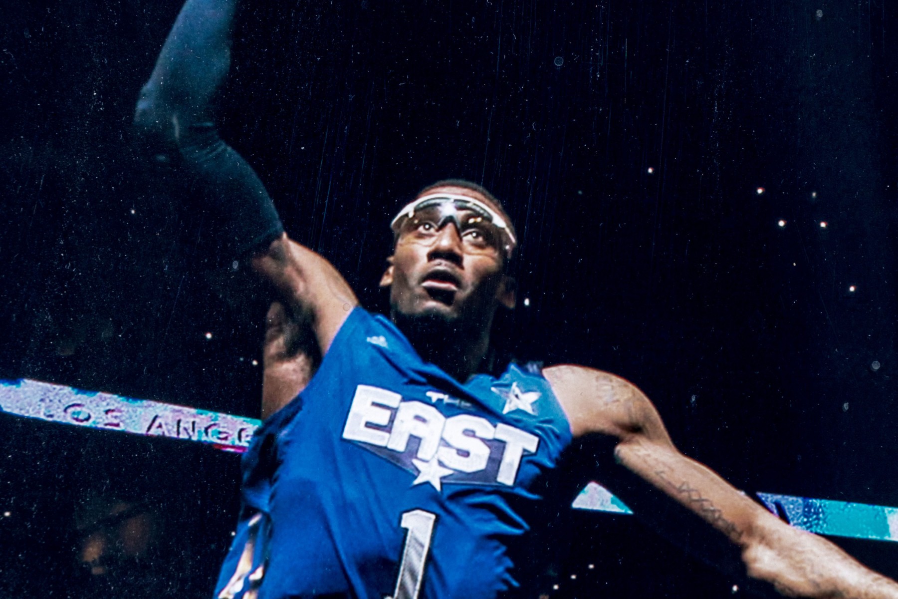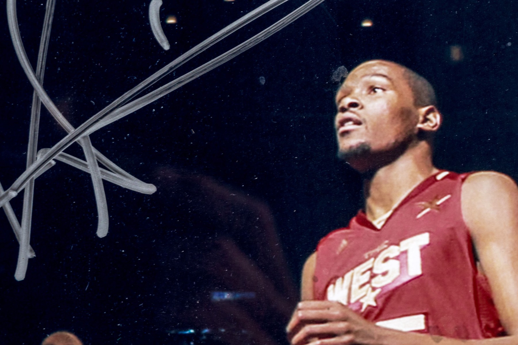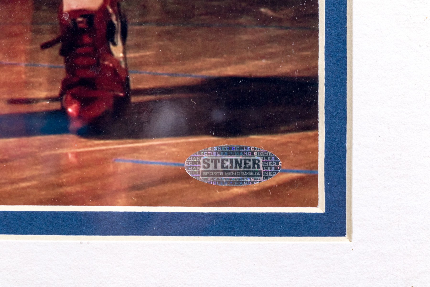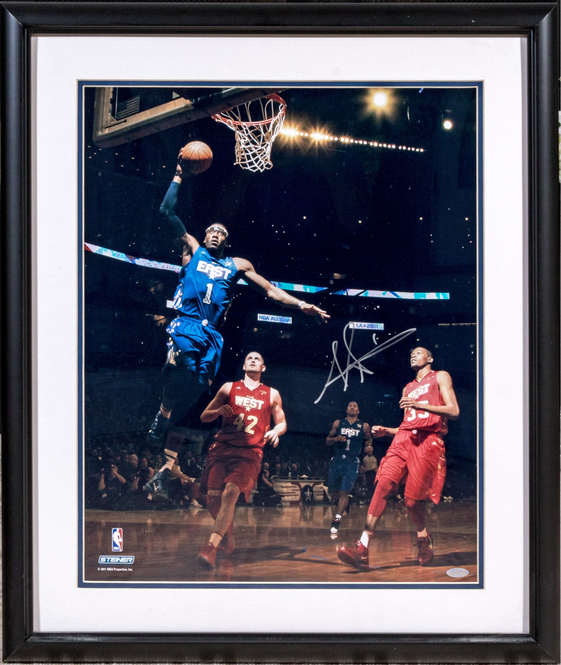 The East's #1 center, Amar'e Stoudemire in motion, framed autographed photograph, from Steiner Sports Memorabilia, presented double matted within black art frame.