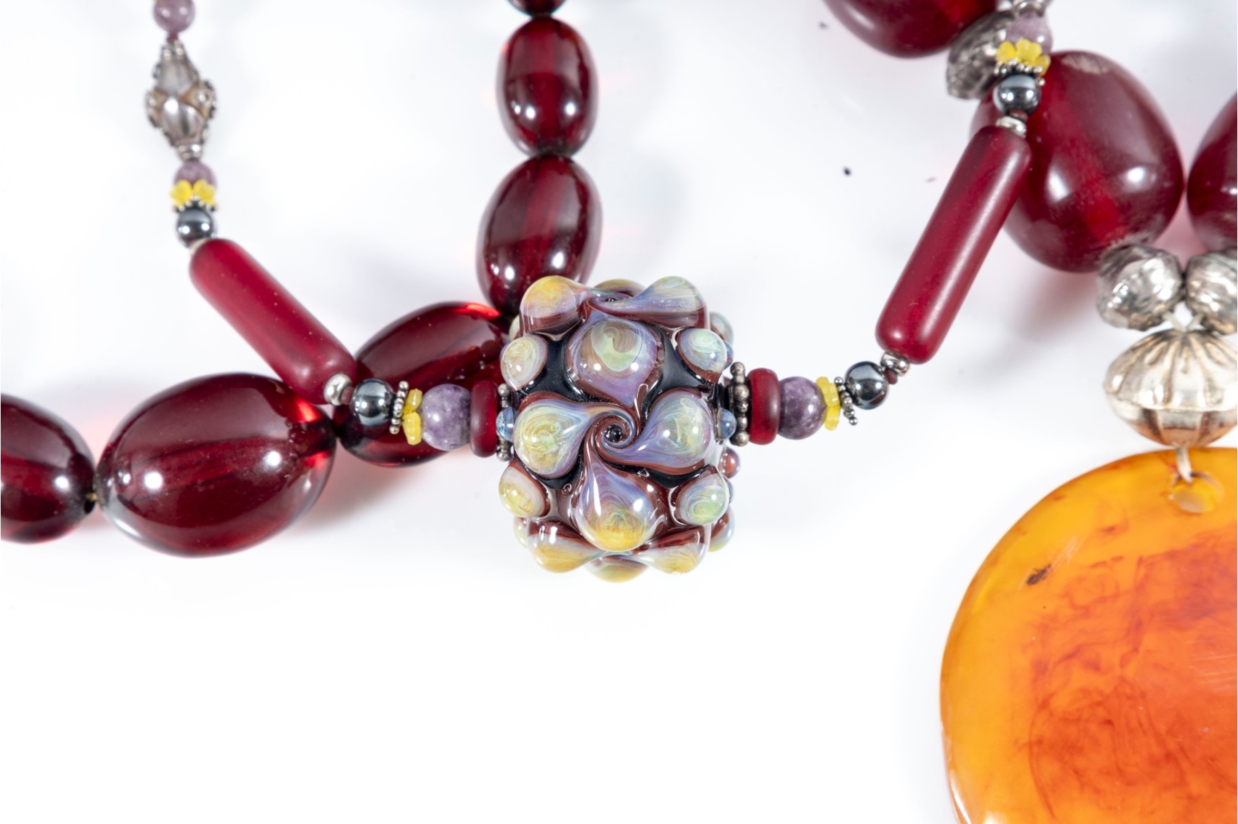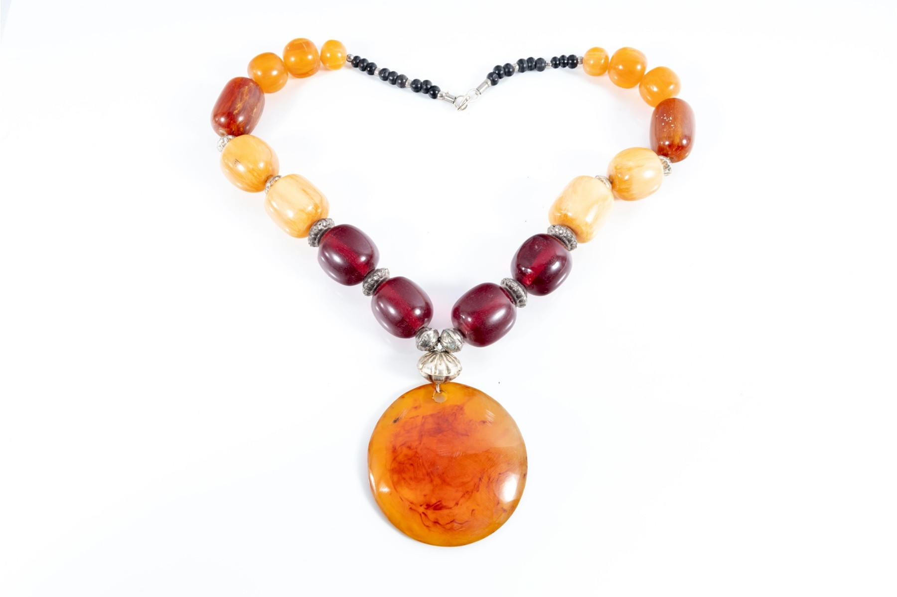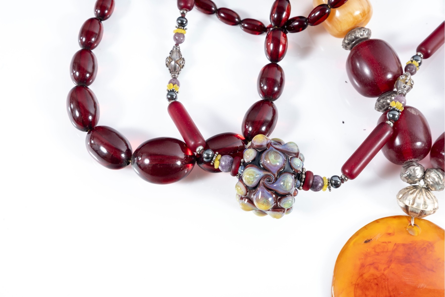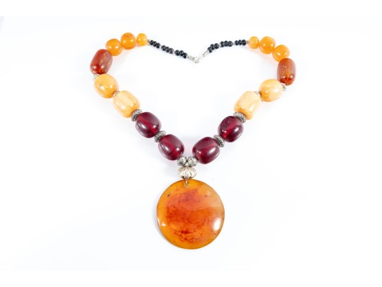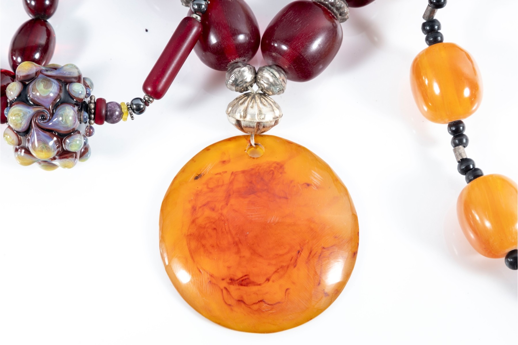 This lot contains a set of four largest string necklaces composed of resin beads. Contents as shown and sold as is, see photos for details.
