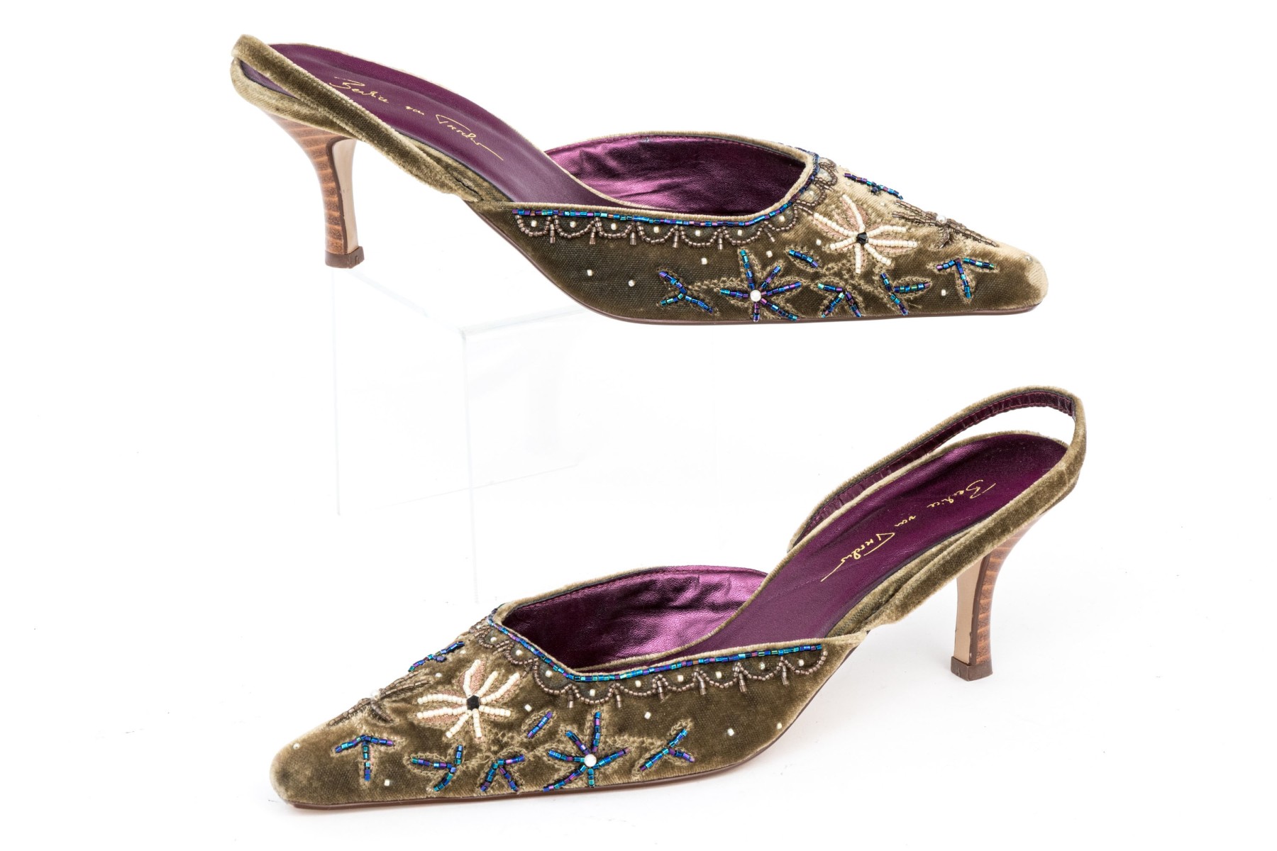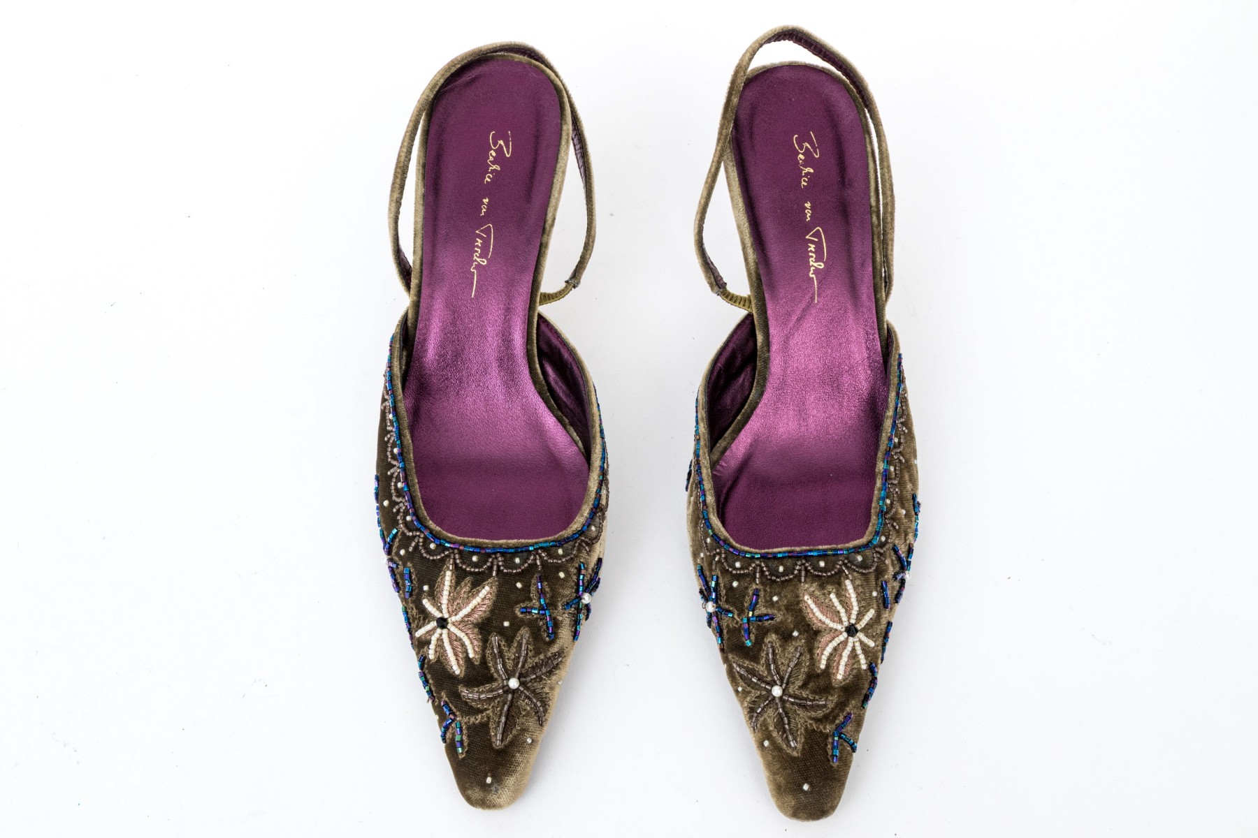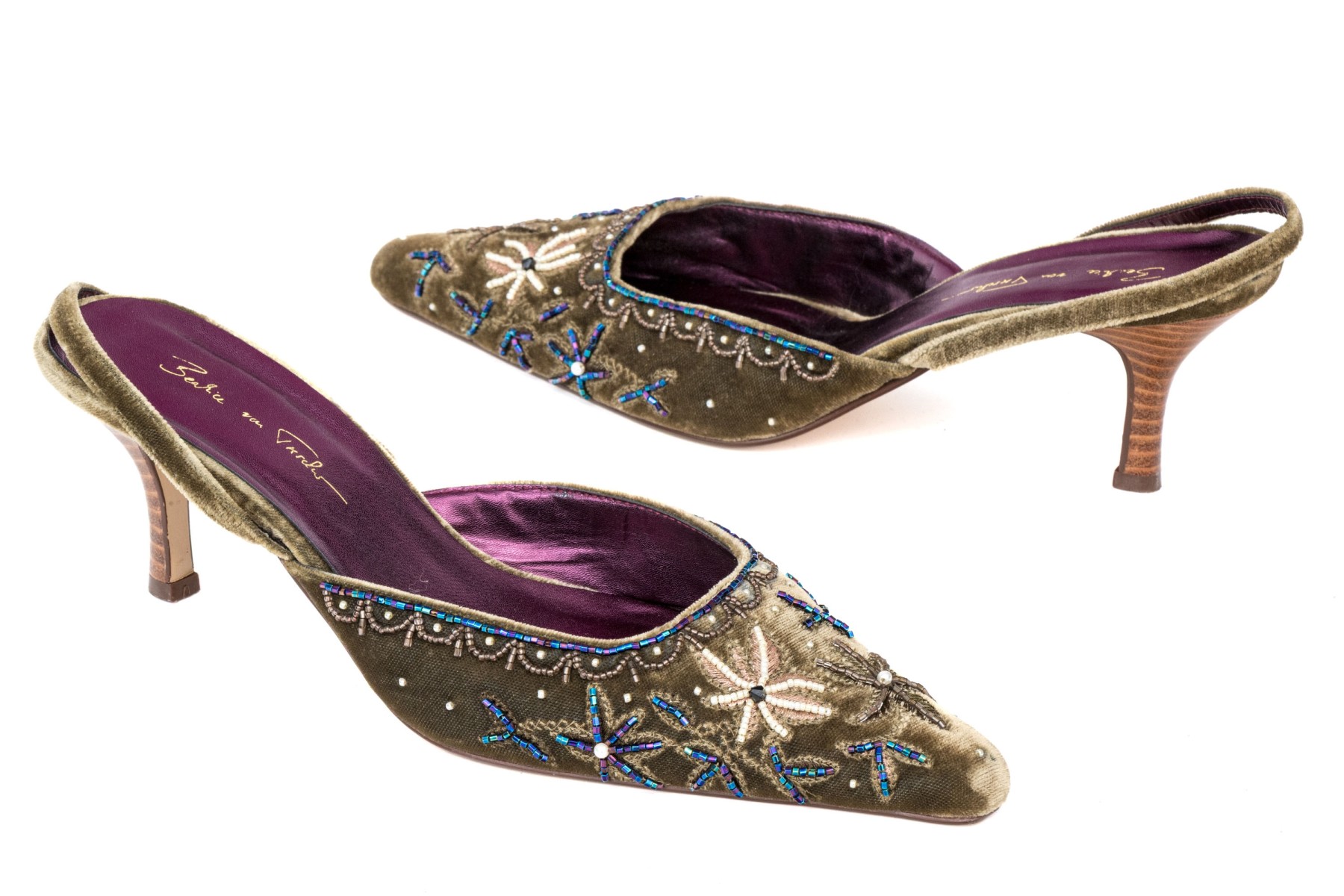 Beatrice Von Tresckow Designs stunning beaded velvet slingbacks, size 42