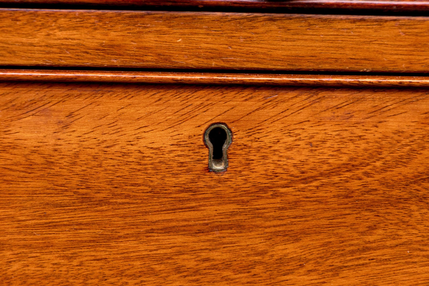 Minor nics to the finish around the top drawer pulls and gentle wear overall. Presents handsomely. Good overall.