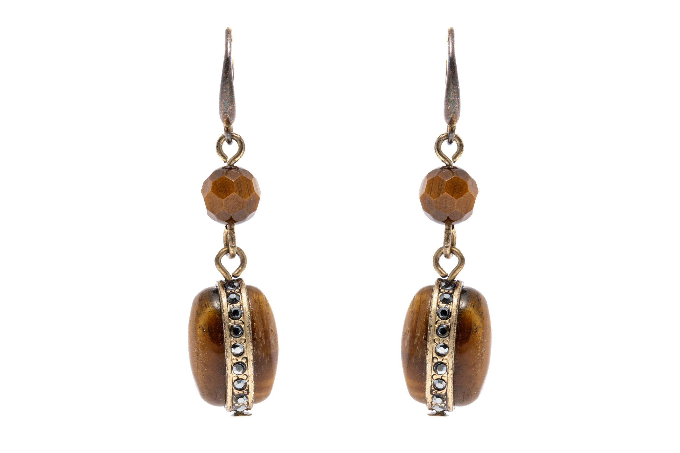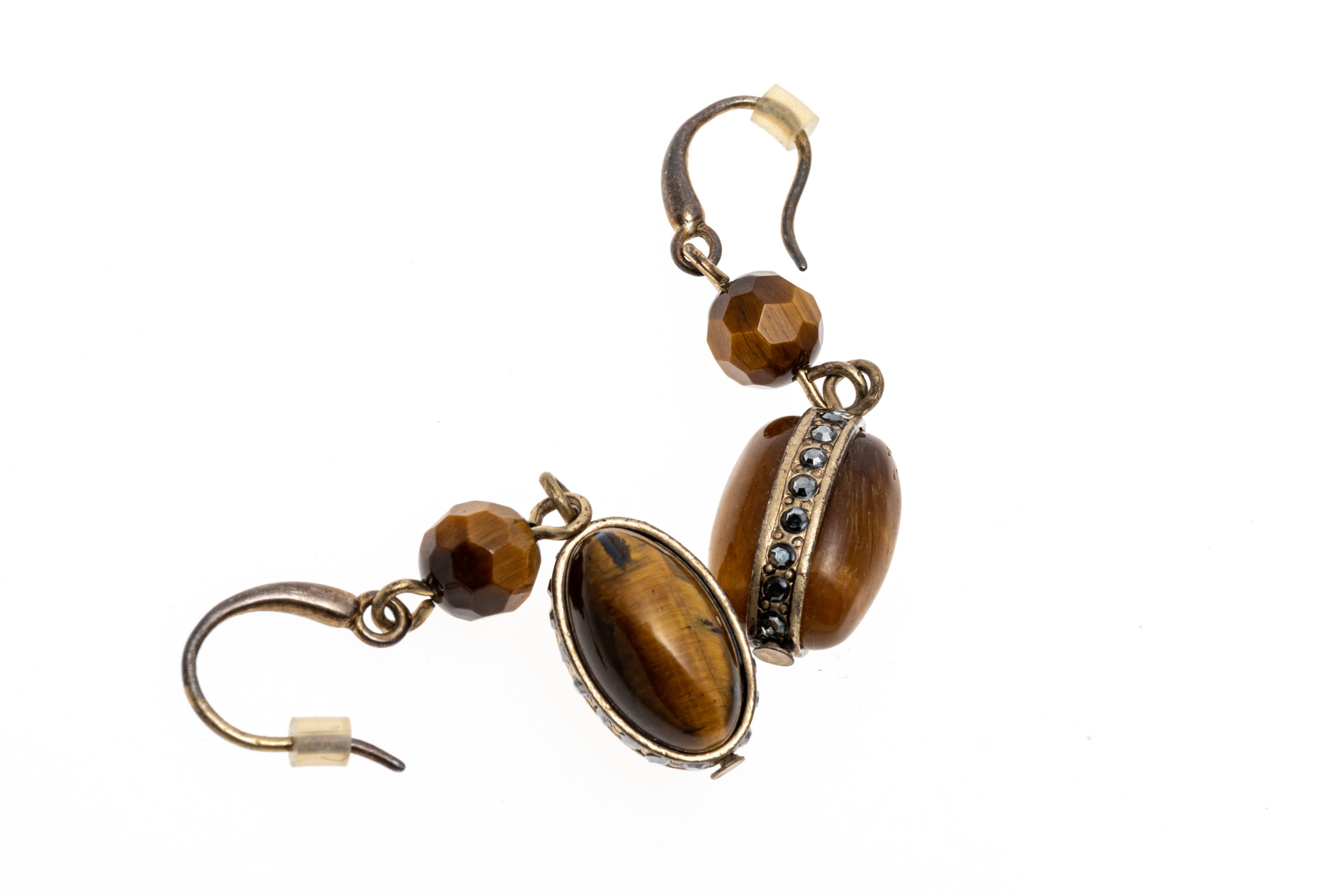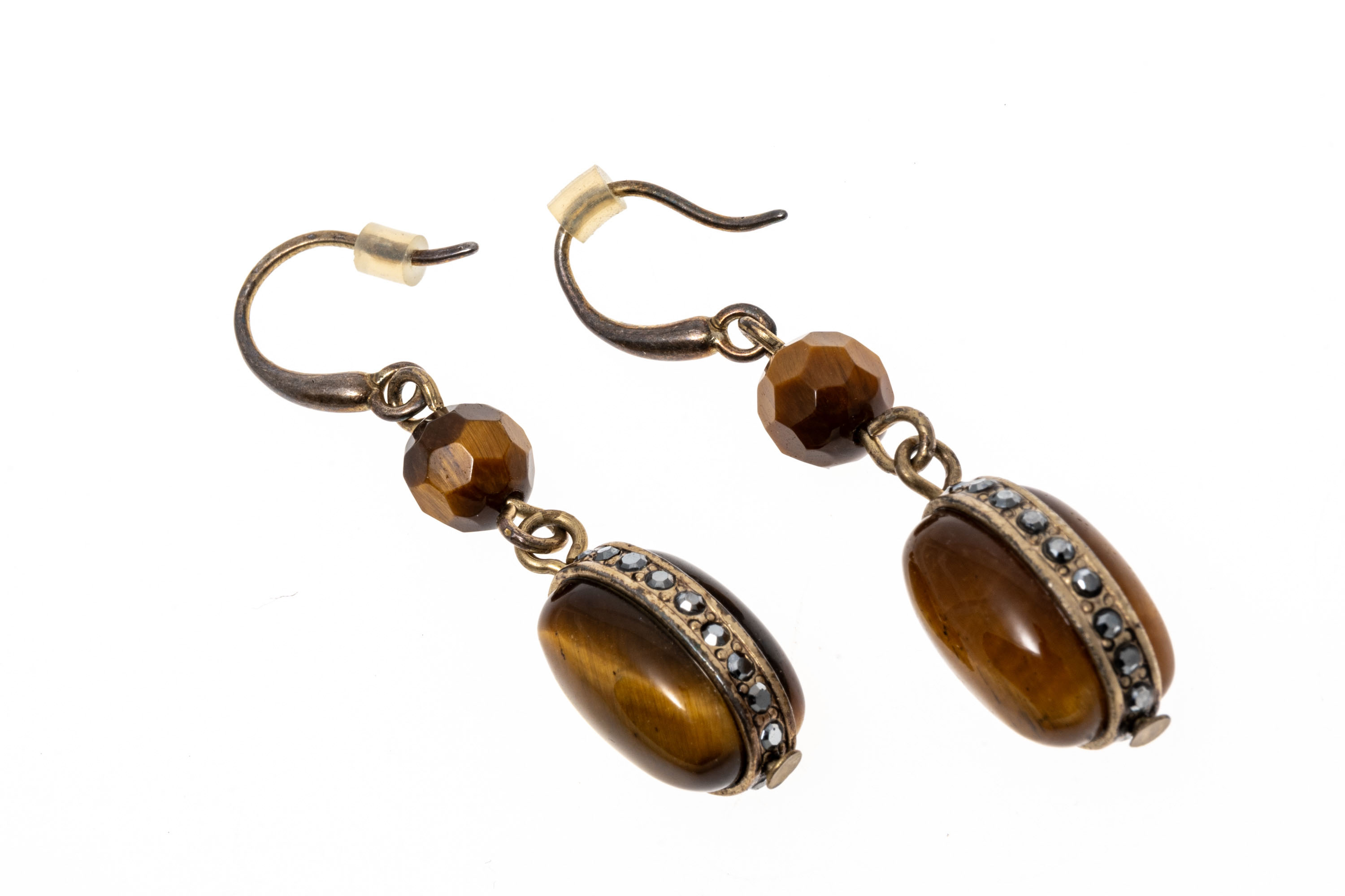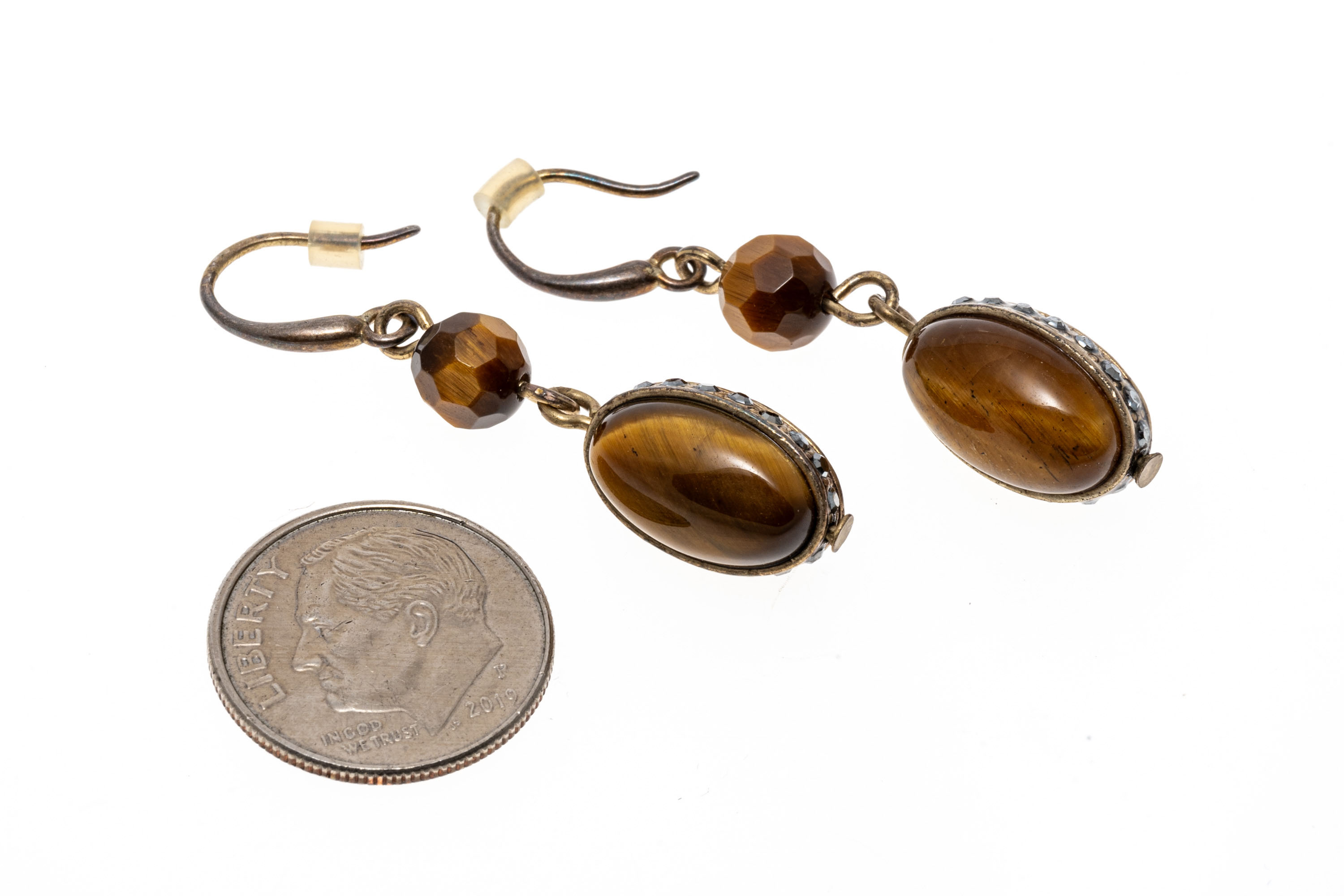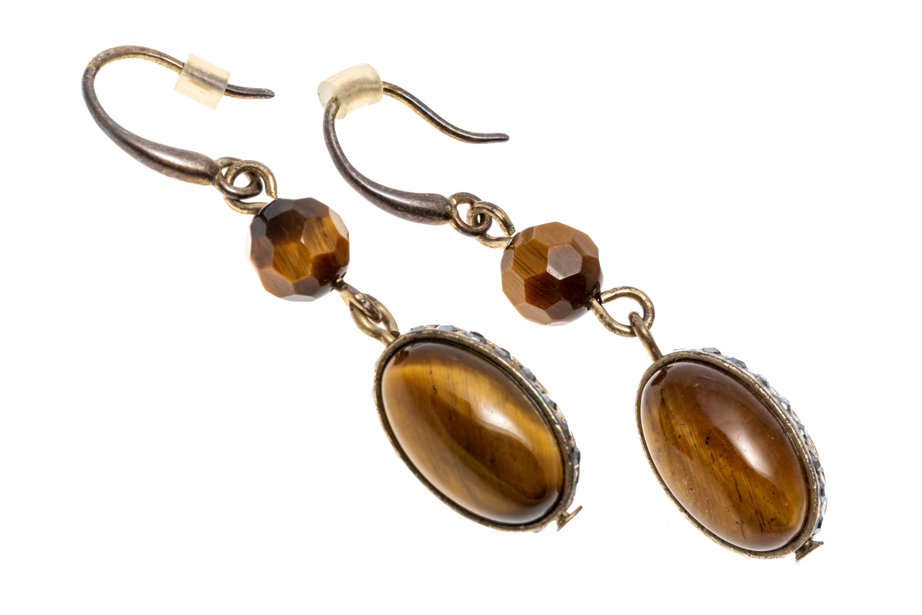 Beautiful faceted and cabachon tigers eye and marcasite drop pendant earrings
