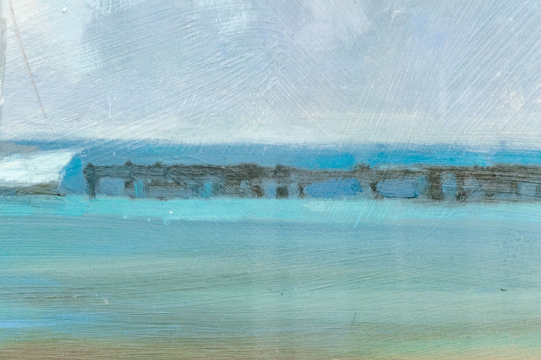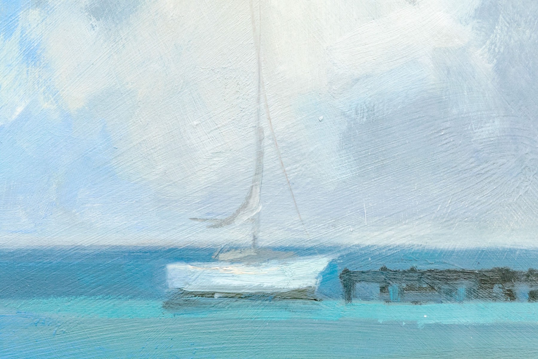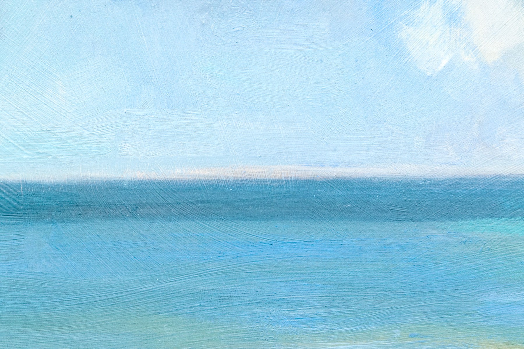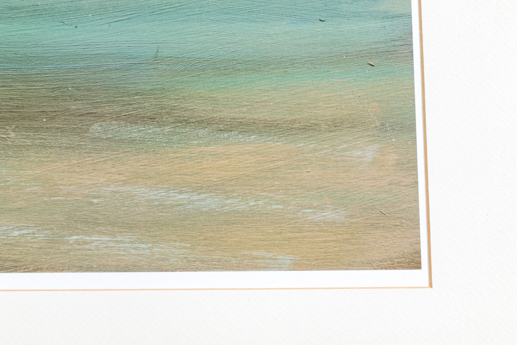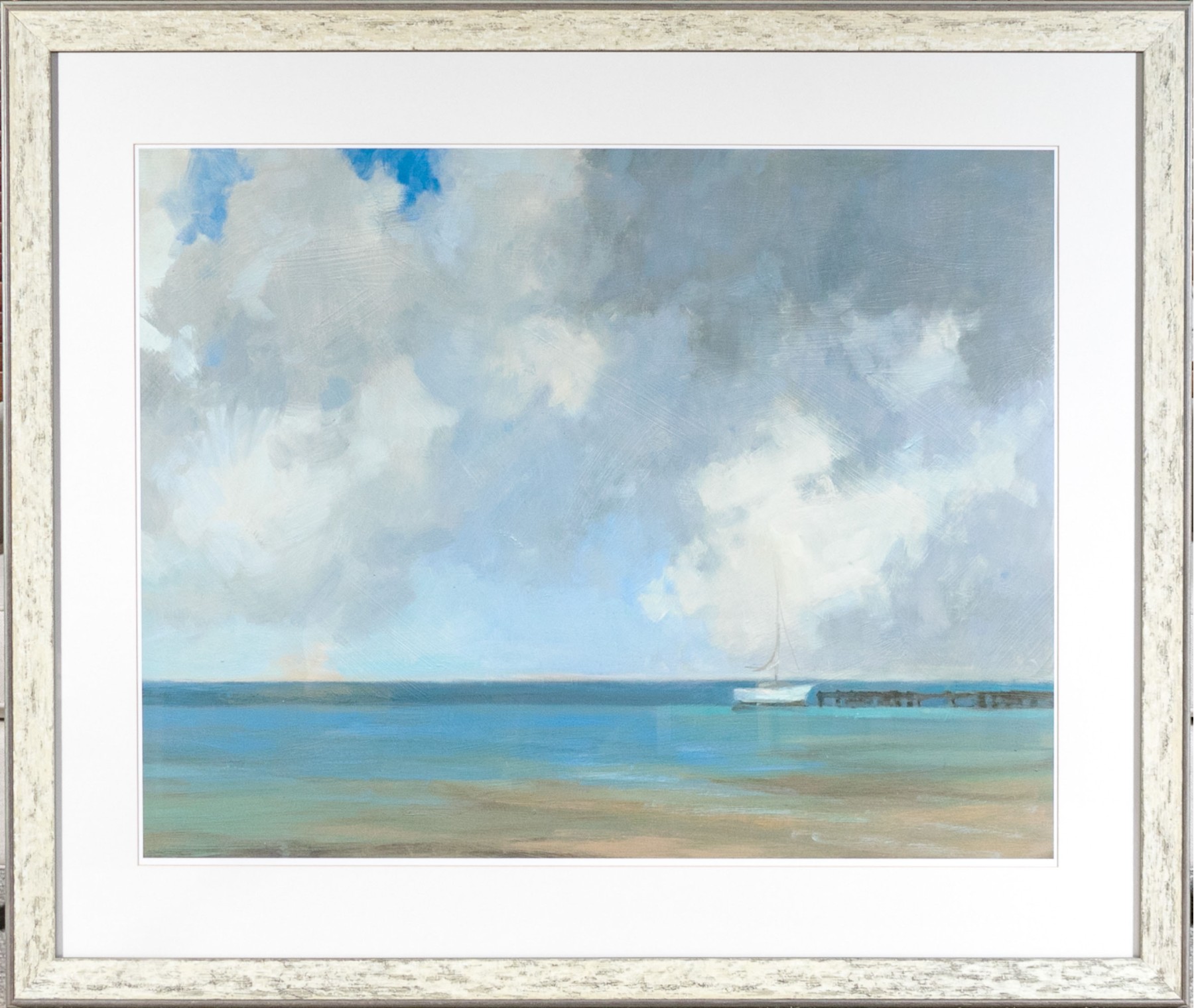 An absolutely gorgeous and wonderfully crafted coastal scene that draws the viewer into the image. With puffy white clouds and slightly more ominous clouds making the viewer unsure of what will happen next. Nicely presented, matted, framed and glazed. Unsigned.