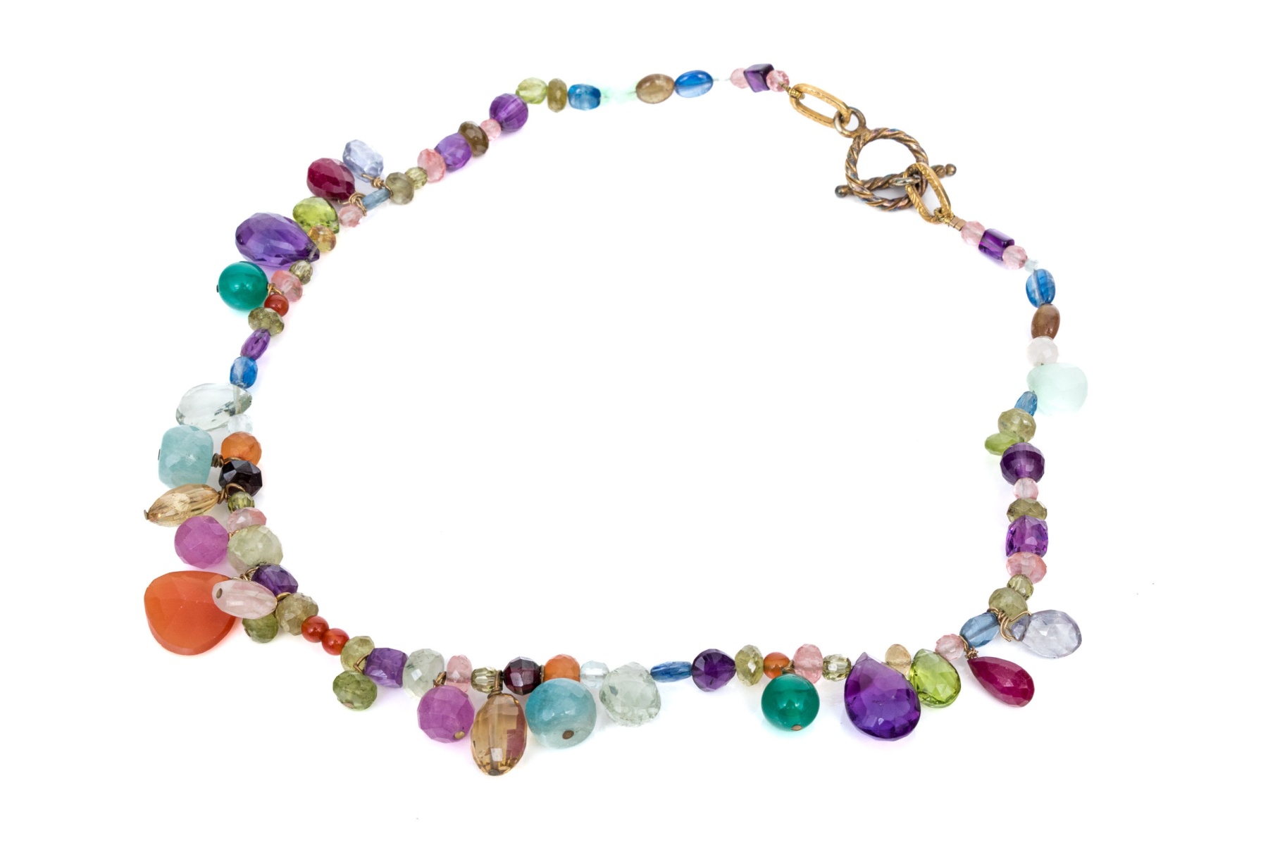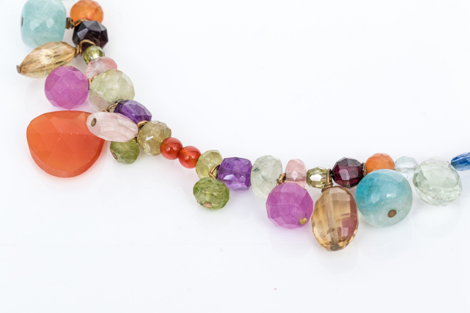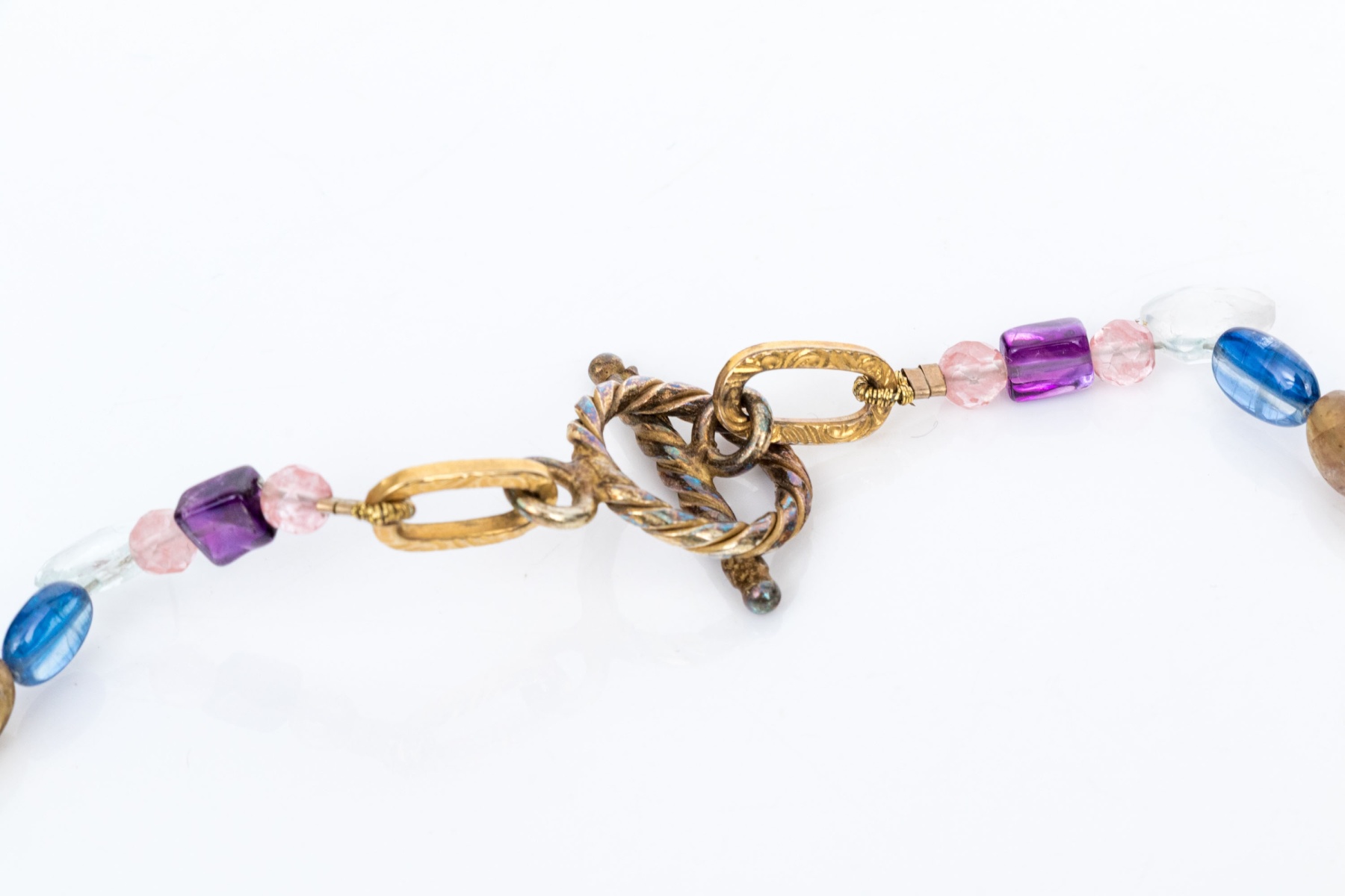 Beautiful strand of assorted faceted and polished multi color gemstones necklace, finished with a toggle style clasp