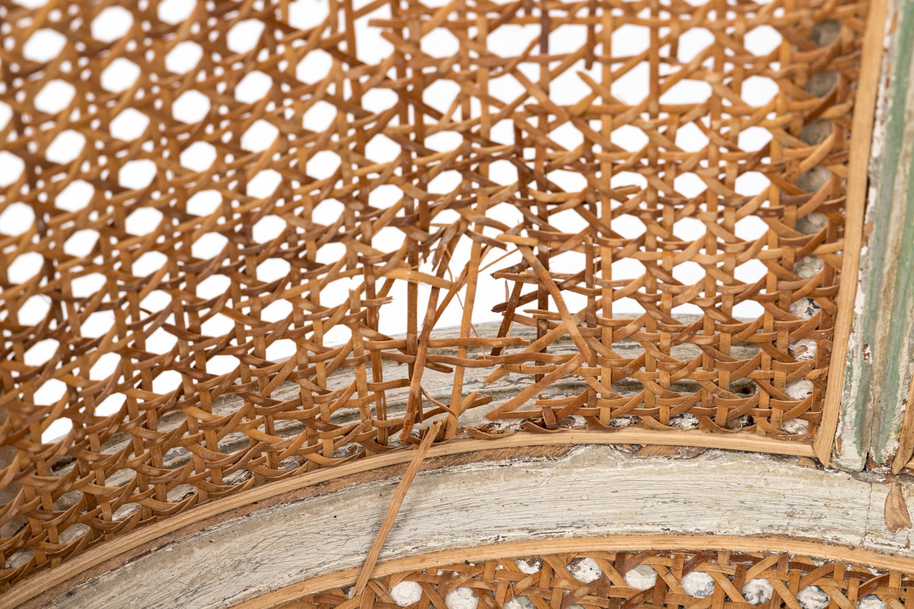 Condition: Displays well with wear commensurate with age and use. Broken caning, finish wear, discoloration, paint flaking. Please review the pictures as they are a part of the condition report.