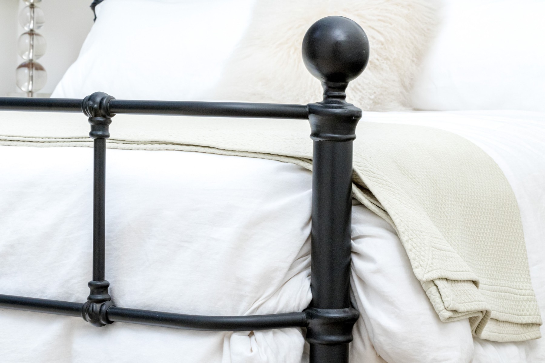 A fantastic Benicia "Pasadena" king size bed in dark patinated iron.