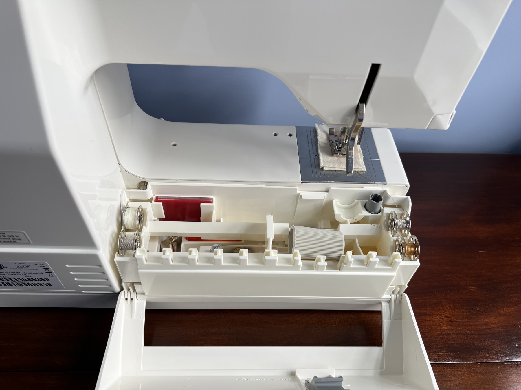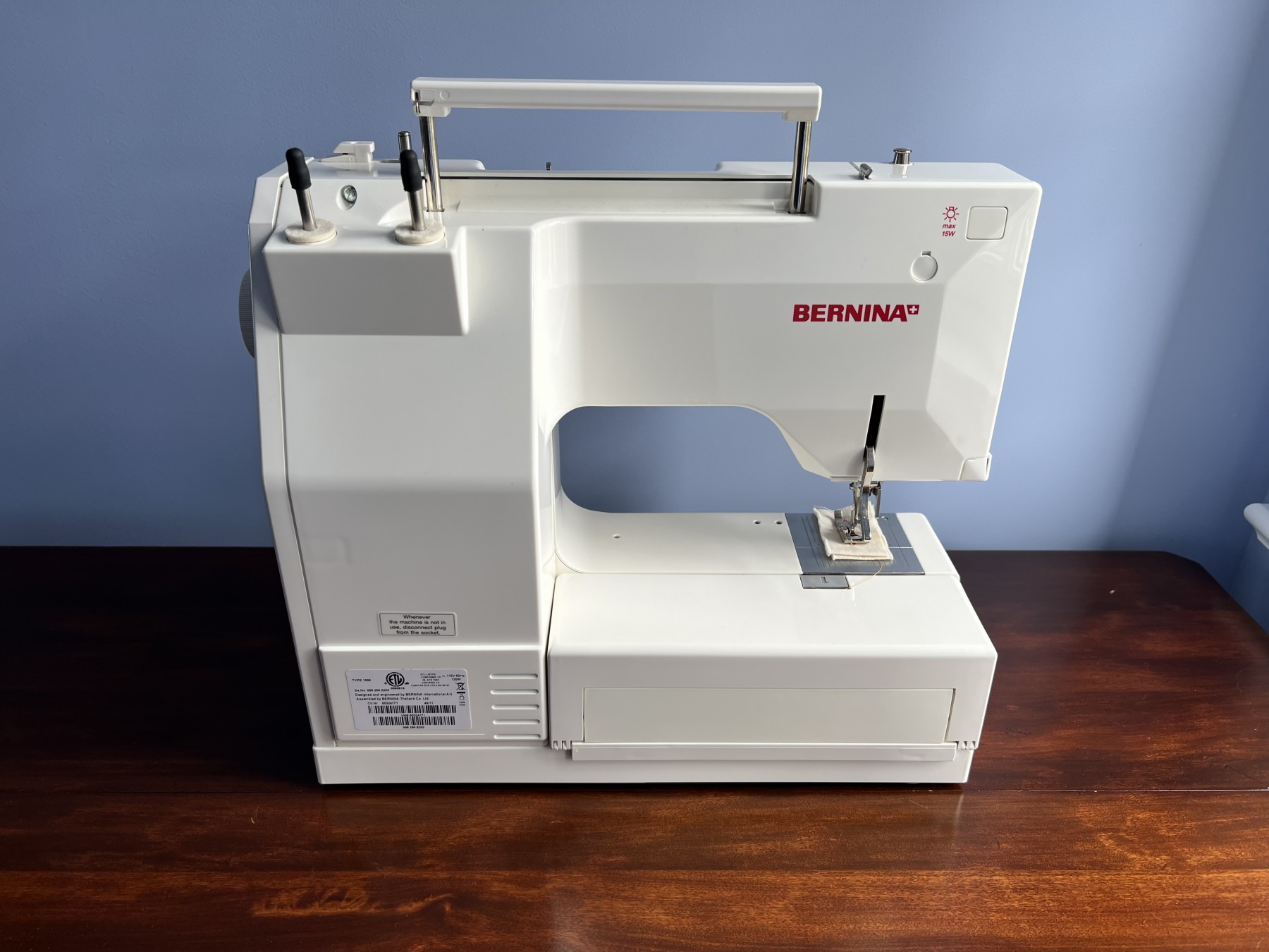 Berinna 1008 Electronic sewing machine and attachments with dust cover and foot control unit. Comes with box.