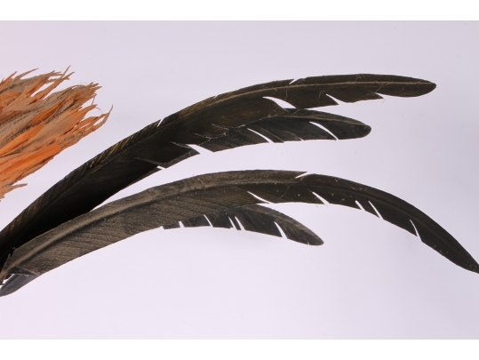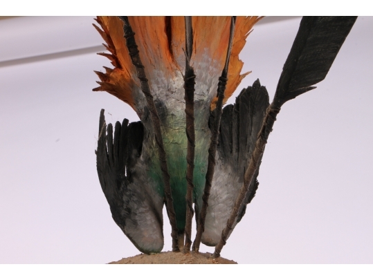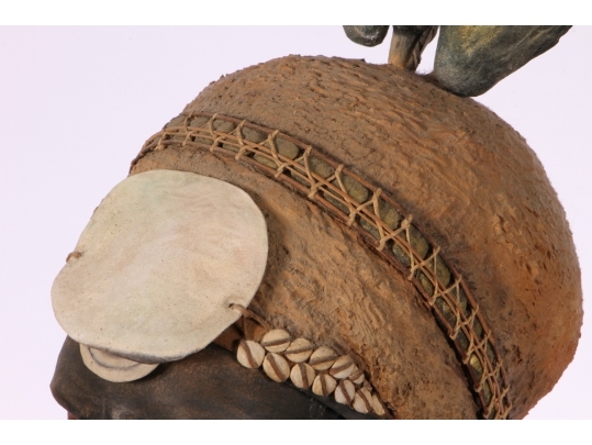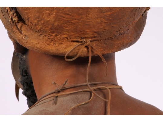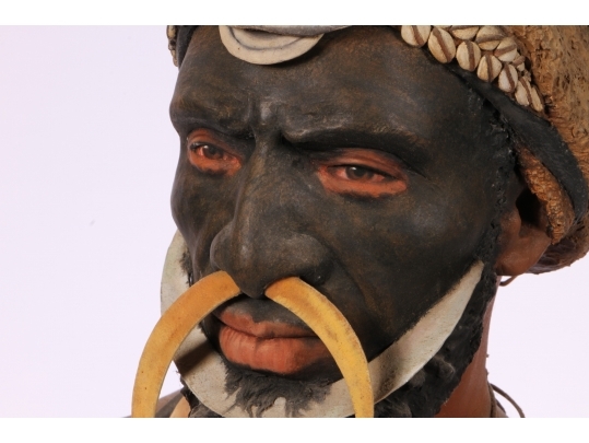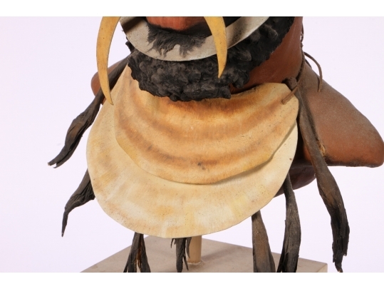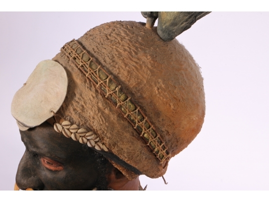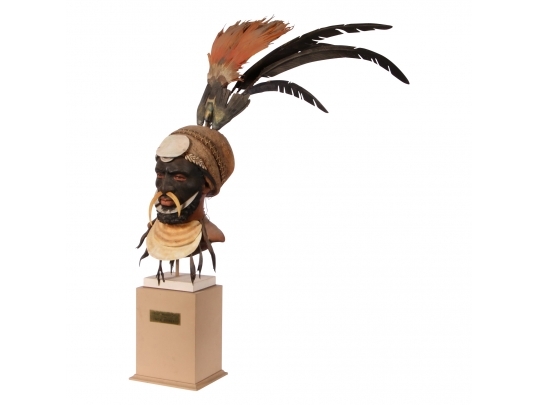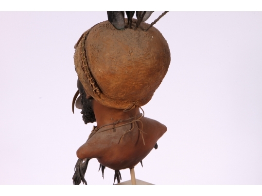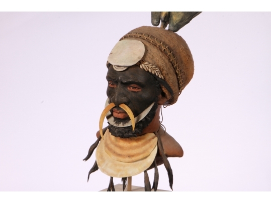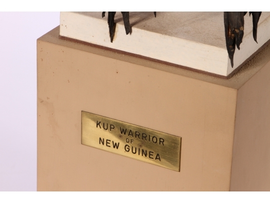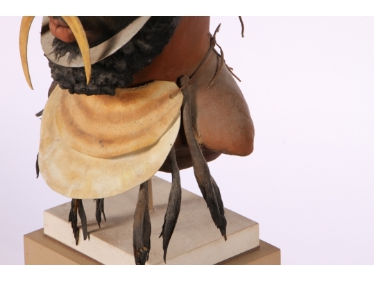 Paper Mache on wooden stand depicting a Kup warrior from New Guinea.
