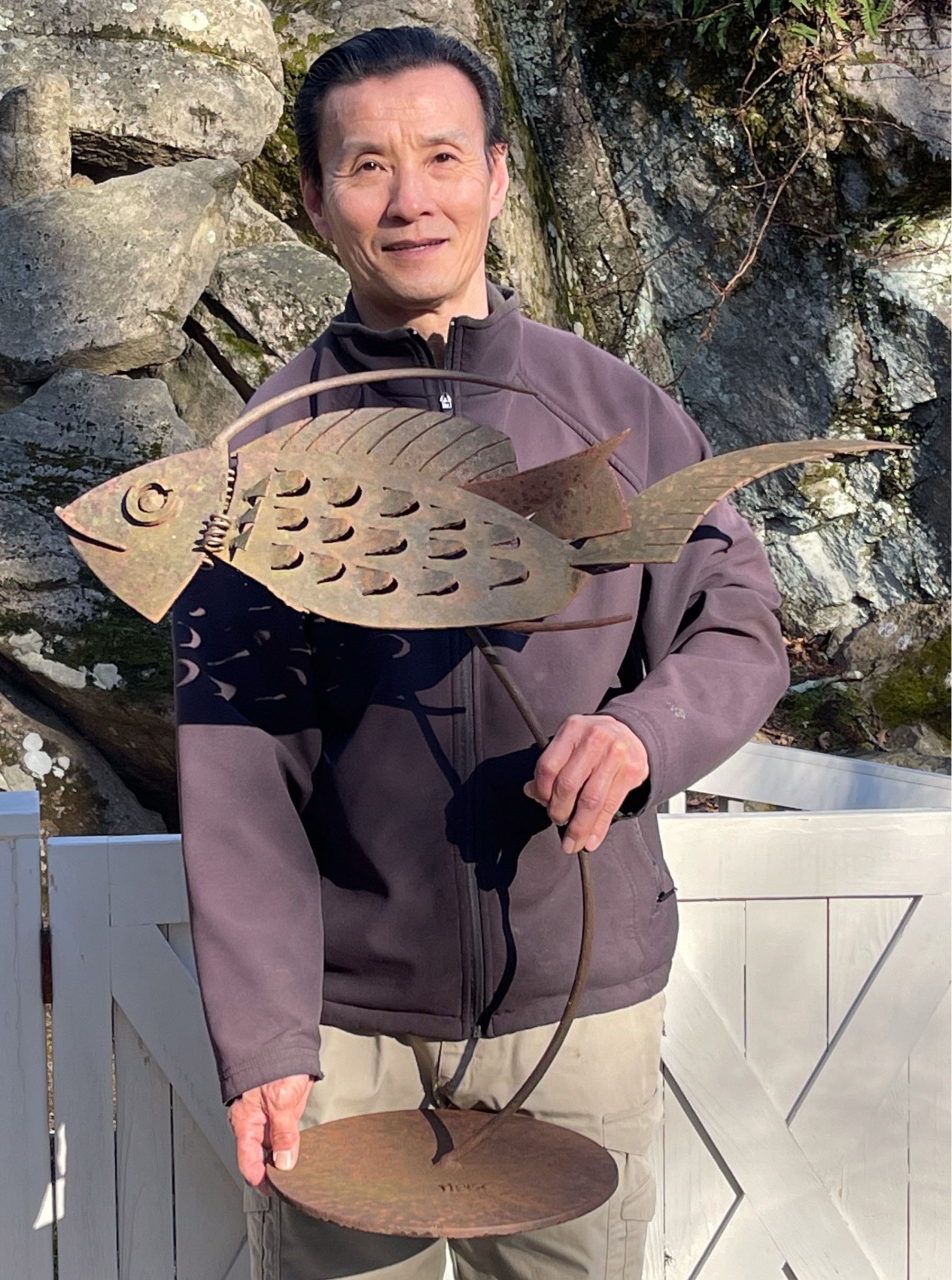 This signed Bill Heise sculpture is perfect for the nautical enthusiast and the nature lover! A fun outdoor piece!