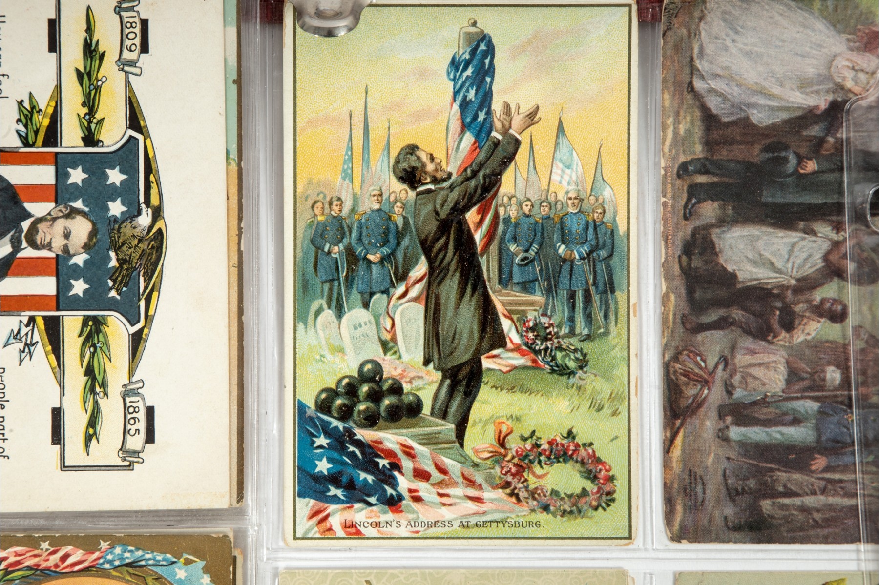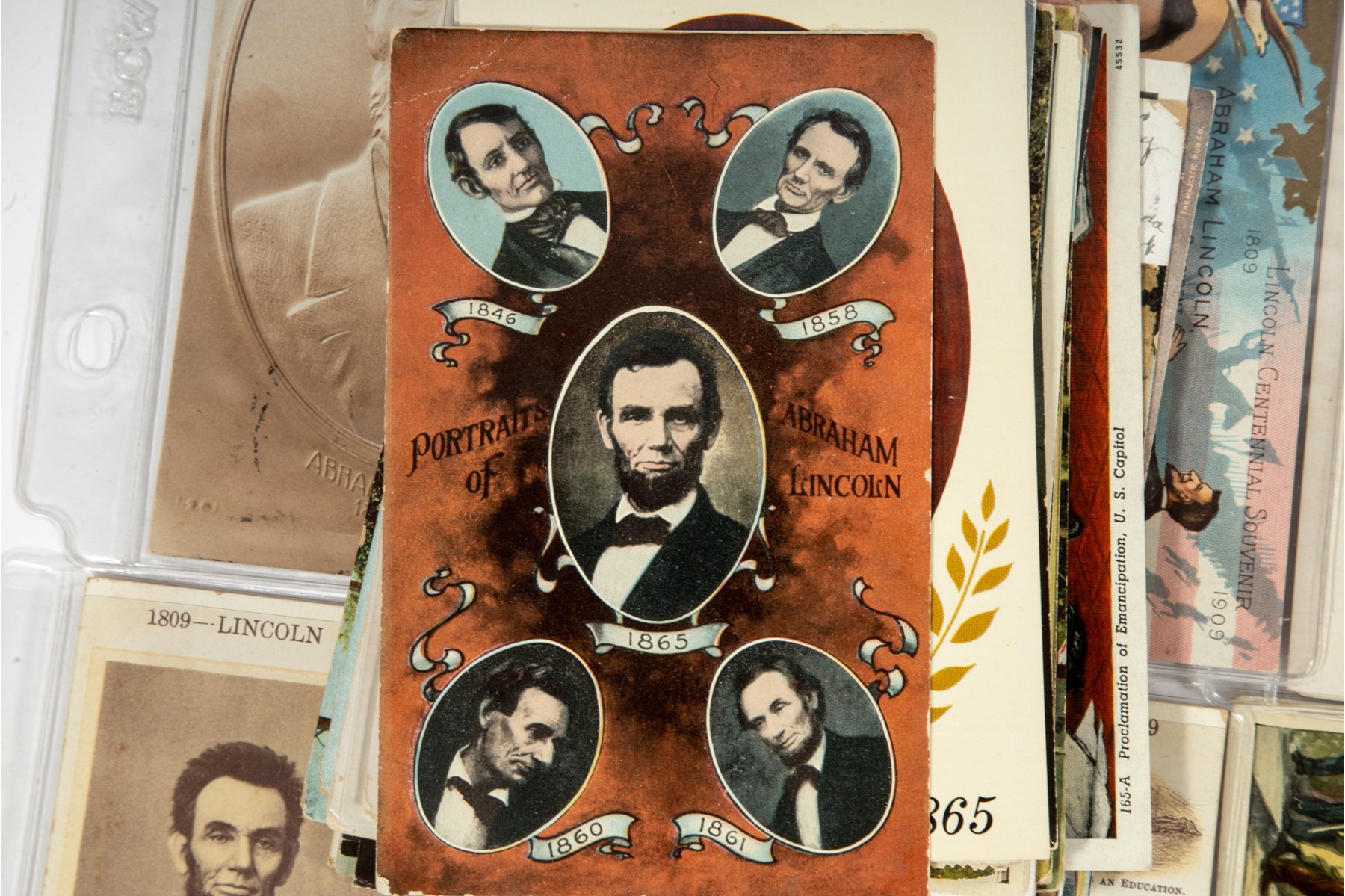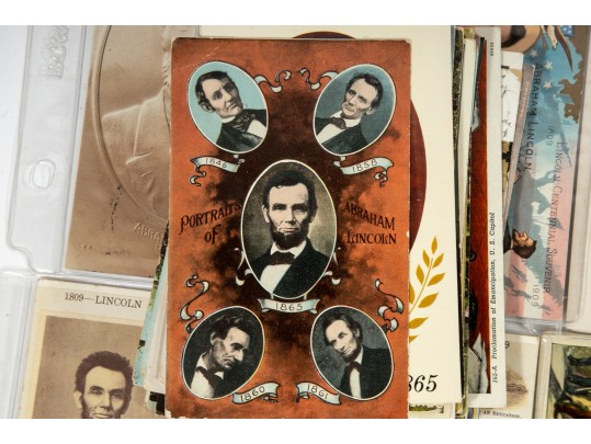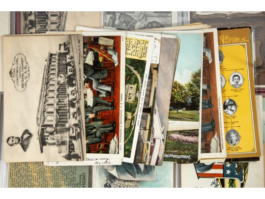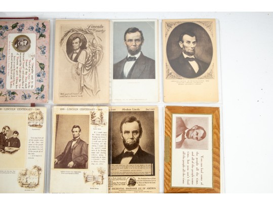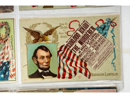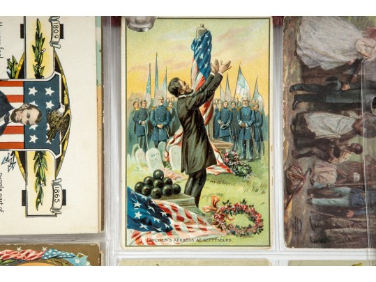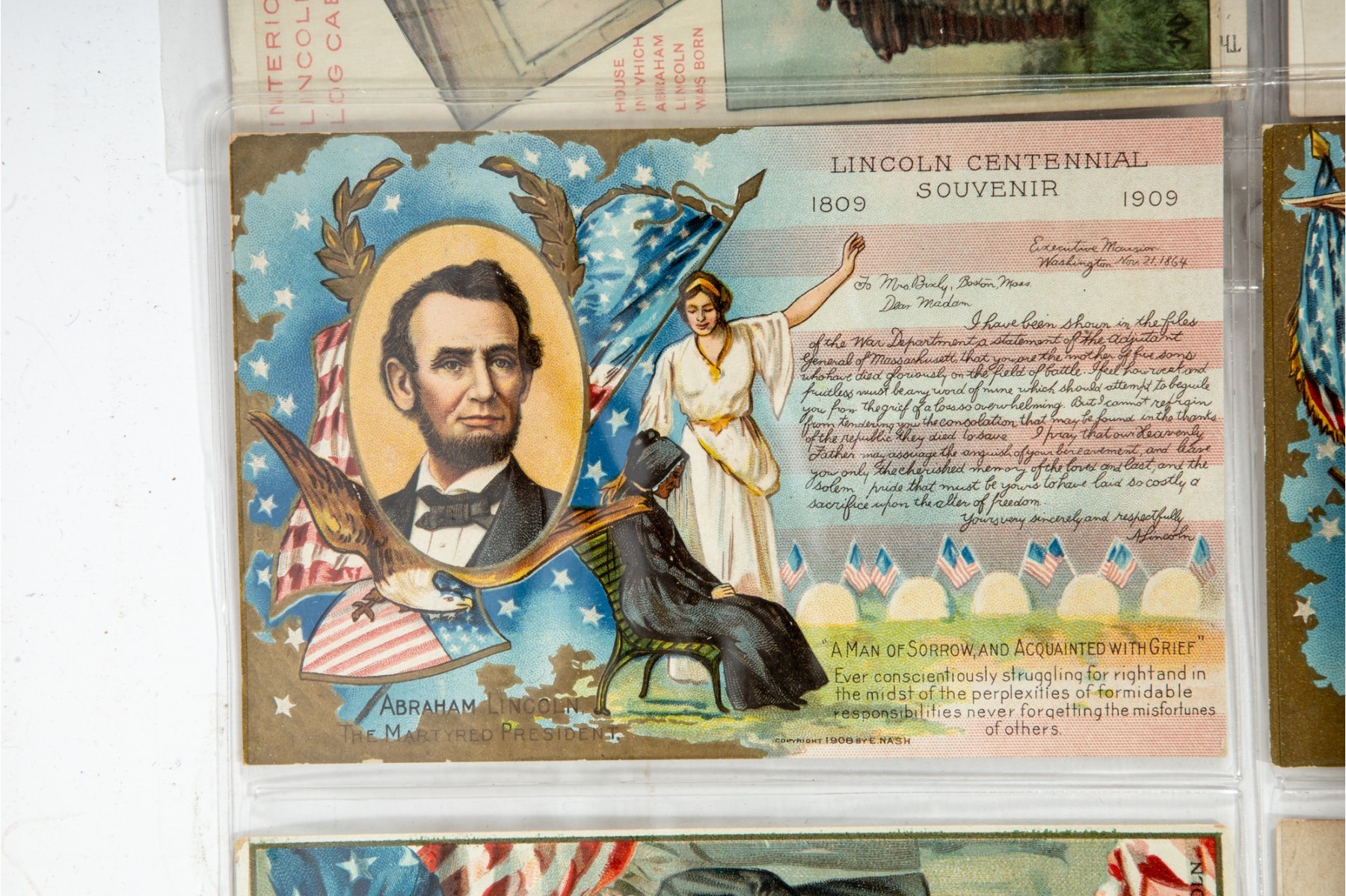 This binder contains a historic collection of Abraham Lincoln themed postcards, all of which feature unique illustrations, engravings, and colored variants. Contents as shown, see photos for details.