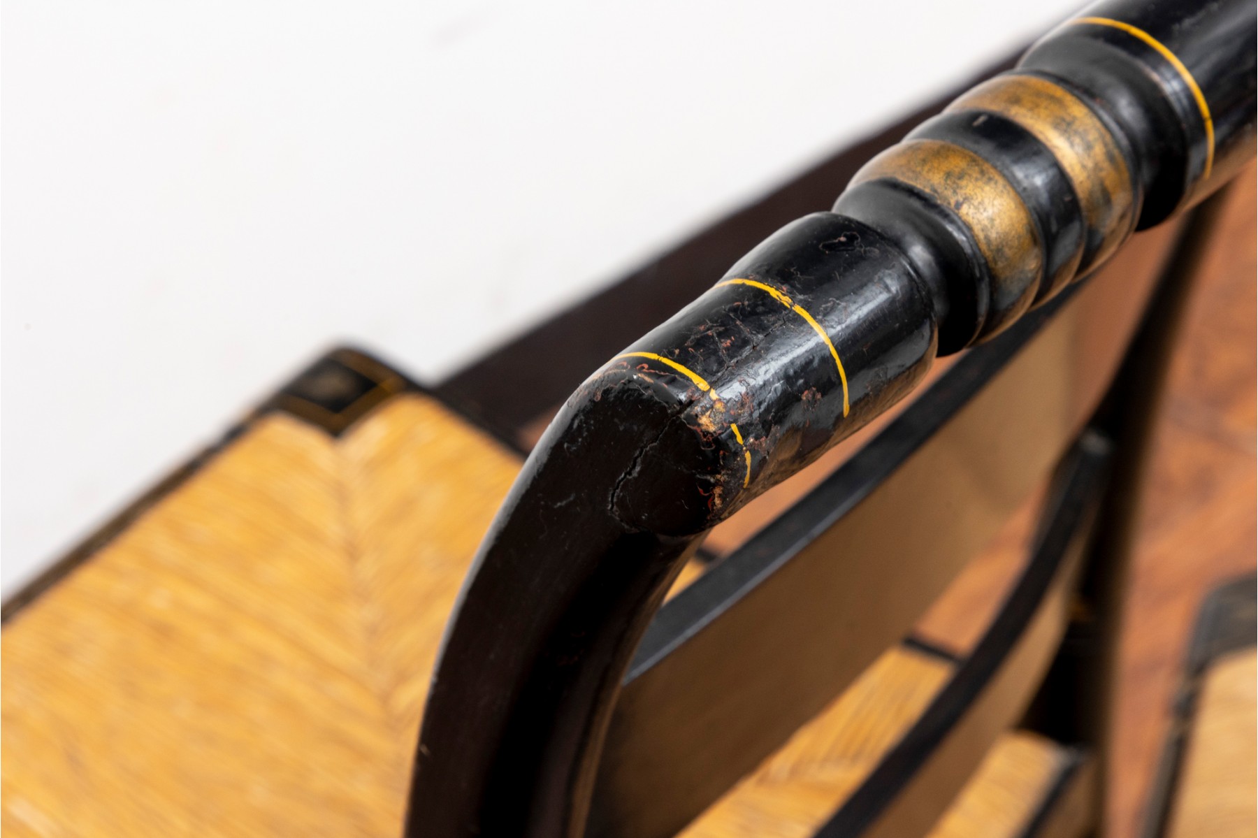 Black Lacquered Woven-Seat Chairs, Possibly Hitchcock #291397. Black Rock Galleries provides high end estate liquidation services through online estate auctions and a 50,000 sq ft designer showroom. estate liquidator, estate sale, online auction, antiques, fine art, liquidation, clean outs, auction, consignment, interior design, fine jewelry, collectibles, appraisals, estate appraisals, estate services, decor, furniture, furniture consignment, antique center, consignment shop. We offer appraisal services and specialize in fine art, jewelry, antiques and decorative arts. Sell with us. Black Rock Galleries is the tri-state's largest estate liquidator serving New England and the greater New York City area. We are the trusted source for expert appraisals, auction services, estate sales, and consignments. Black Rock Galleries is the east coast's largest and most trusted estate liquidator, with locations in Connecticut, greater Boston, MA and Raleigh, NC, Fairfield, Southport, Apex, TX. We are the best source for expert appraisals, auction services, estate sales and consignments. We have served thousands of families and estates with compassion, professionalism and expertise. BRG works with attorneys, executors, realtors and families to bring the greatest return on personal and estate property in the current market. Our unique combination of services make us the easy choice to get the job done in a timely and stress-free manner. We are with you from the initial consultation to the final clean out. Our house-built online auction software platform offers clients a dynamic approach to liquidating their personal property. This venue is most successful in bringing the best return with the least amount of disruption for our clients. See our services page for a complete description of this offering. Black Lacquered Woven-Seat Chairs, Possibly Hitchcock #291397