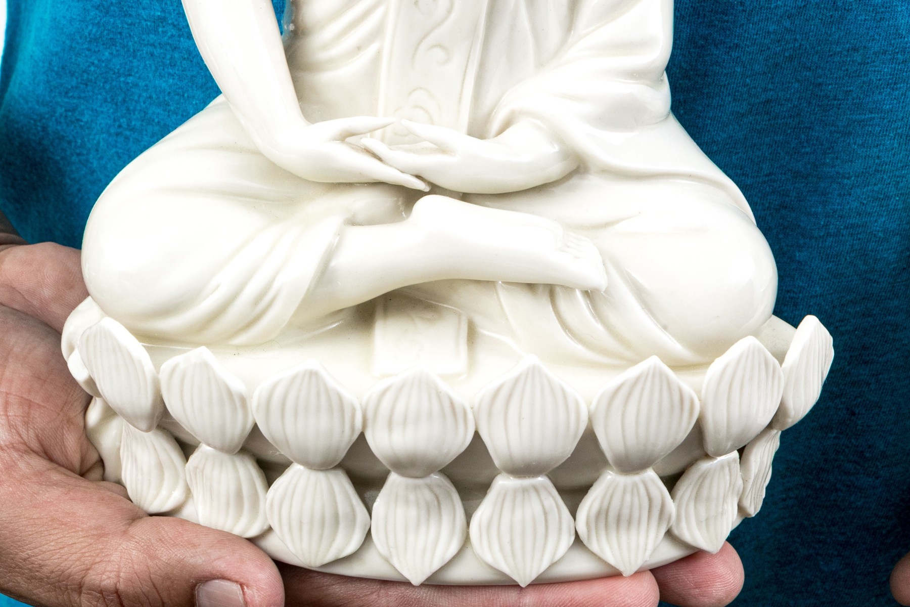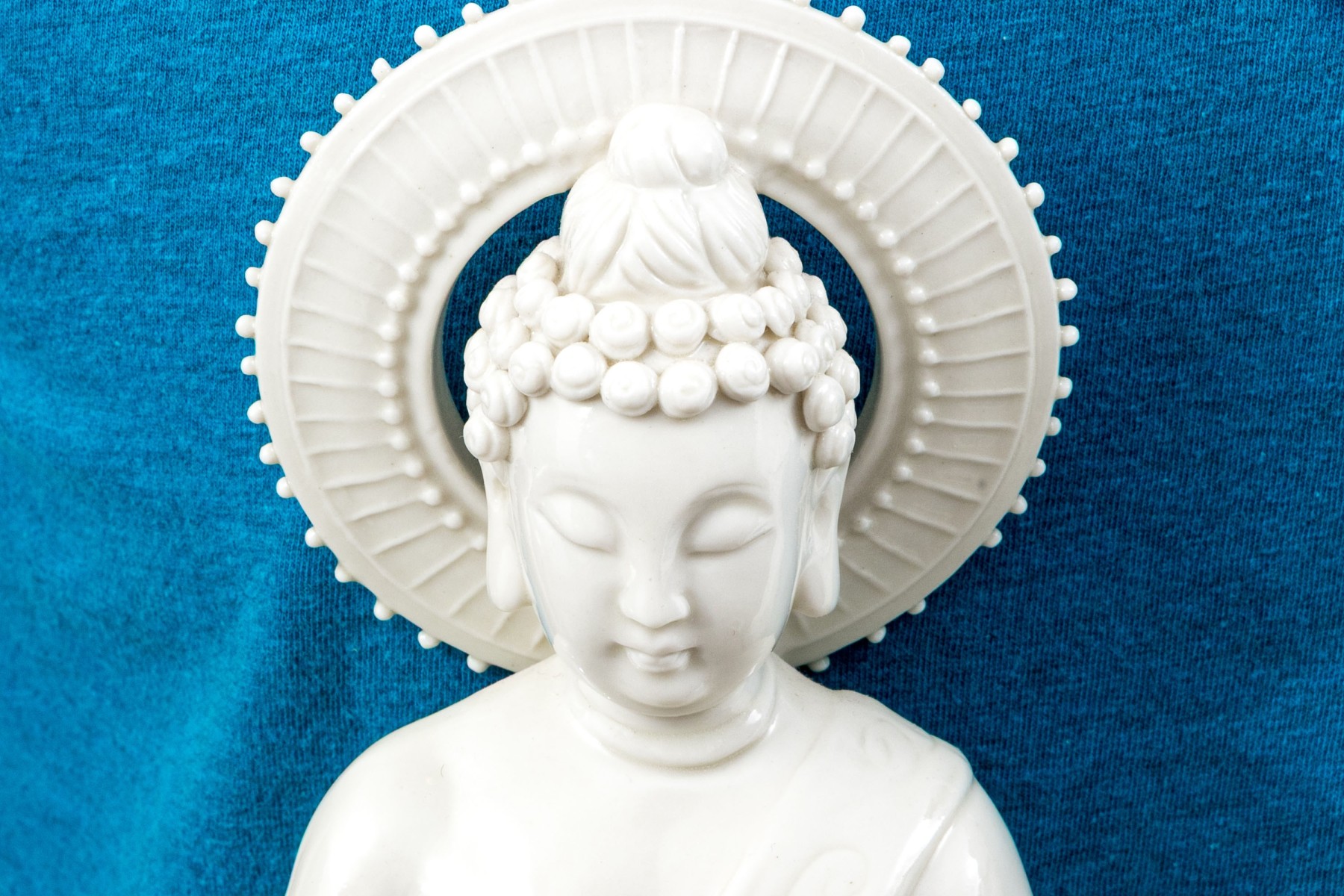 A fabulous duo of blanc de chine figures including one of Guanyin and the other of Buddha. Both beautifully detailed.