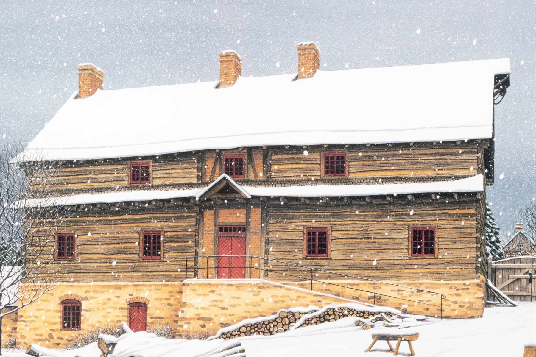 Bob Timberlake’s "Salem Snow" captures the quiet beauty of a historic Moravian building in Old Salem, North Carolina, under a gentle winter snowfall. This limited edition lithograph is pencil signed and numbered by the artist, professionally framed with linen matting.