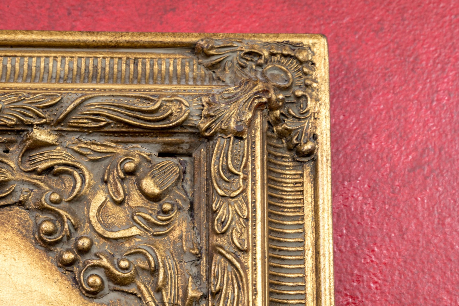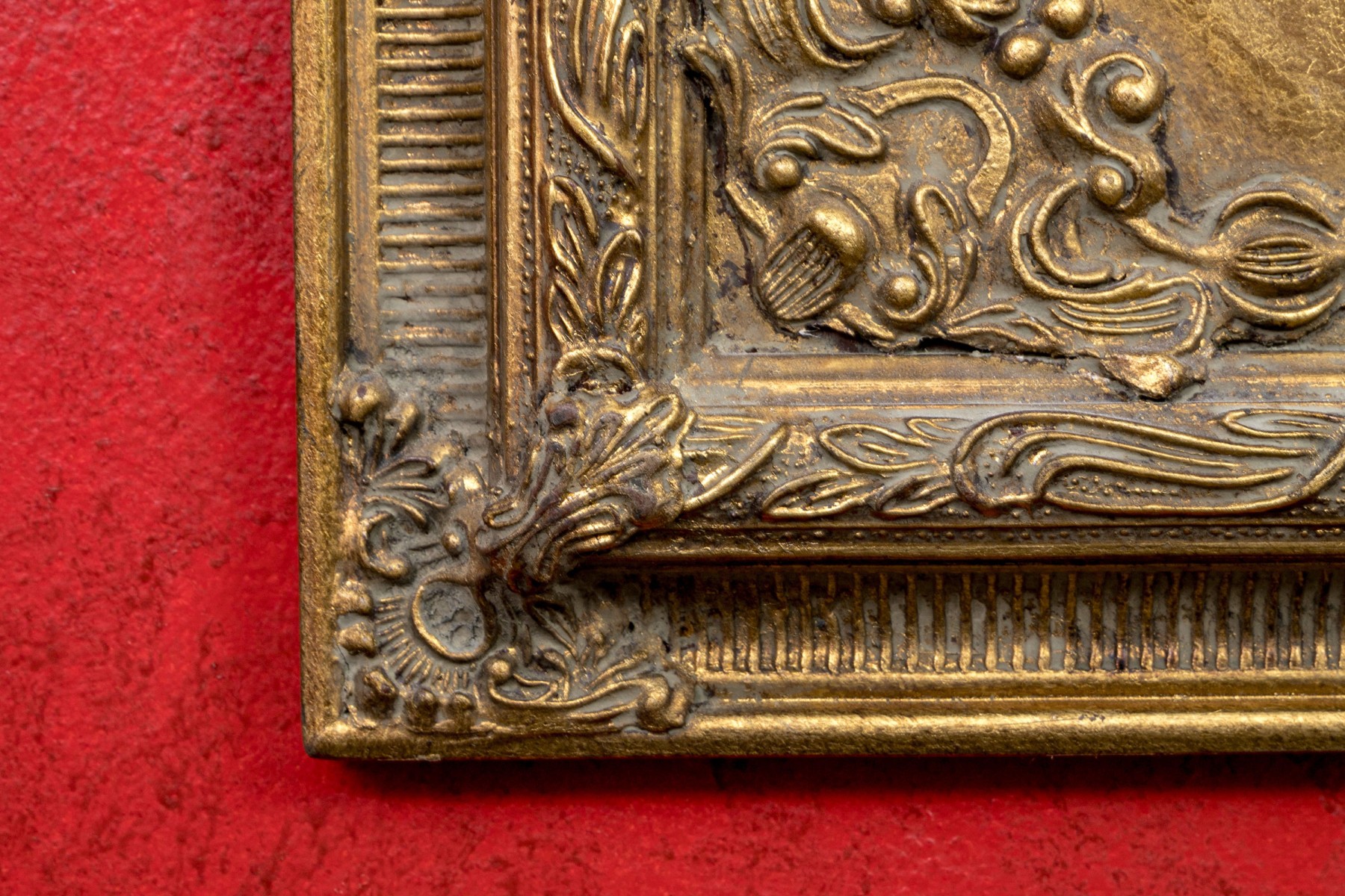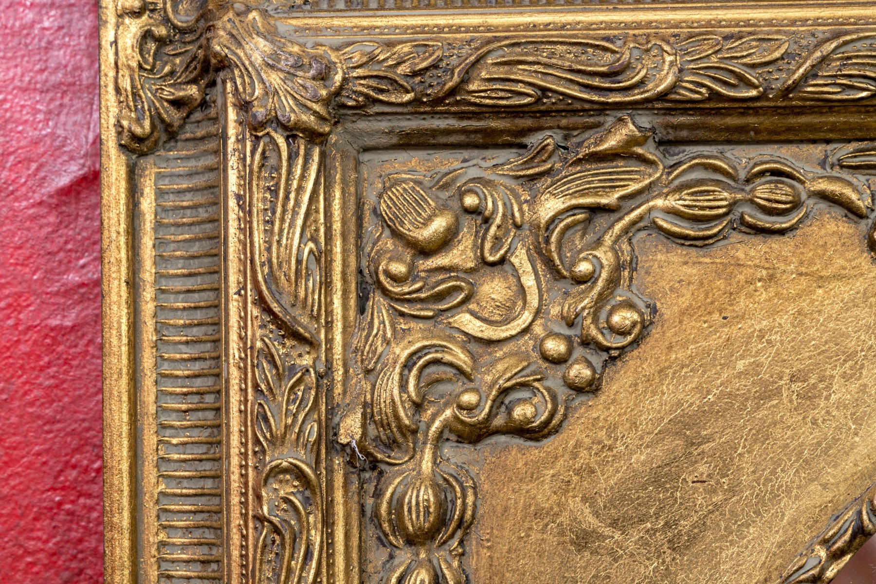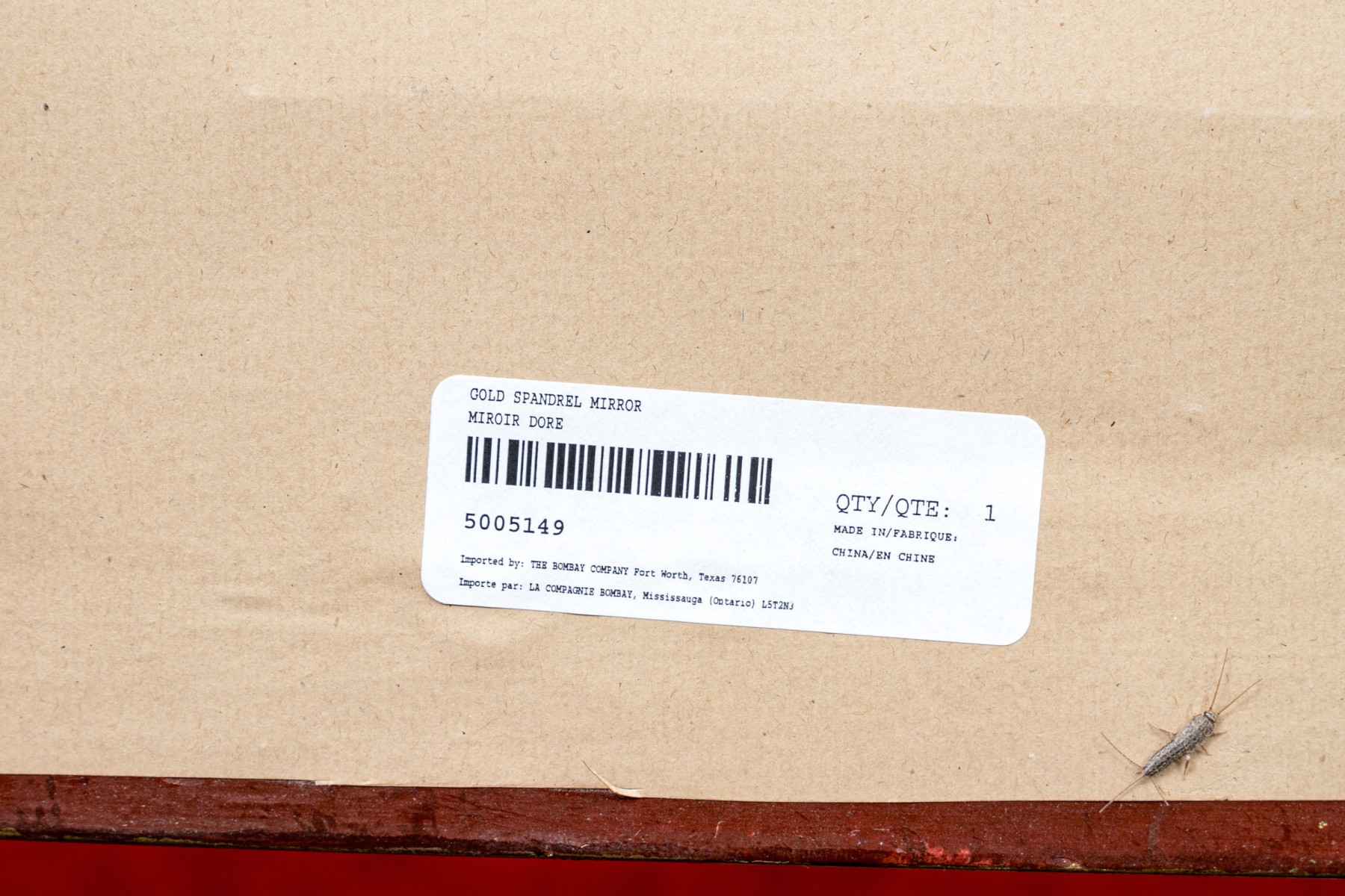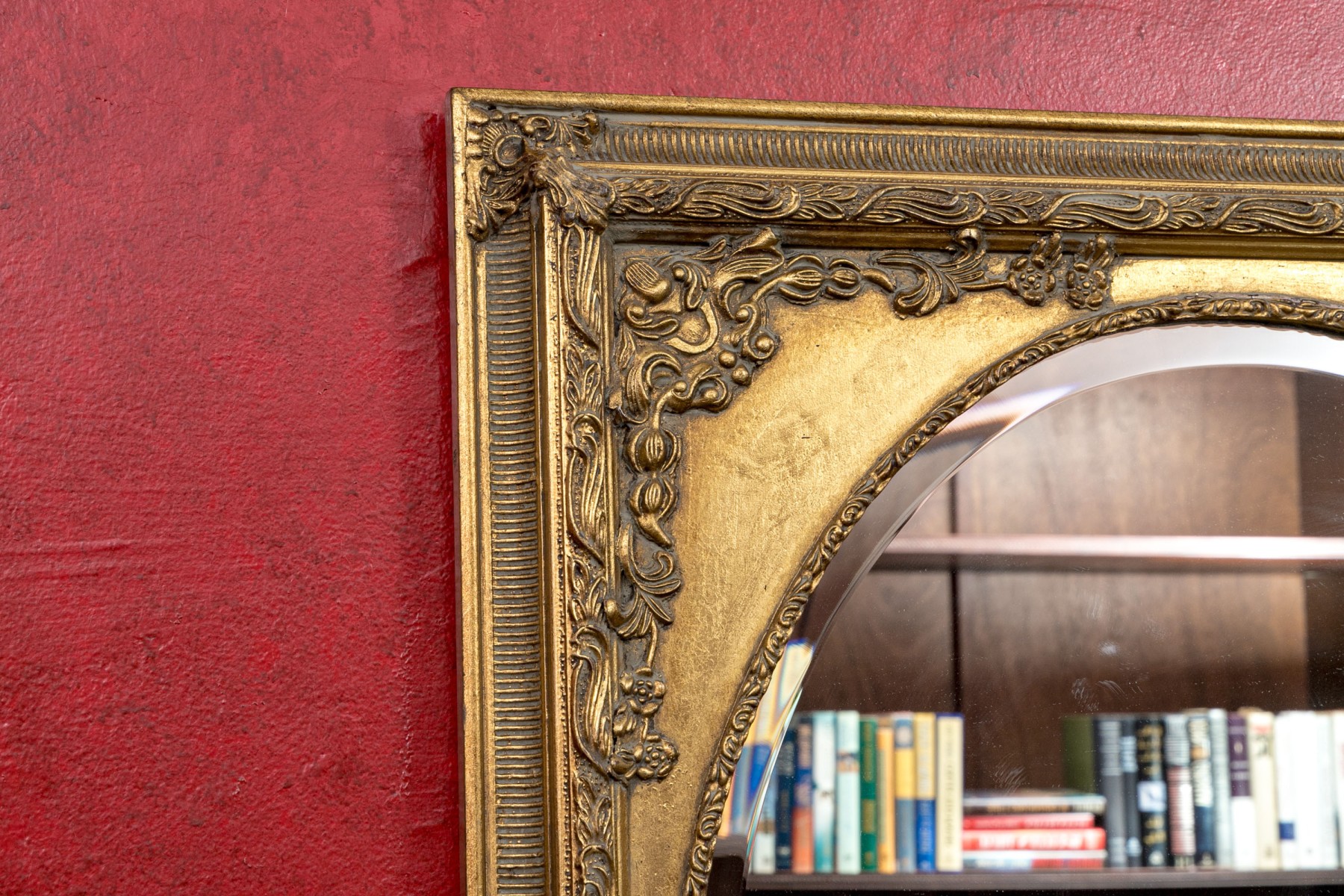 Bombay Company "gold spandrel Mirror" having a beautiful ornate frame with gilt finish surrounding an oval mirror. Bears "The Bombay Company" Label on verso.