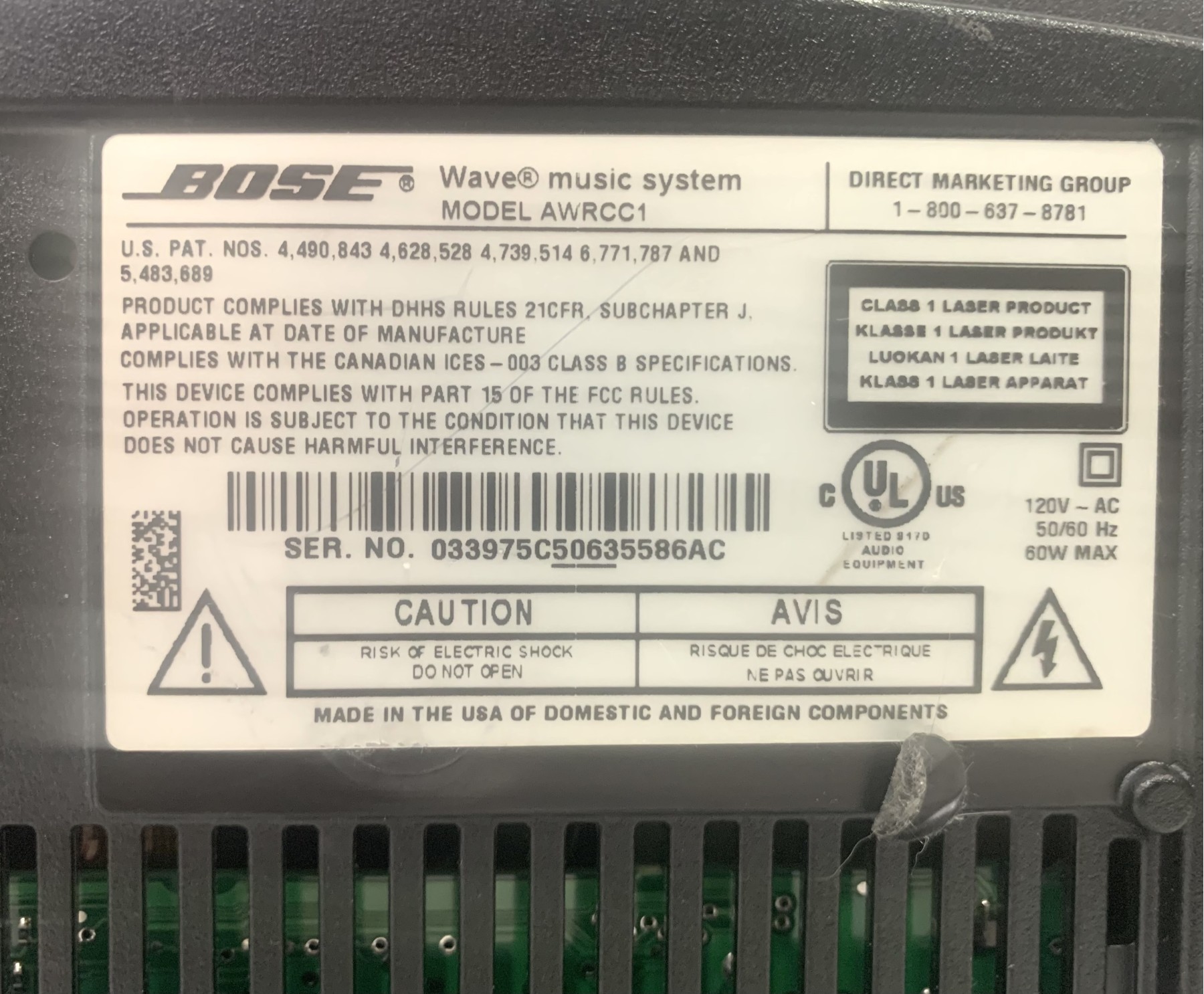 Black Bose Wave Radio with CD, Model AWRCC1 with working remote.