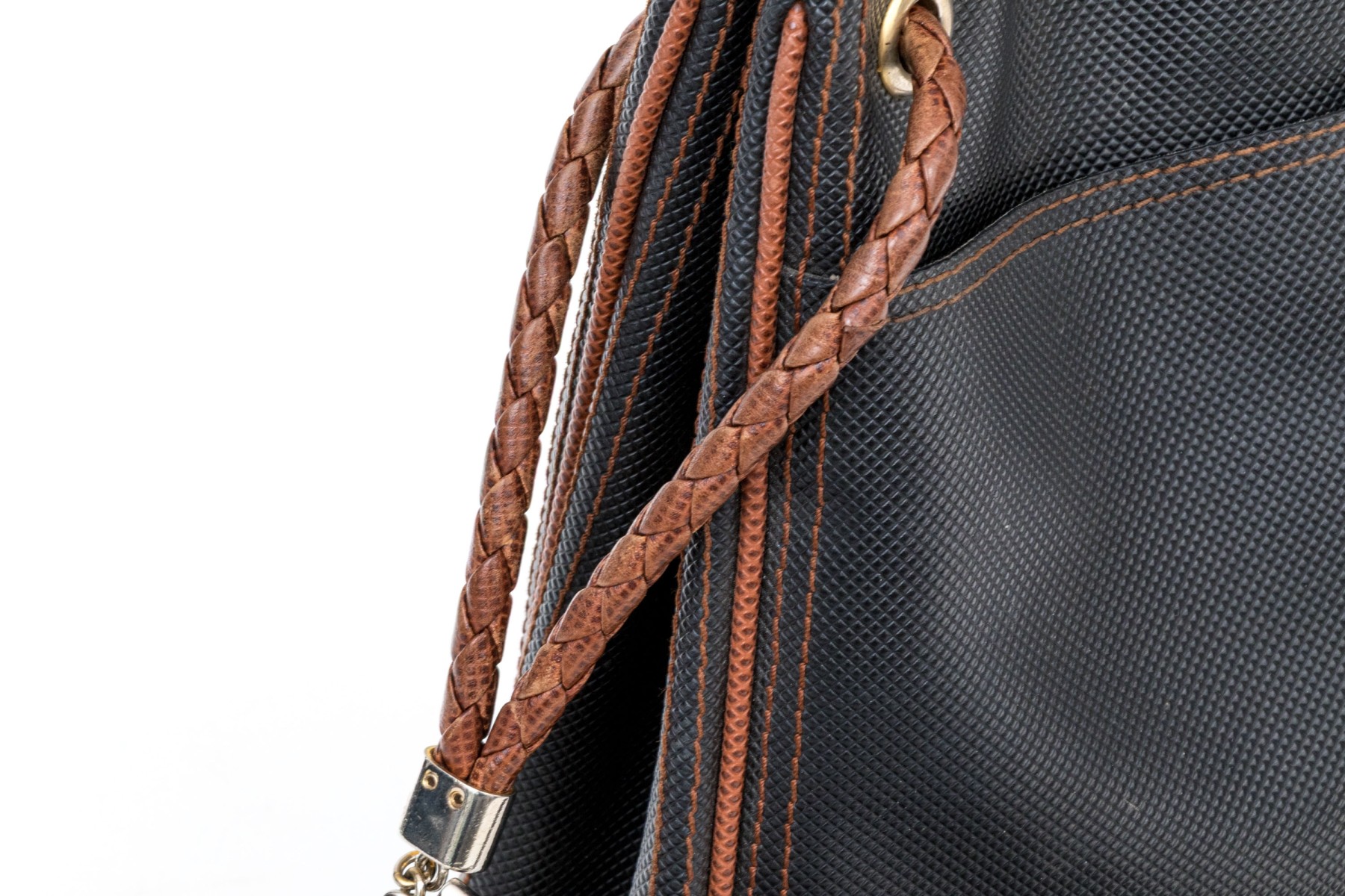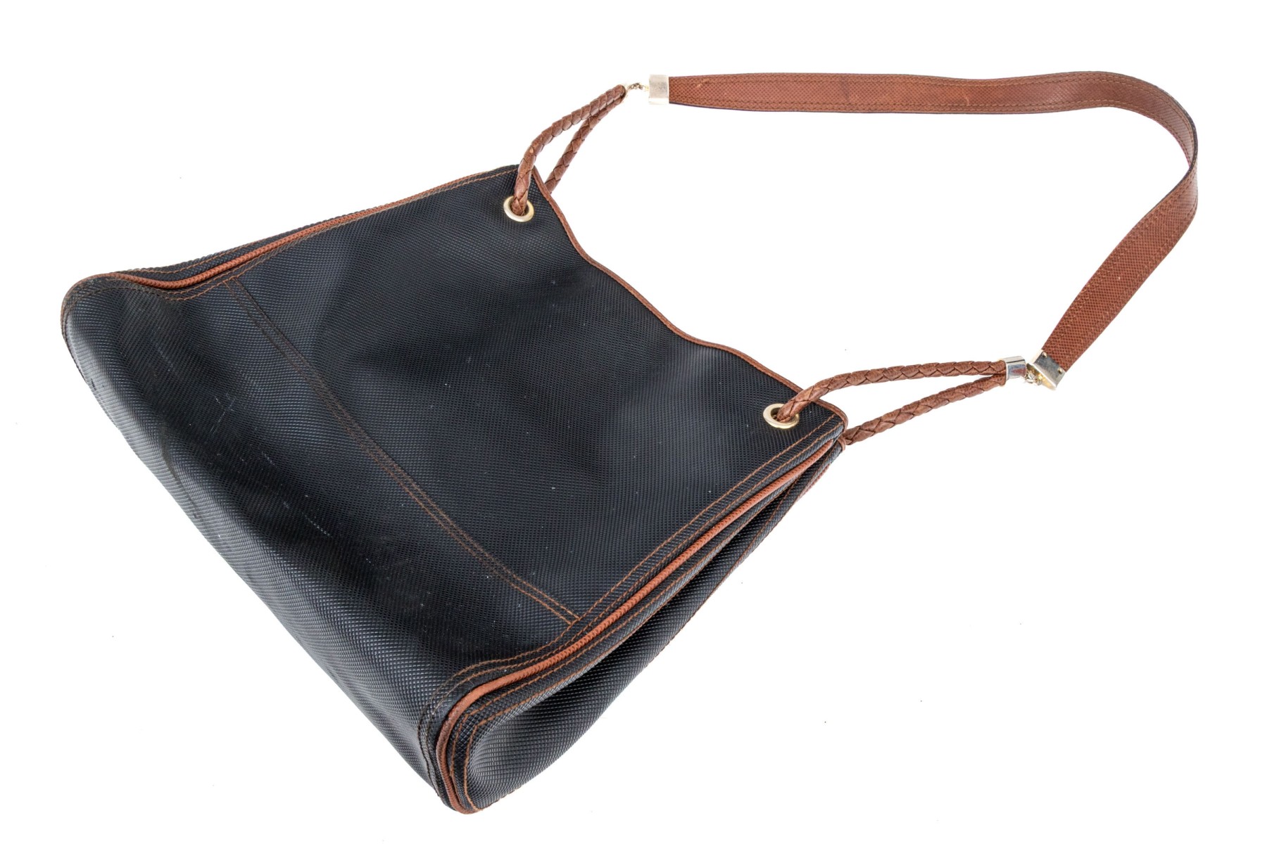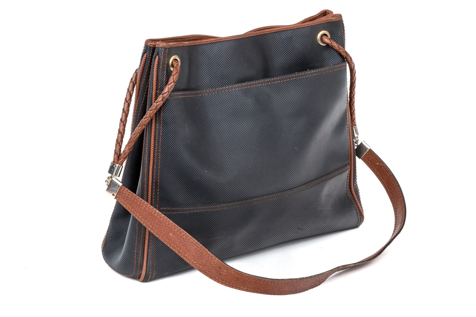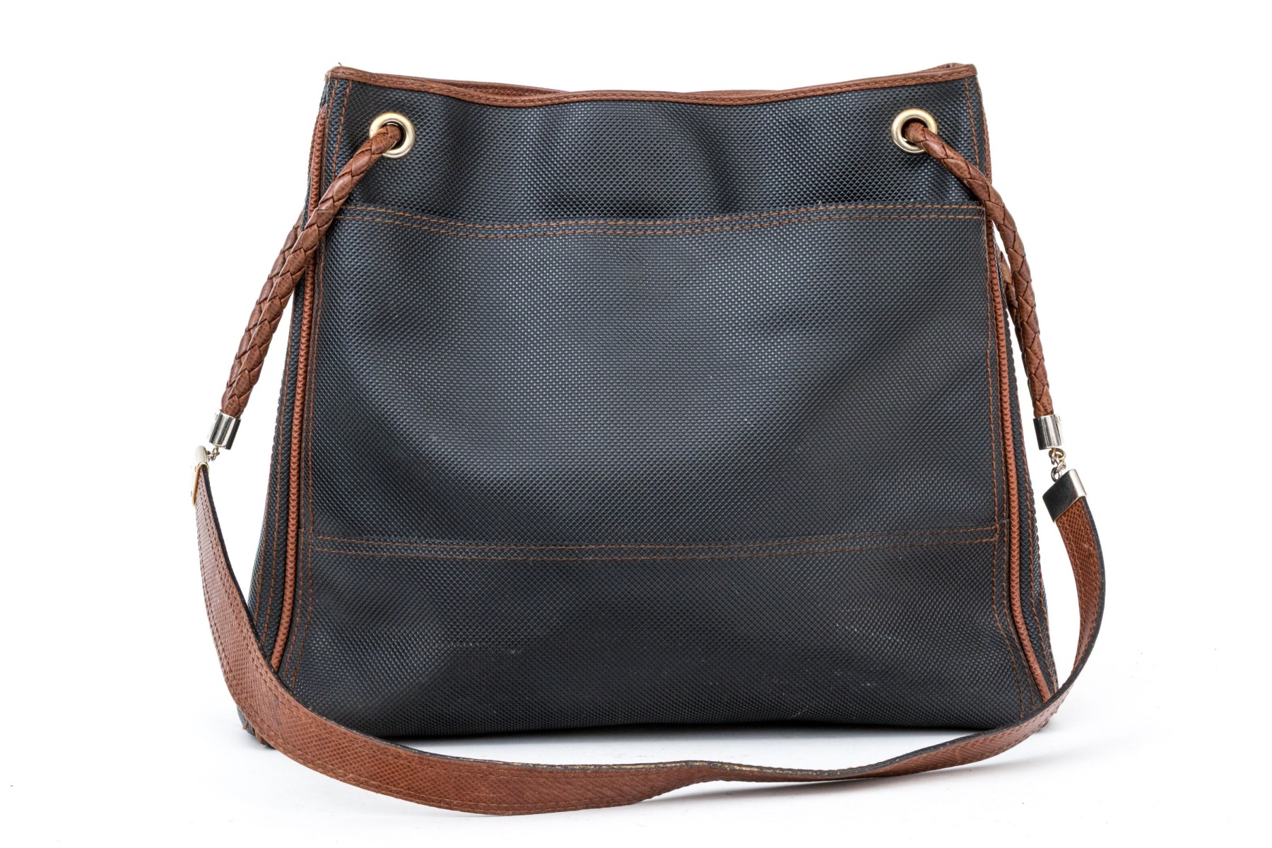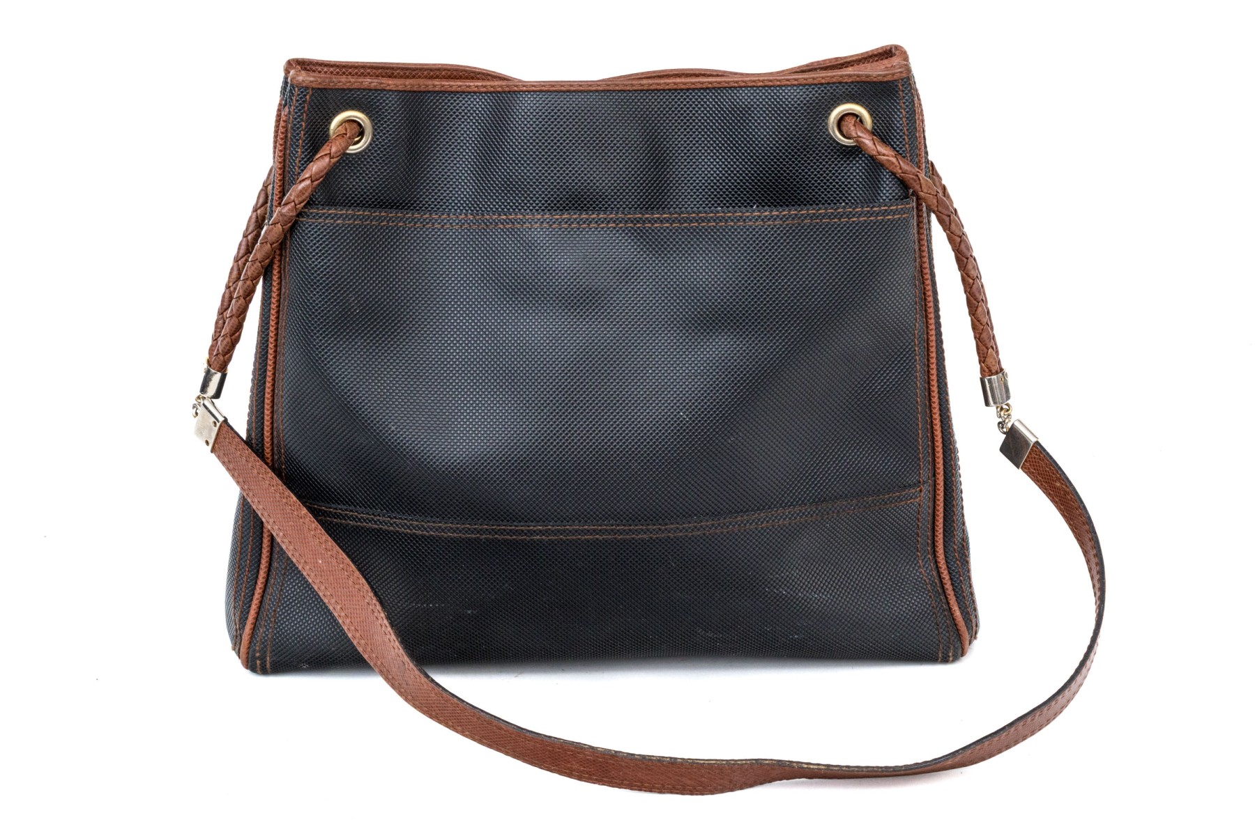 Bottega Veneta black canvas and brown leather tote style shoulder bag