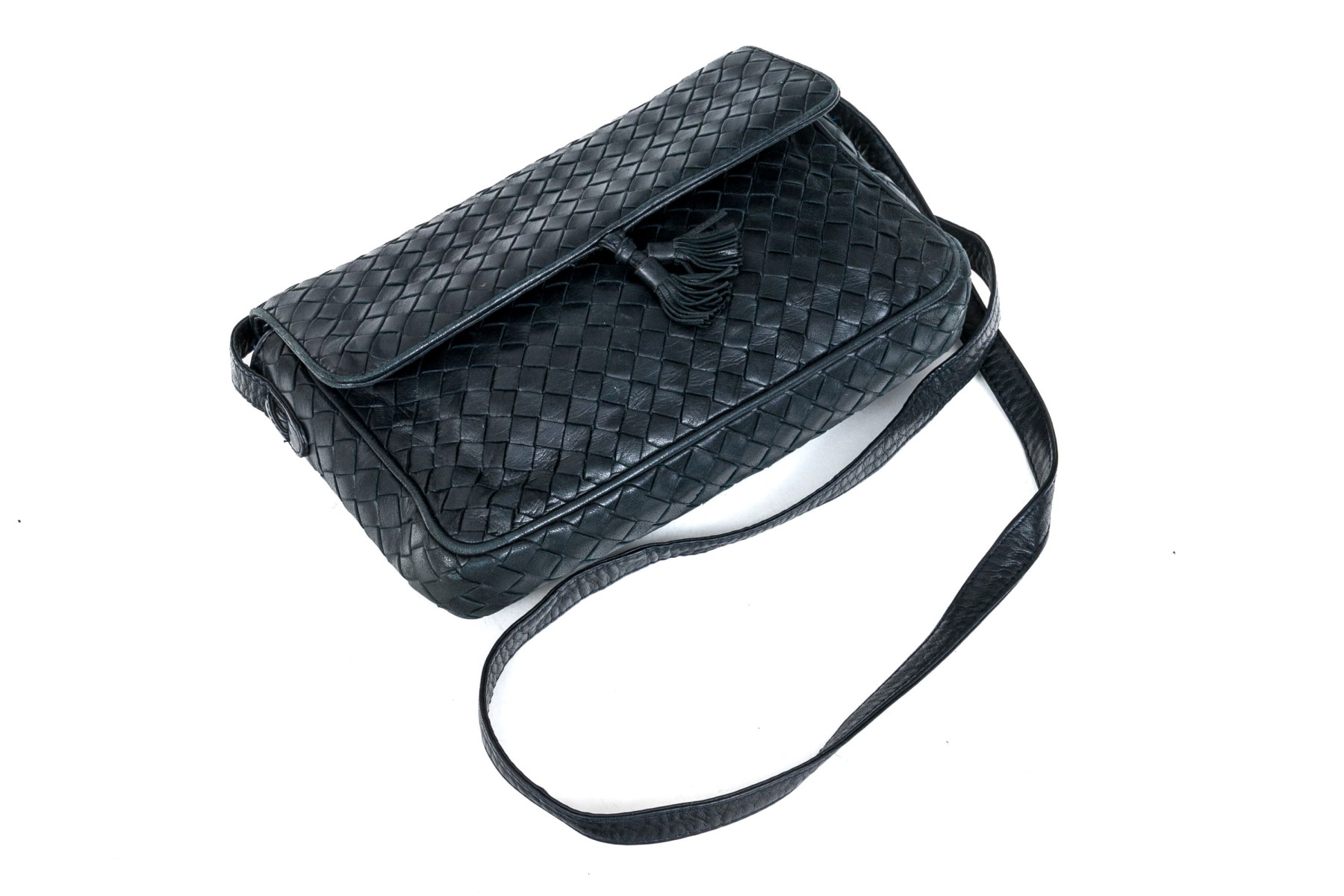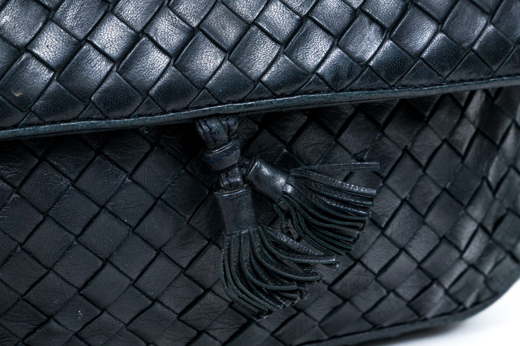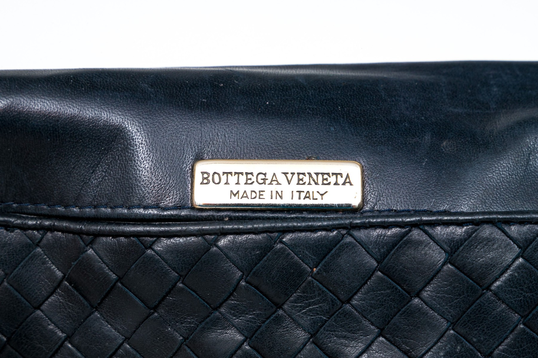 Bottega Veneta classic navy woven leather shoulder bag