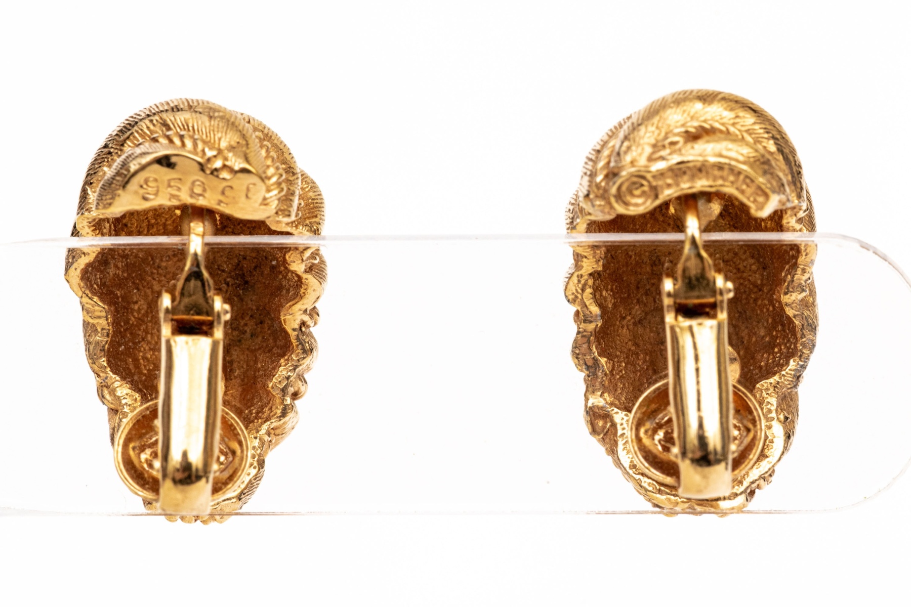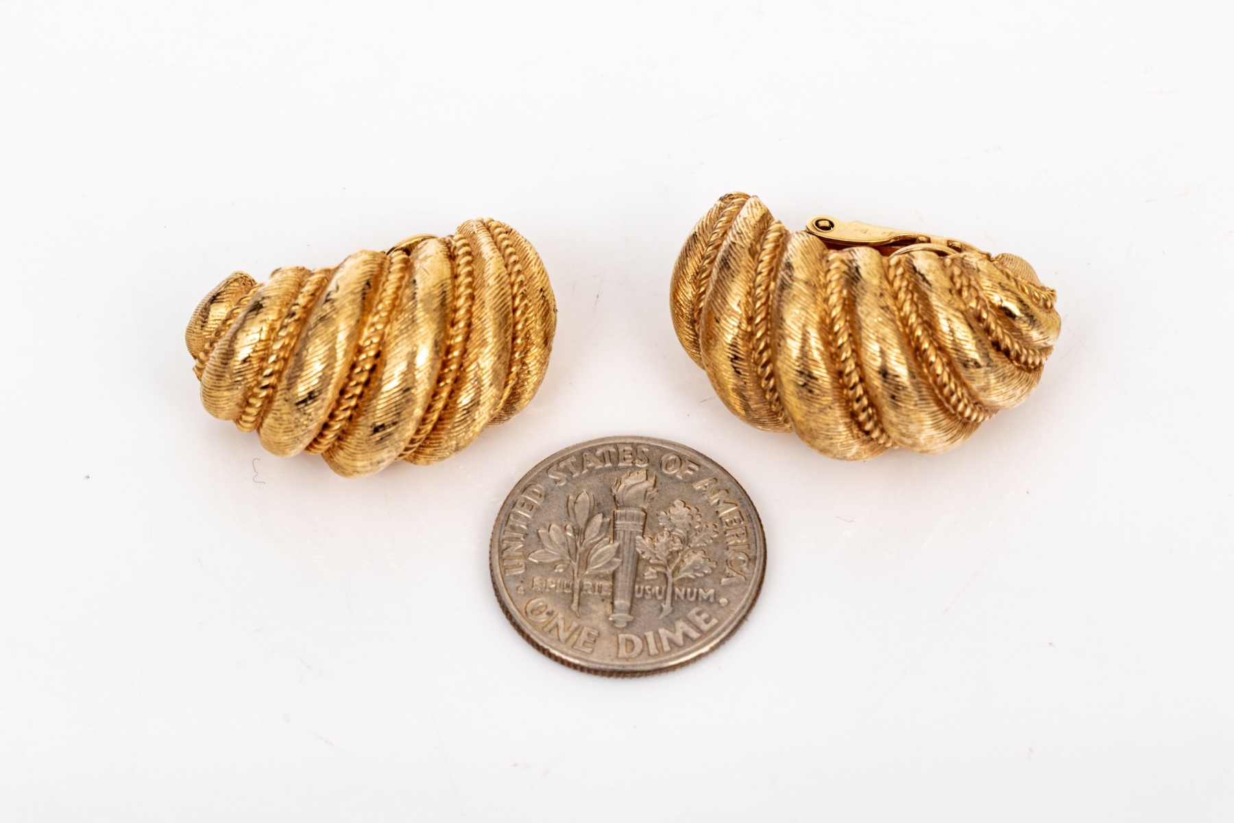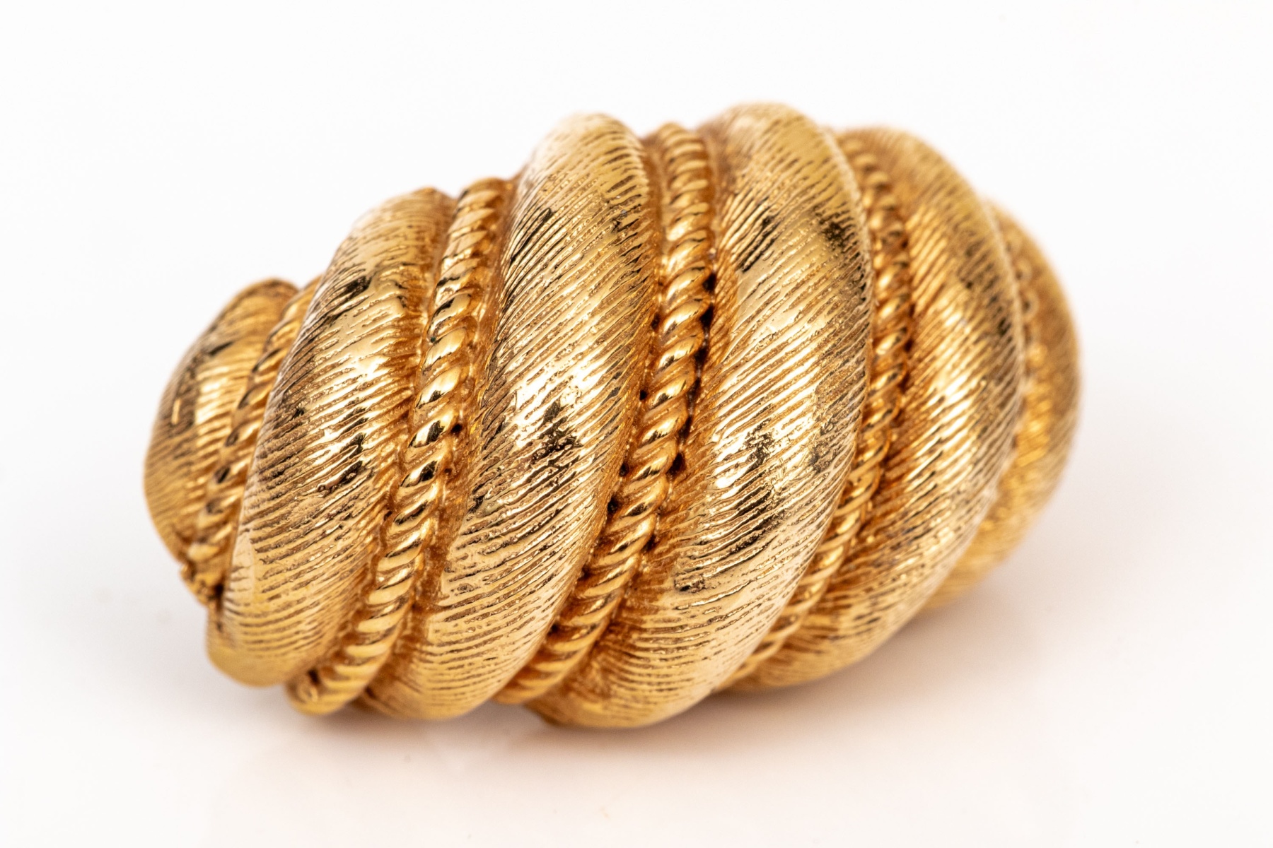 Boucheron 18k yellow gold magnificent vintage matte ribbed shrimp style clip on earrings, finished with clip on style backs, no posts