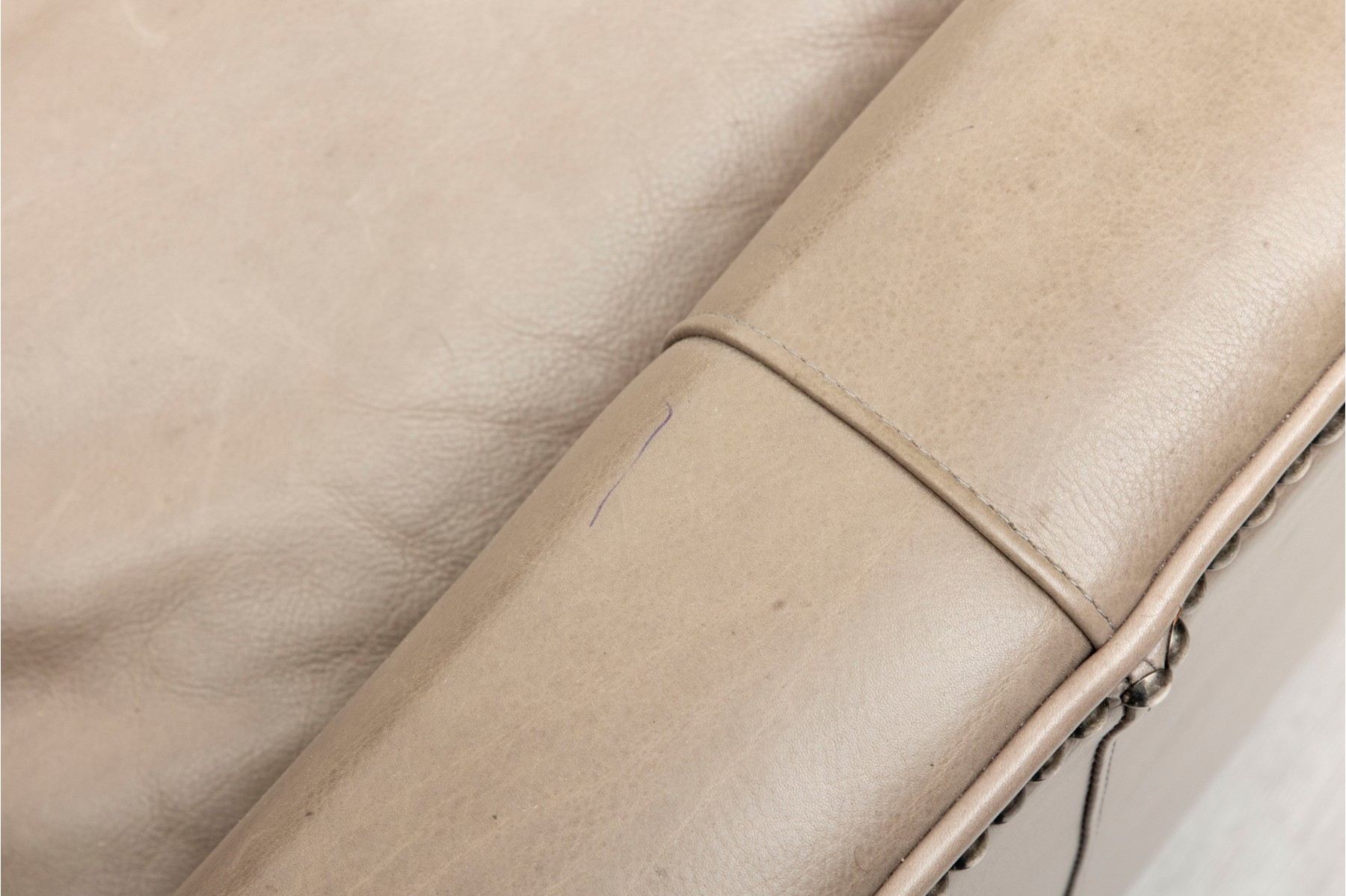 Displays well with some scattered leather wear, most notably staining to the head and leg rest, some scuffs around the feet. Please review the pictures as they are a part of the condition report.