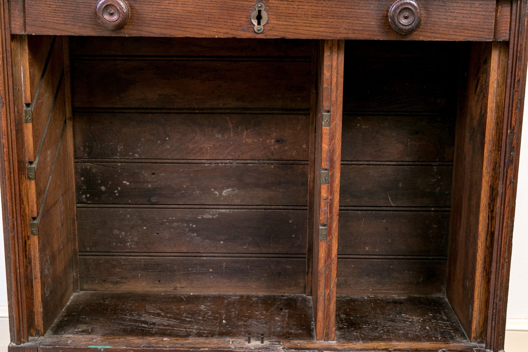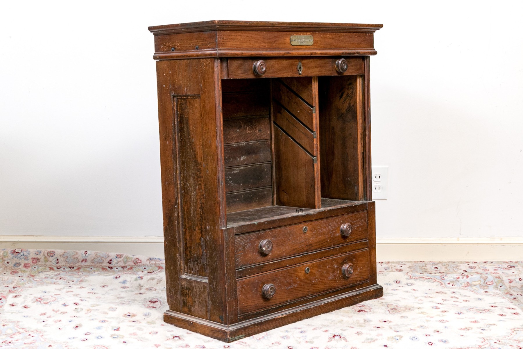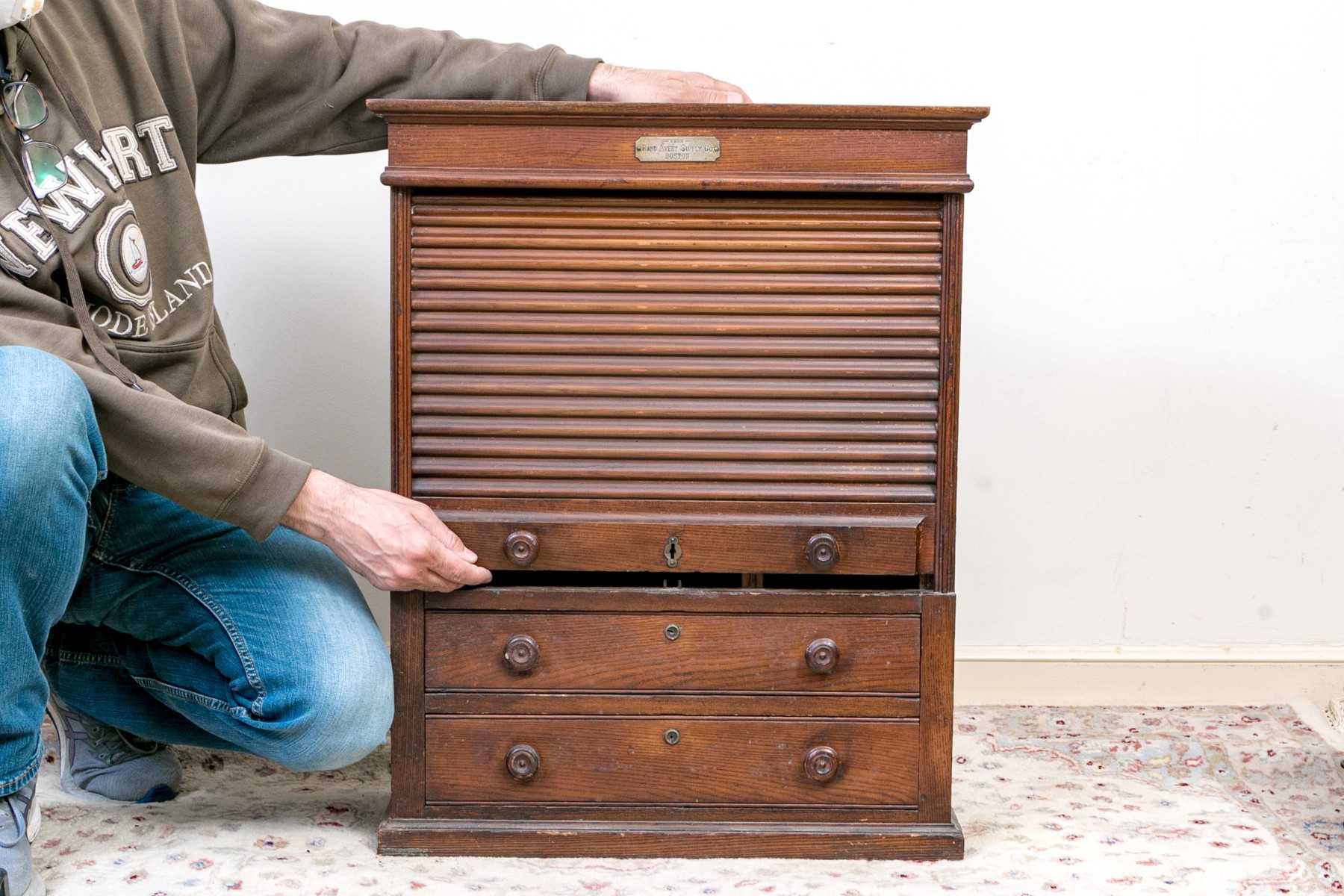 A great cabinet with lots of storage and a unique pull down door tambour door.