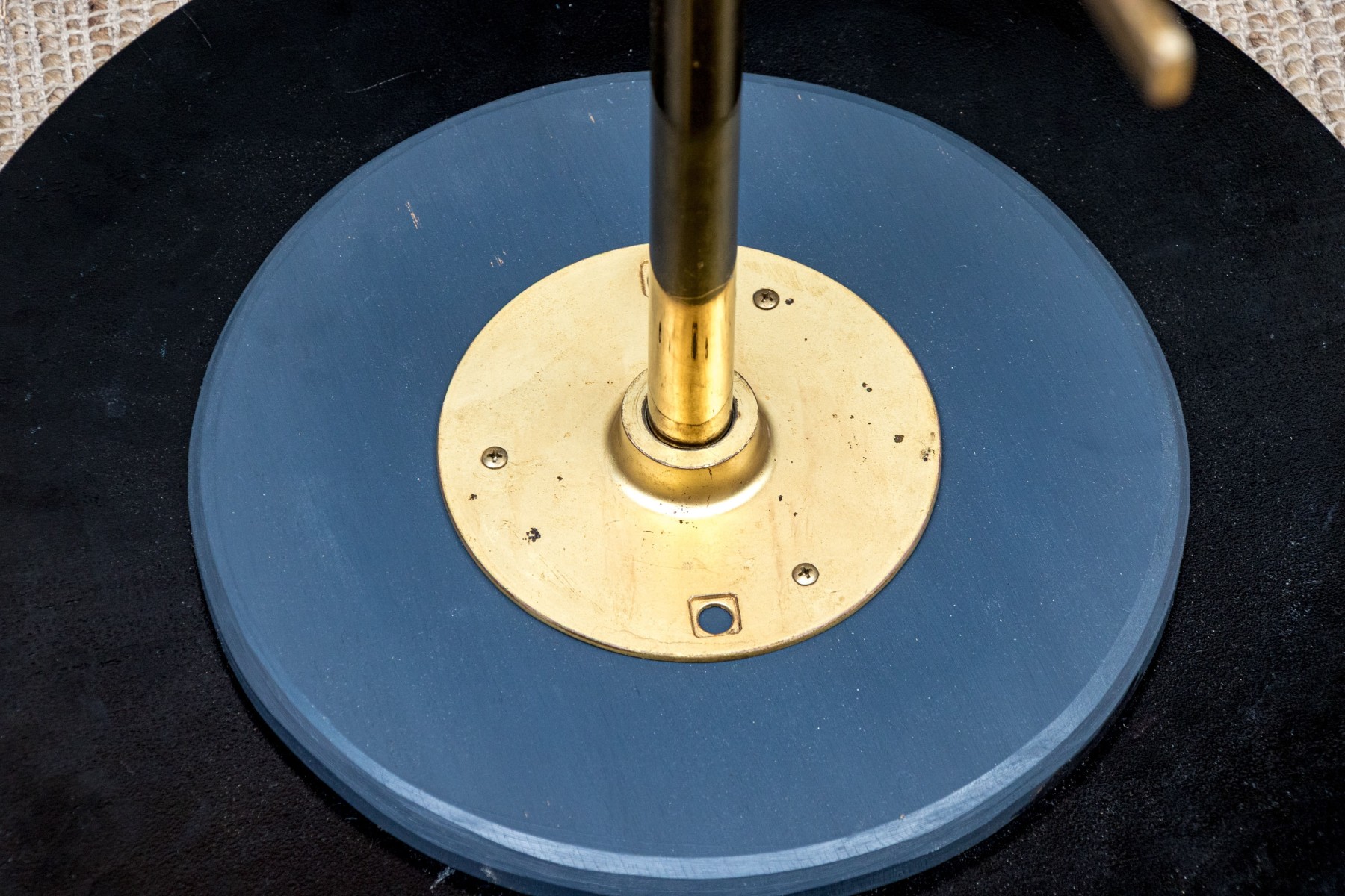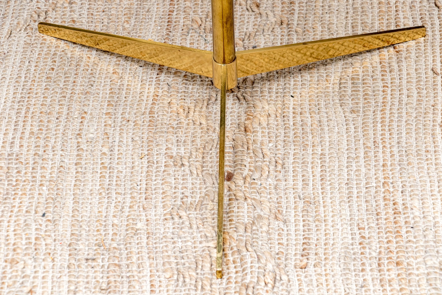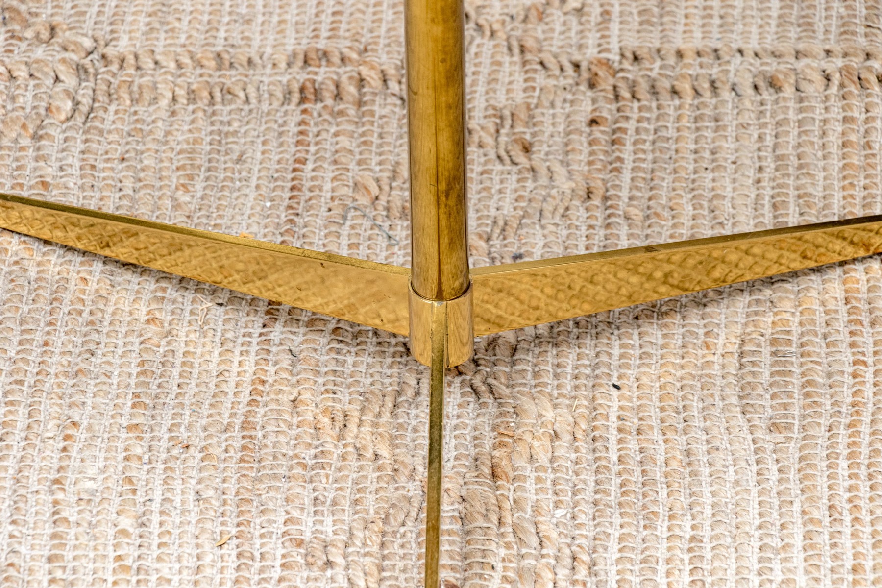 Stylish with three legs and cylindrical pedestal with black tinted glass table top which appears chic in contrast with the brass pedestal.