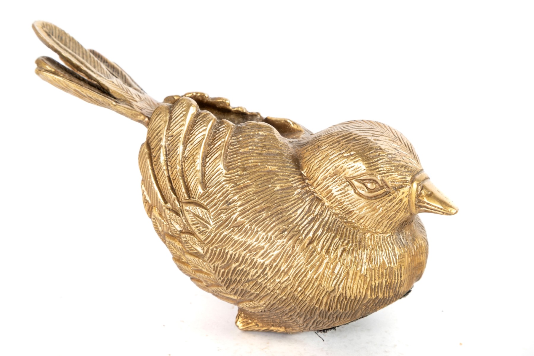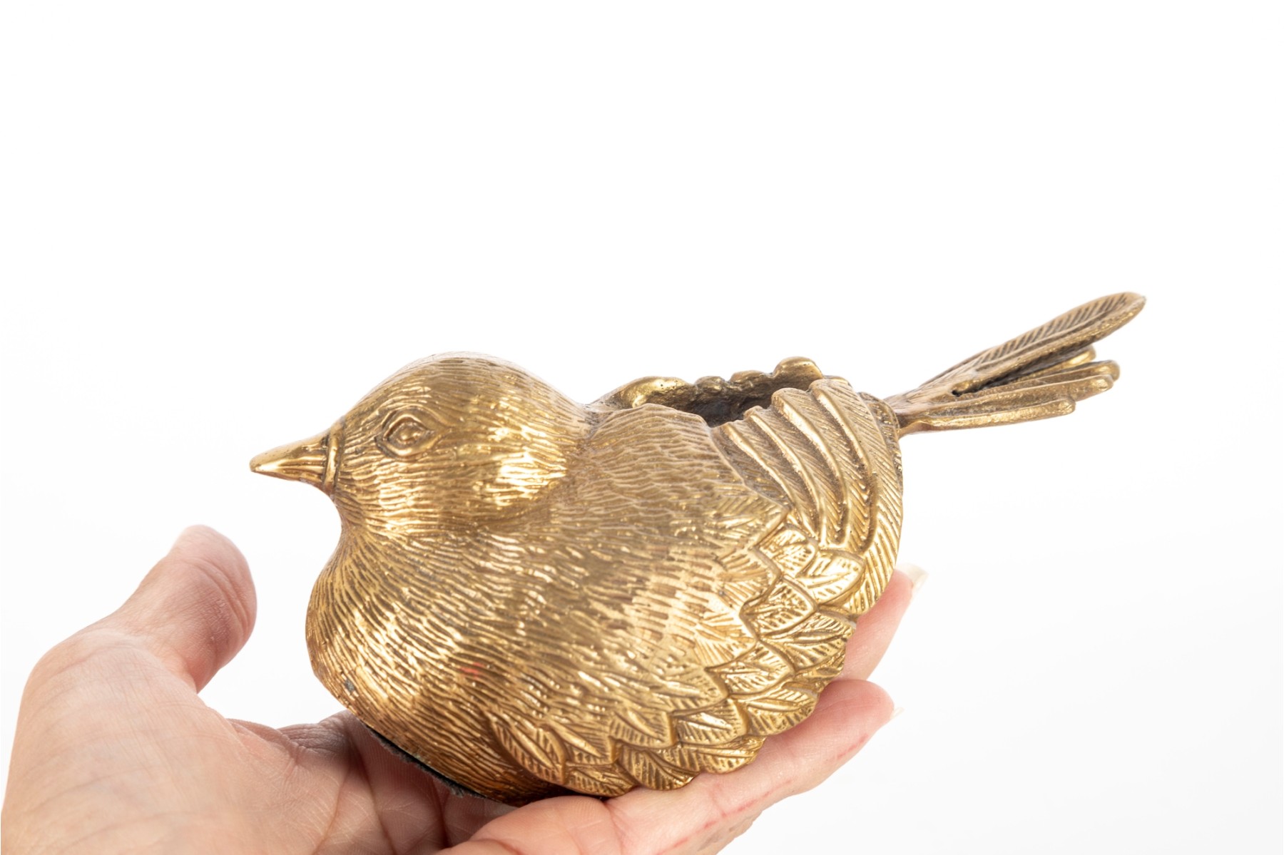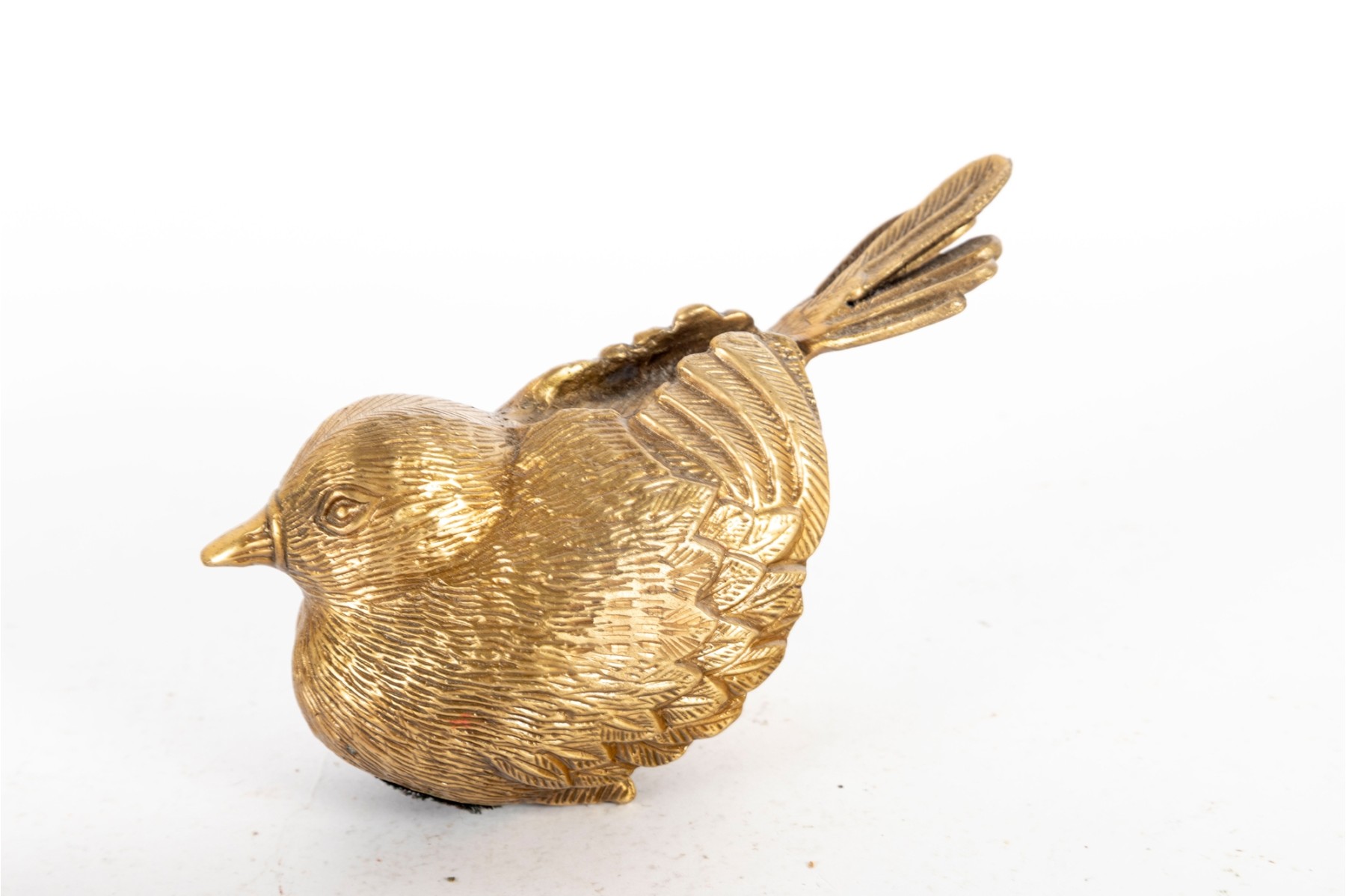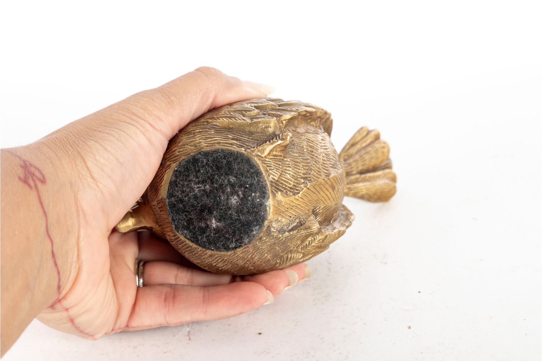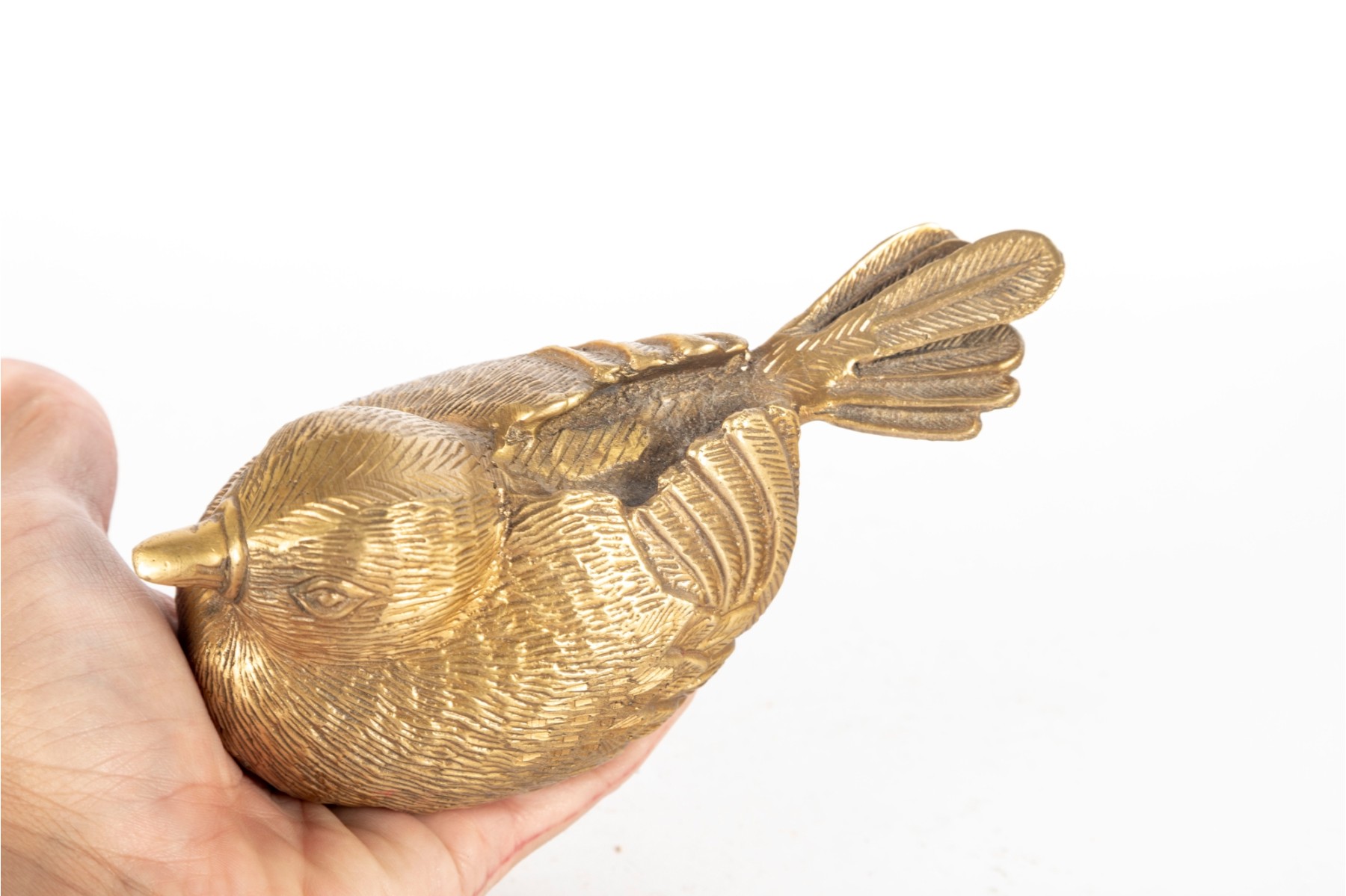 Charming solid brass bird sculpture, finely cast with detailed feather and facial features.
