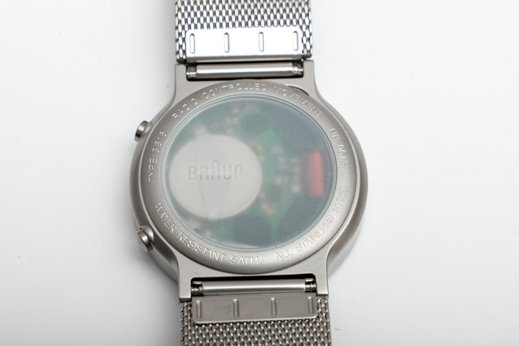 The back of the case is marked: Radio controlled movement, NR 0669, All stainless steel, Water resistant 5 ATM, Type 3816.