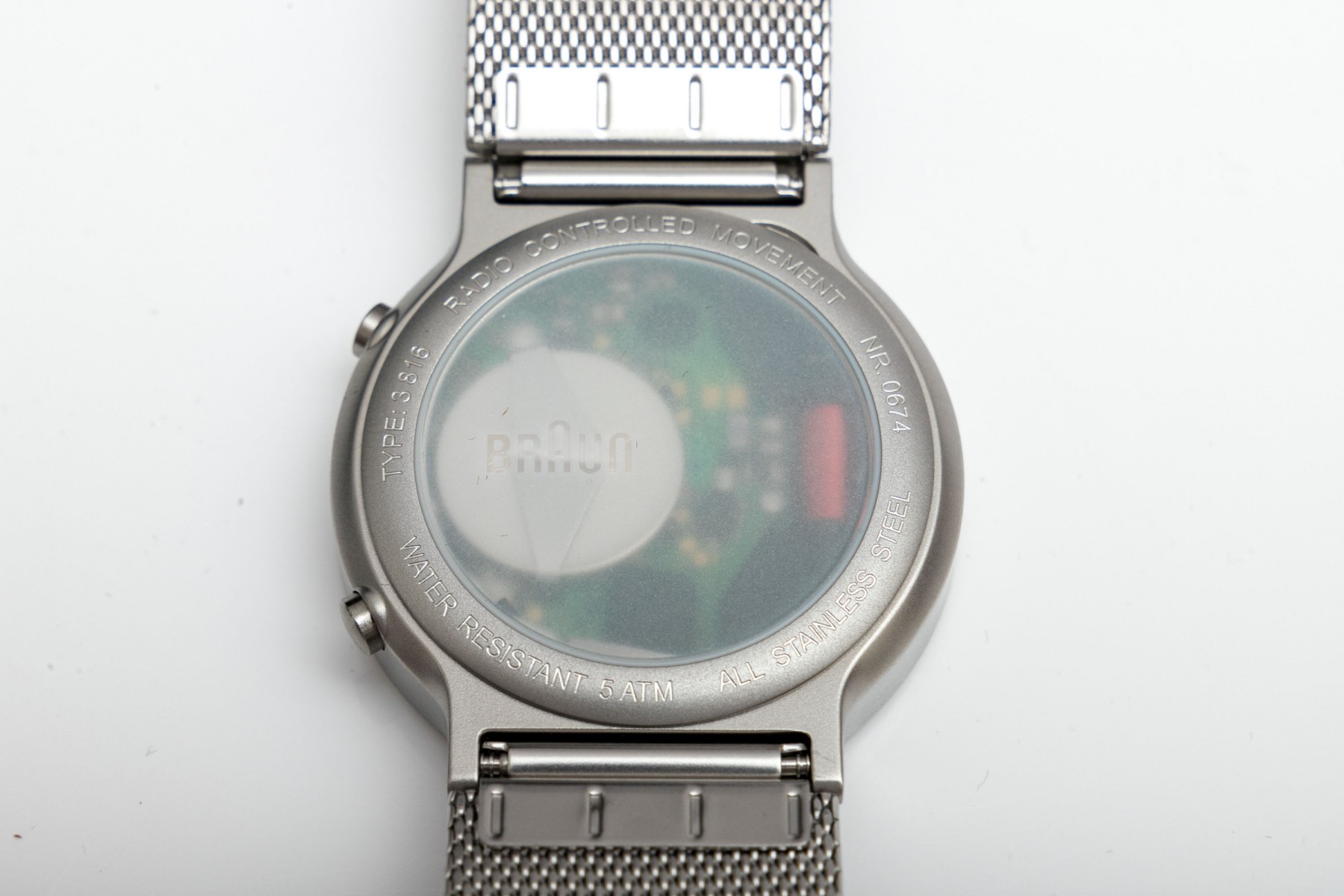 The back of the case is marked: Radio controlled movement, NR 0669, All stainless steel, Water resistant 5 ATM, Type 3816.