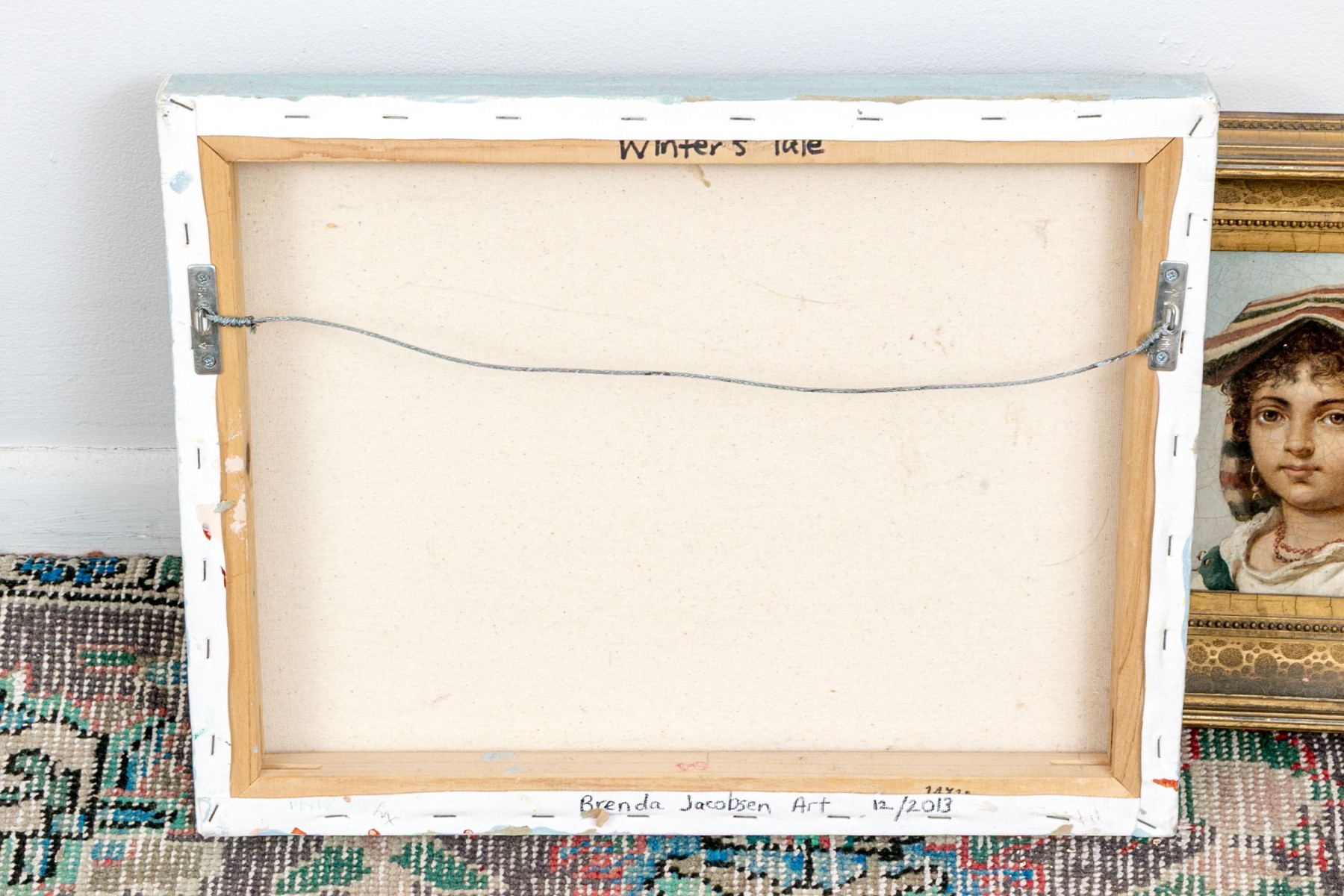 Good overall, minor wear around the trim where the canvas pulled over the stretcher.