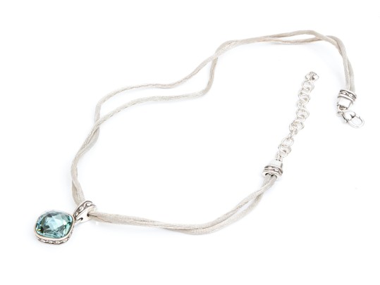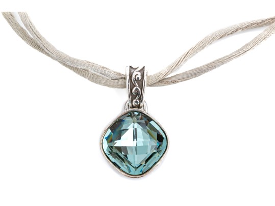 Brighton eye-catching blue glass pendant, on a satin cord, finished with a lobster claw style clasp