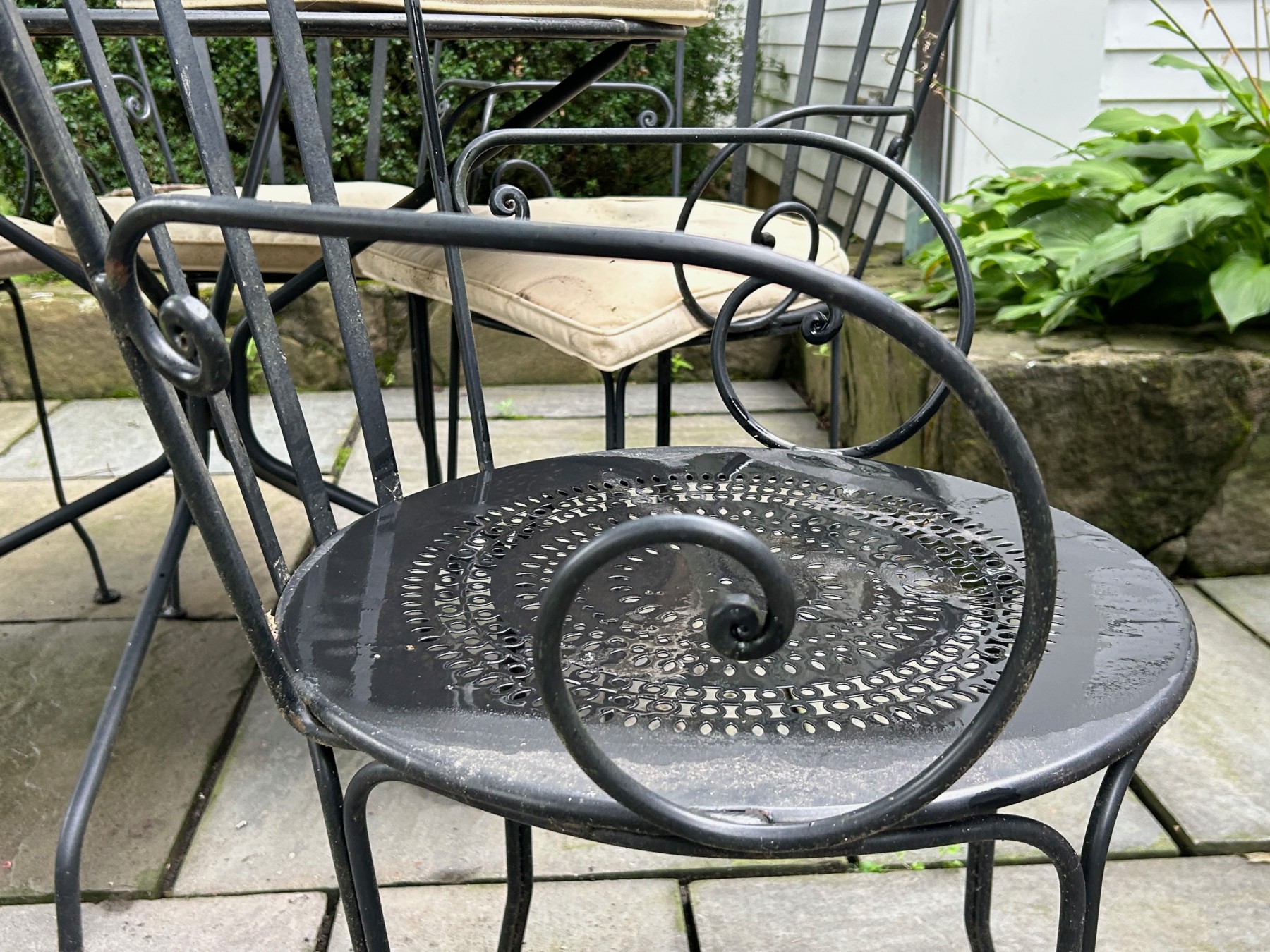 All chairs come with a weathered, upholstered seat cushion.