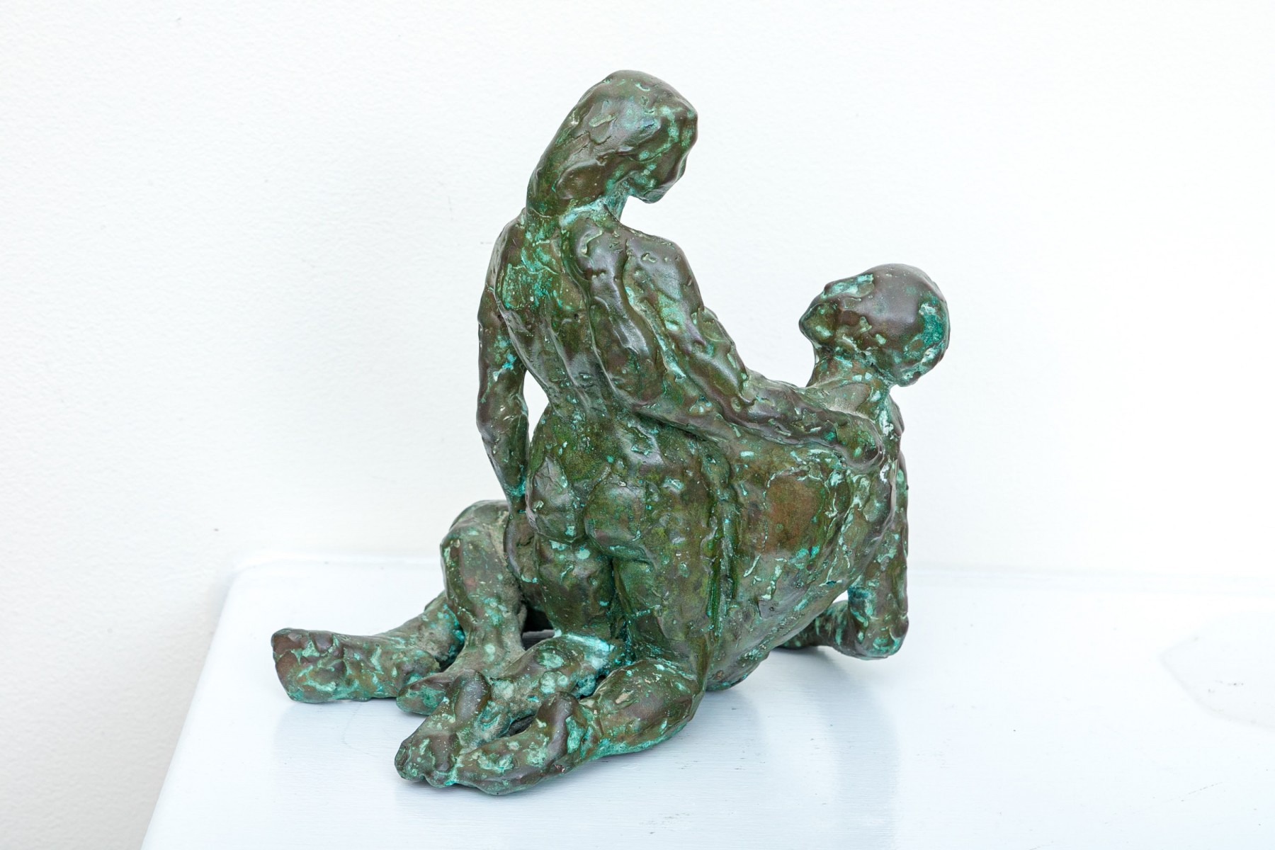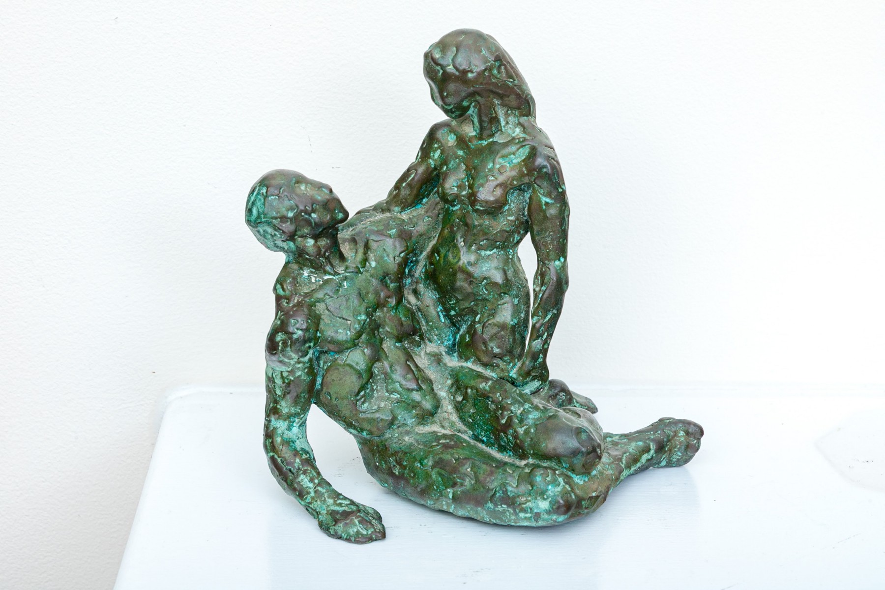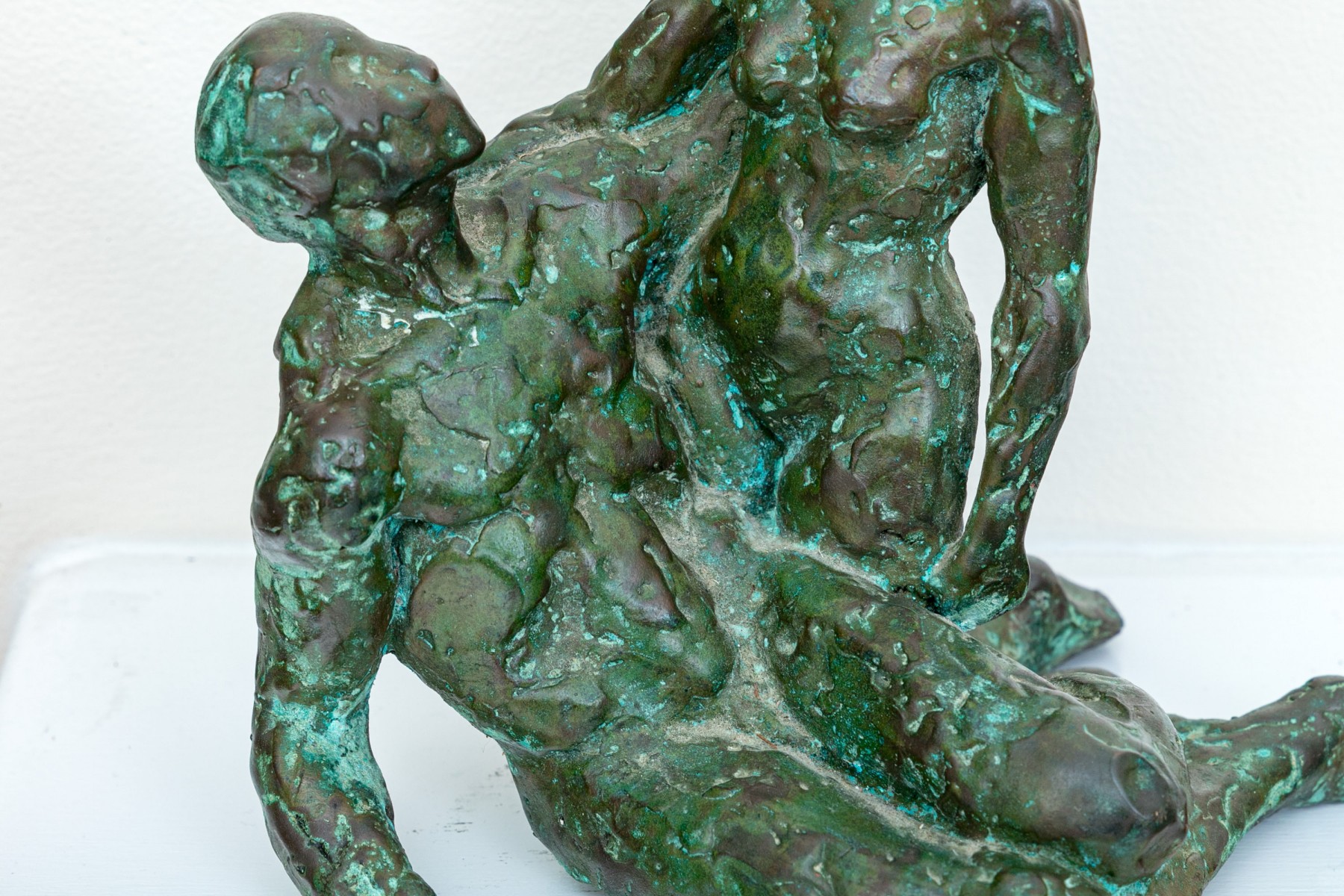 Depicting a reclined man reaching upwards toward a woman kneeling above. The sculpture has wonderful verdigris patination and presents impressively well.