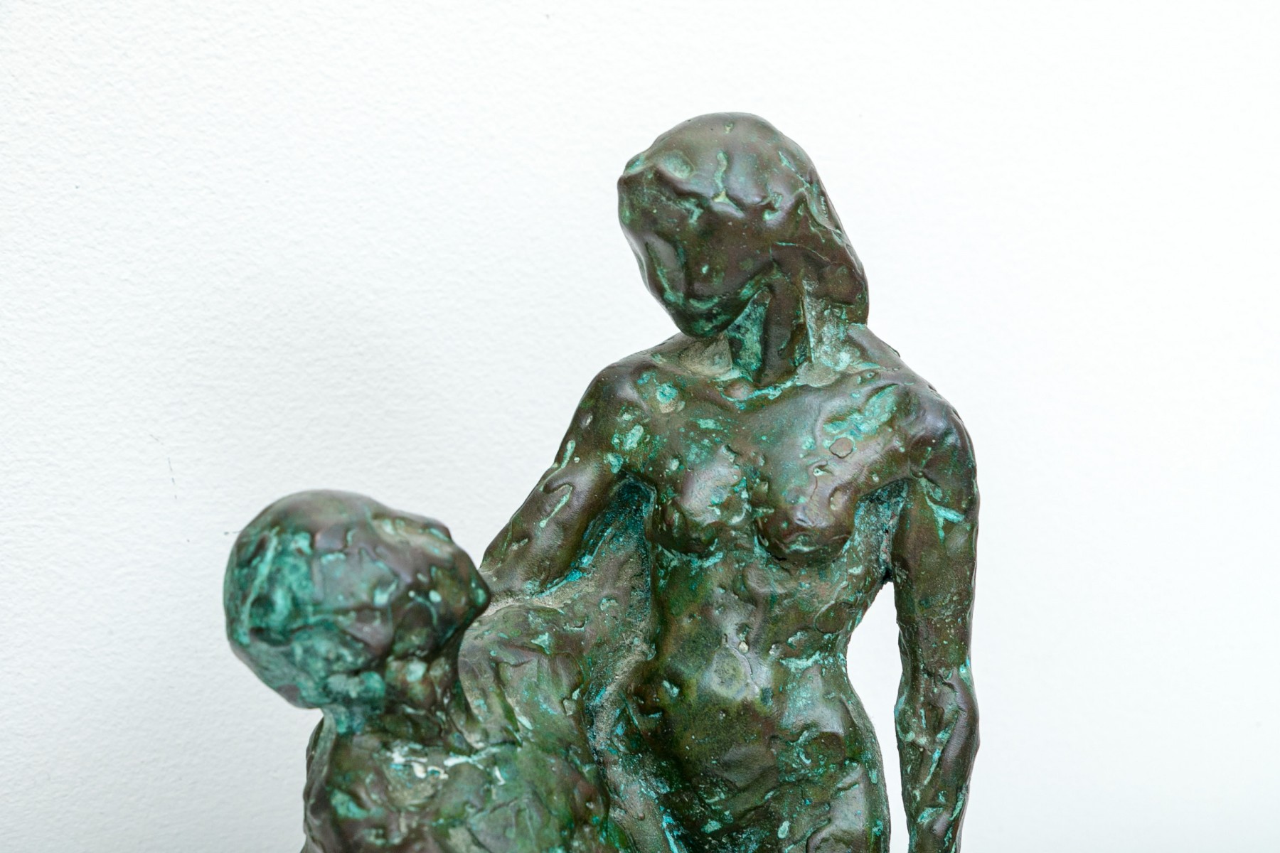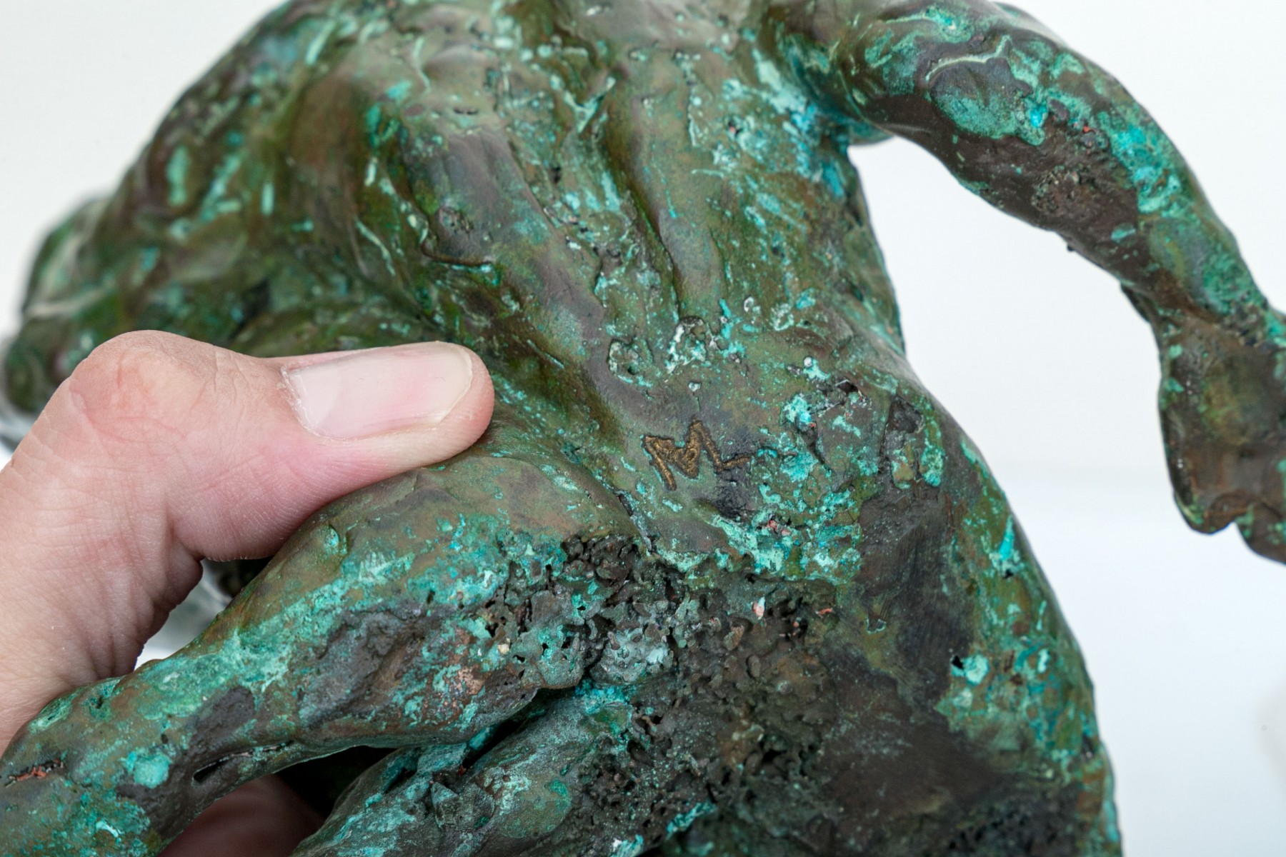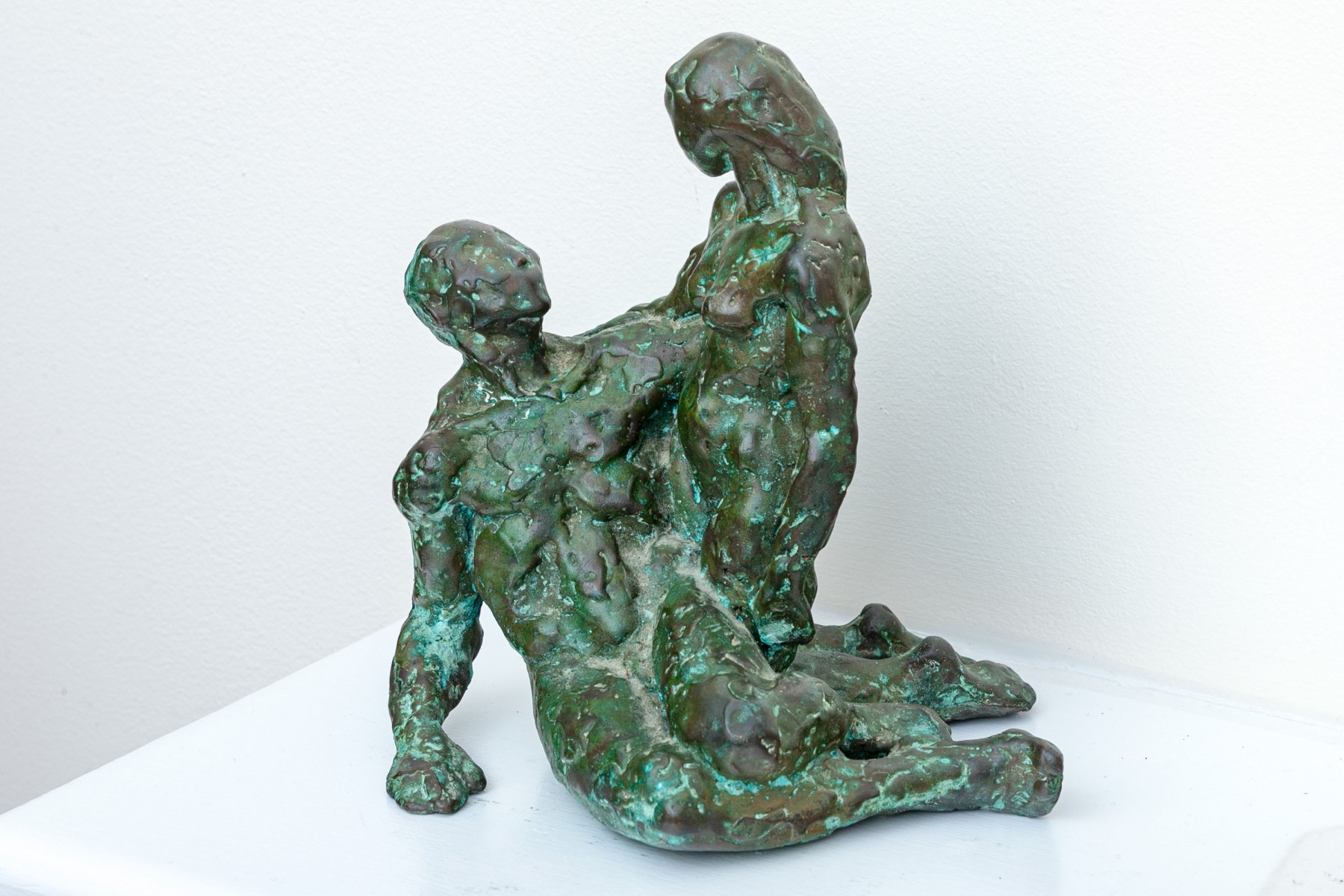 Depicting a reclined man reaching upwards toward a woman kneeling above. The sculpture has wonderful verdigris patination and presents impressively well.