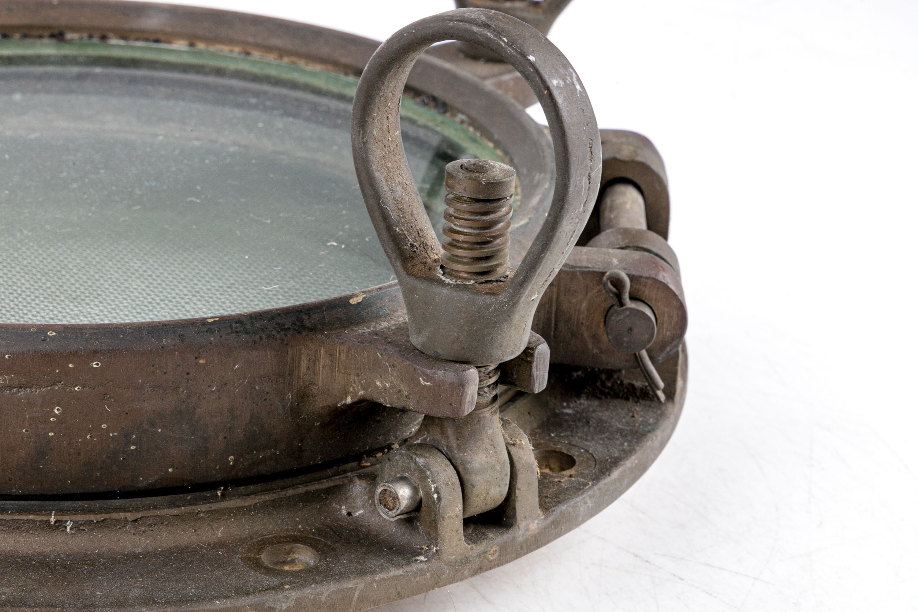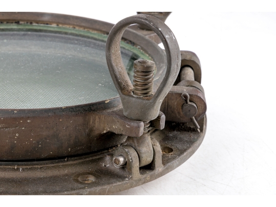 Condition: Please see detail photos. As stated above, the porthole has a great aged patina to the bronze and an excellent Nautical presentation.