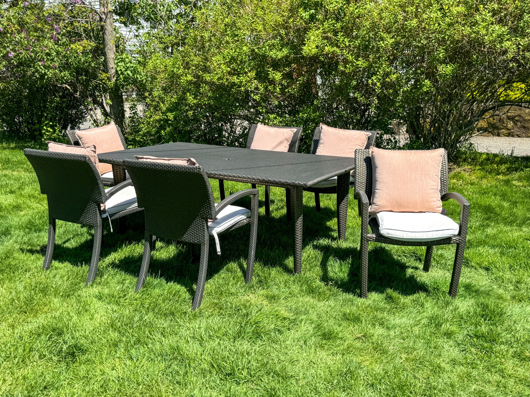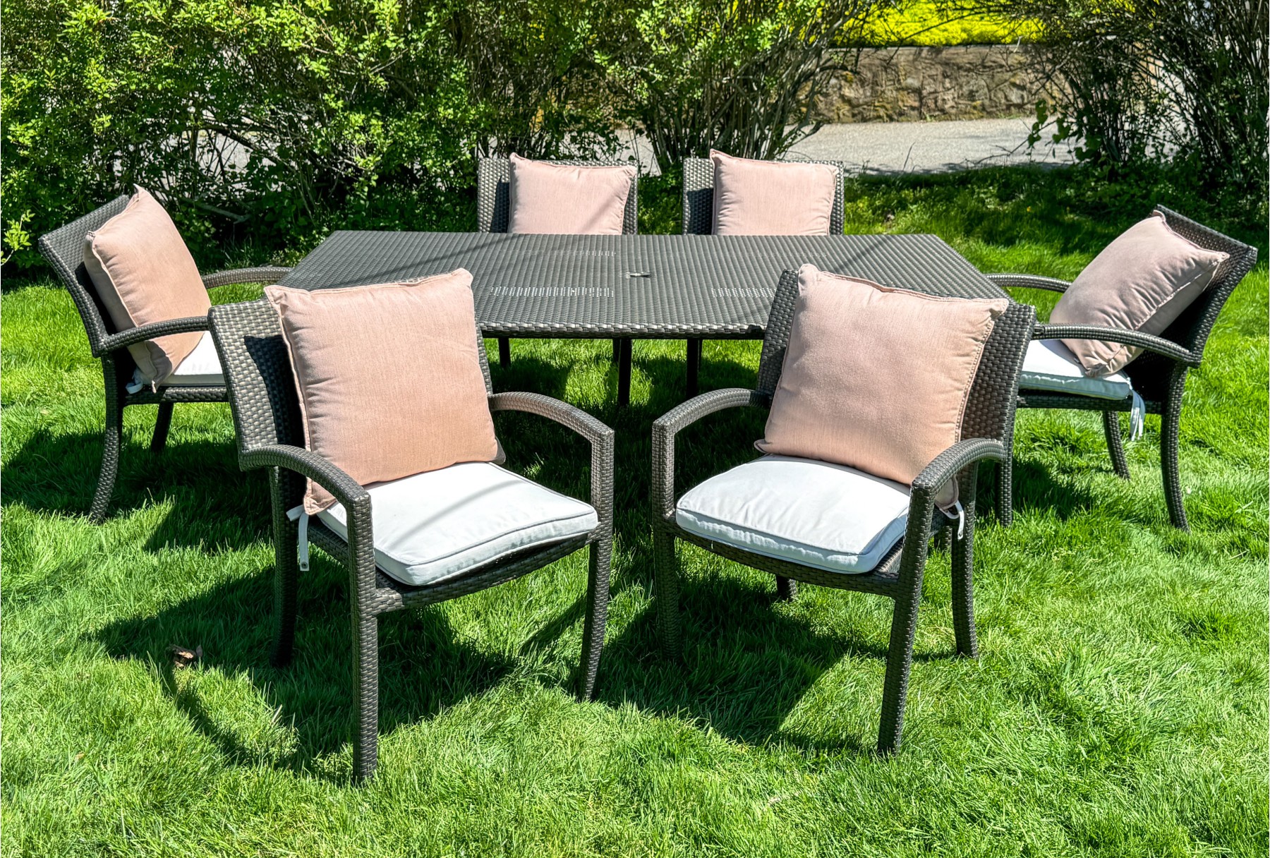 Brown Jordan Outdoor Dining Table With Six Armchairs #315221. Black Rock Galleries provides high end estate liquidation services through online estate auctions and a 50,000 sq ft designer showroom. estate liquidator, estate sale, online auction, antiques, fine art, liquidation, clean outs, auction, consignment, interior design, fine jewelry, collectibles, appraisals, estate appraisals, estate services, decor, furniture, furniture consignment, antique center, consignment shop. We offer appraisal services and specialize in fine art, jewelry, antiques and decorative arts. Sell with us. Black Rock Galleries is the tri-state's largest estate liquidator serving New England and the greater New York City area. We are the trusted source for expert appraisals, auction services, estate sales, and consignments. Black Rock Galleries is the east coast's largest and most trusted estate liquidator, with locations in Connecticut, greater Boston, MA and Raleigh, NC, Fairfield, Southport, Apex, TX. We are the best source for expert appraisals, auction services, estate sales and consignments. We have served thousands of families and estates with compassion, professionalism and expertise. BRG works with attorneys, executors, realtors and families to bring the greatest return on personal and estate property in the current market. Our unique combination of services make us the easy choice to get the job done in a timely and stress-free manner. We are with you from the initial consultation to the final clean out. Our house-built online auction software platform offers clients a dynamic approach to liquidating their personal property. This venue is most successful in bringing the best return with the least amount of disruption for our clients. See our services page for a complete description of this offering. Brown Jordan Outdoor Dining Table With Six Armchairs #315221
