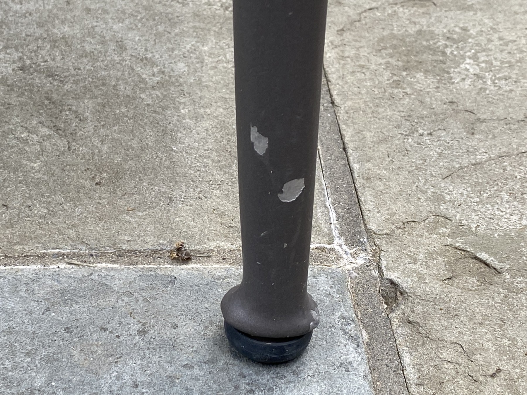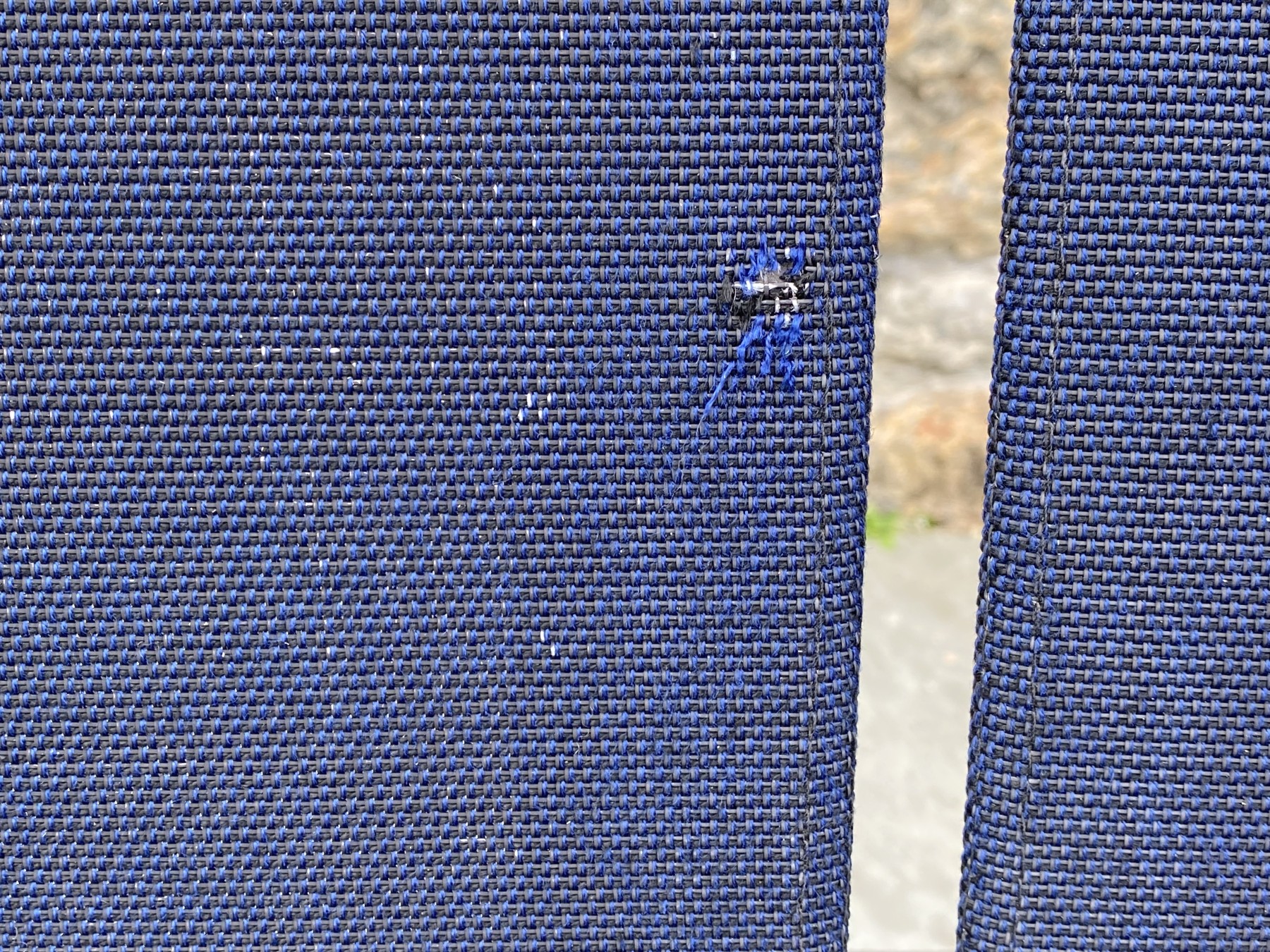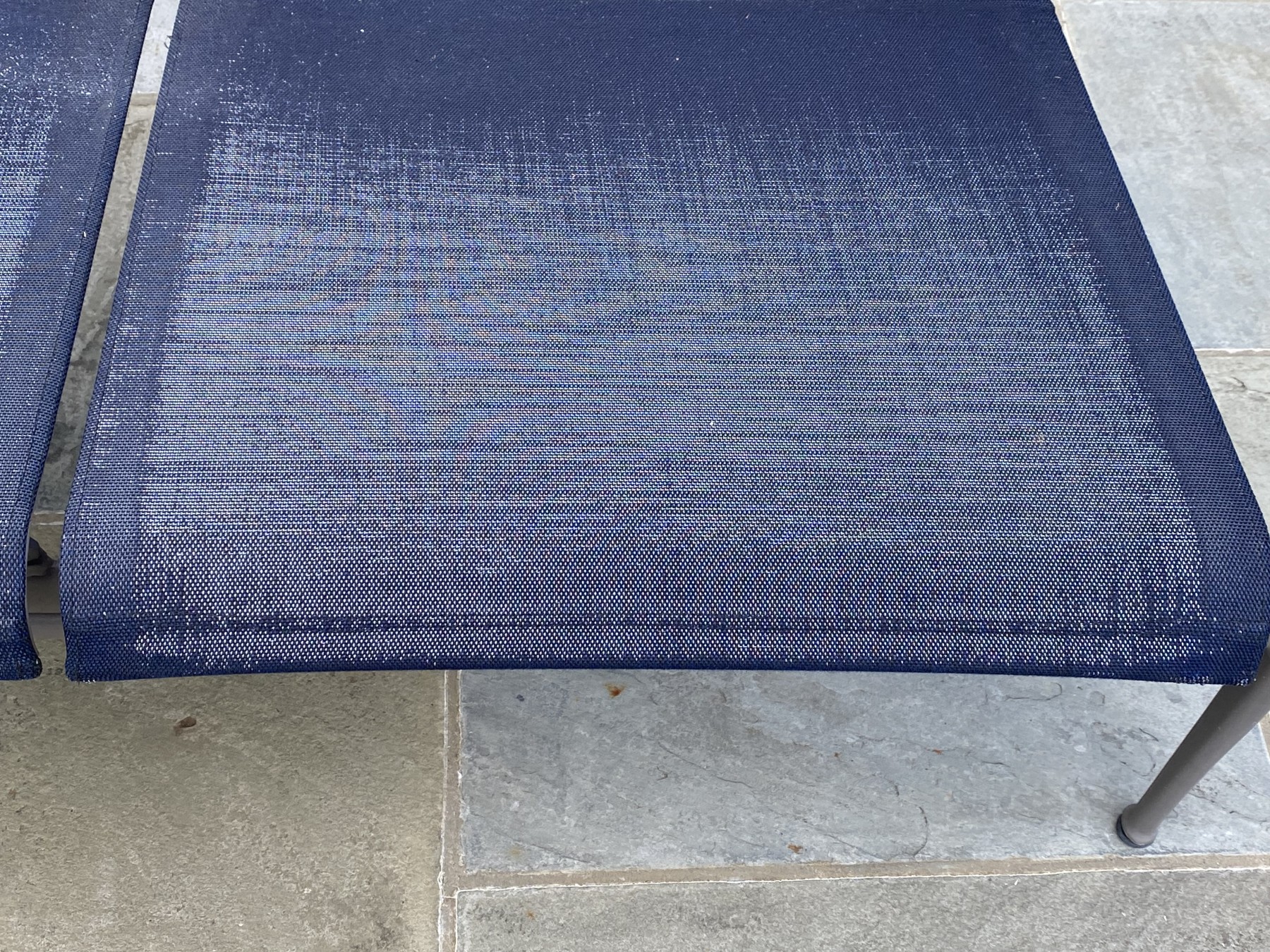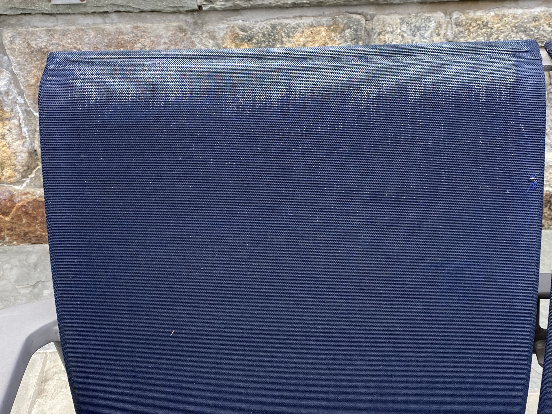 The canvas seats past their useable life, worn, color bleached, the ends of the arms have losses to powder coating along with minor dents to aluminum frames front of arms and side of arms. Please view photos.