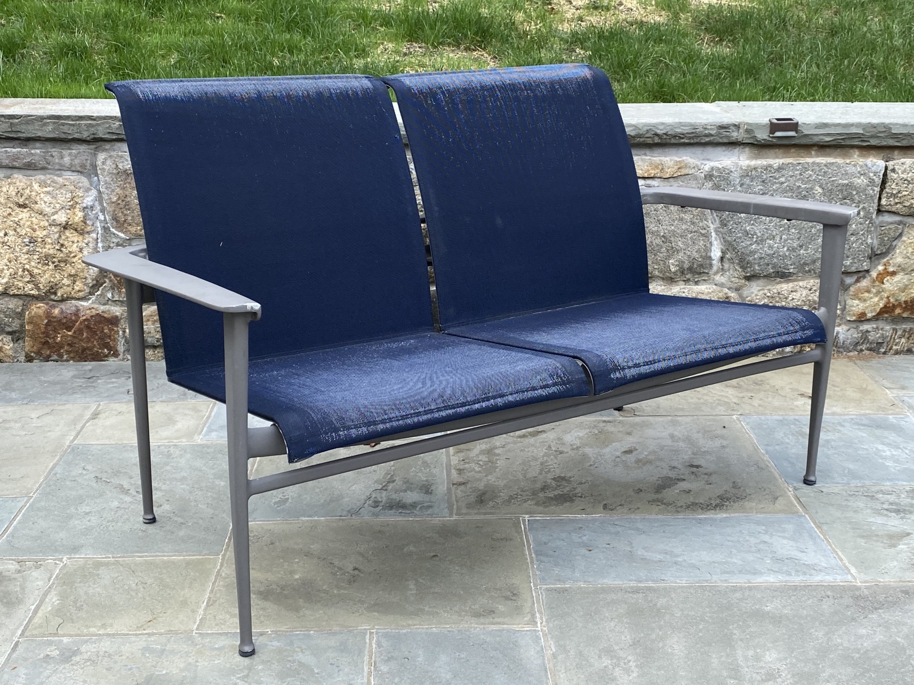 This Brown Jordan Two Seater Powder Coated Settee combines timeless design with outdoor durability.