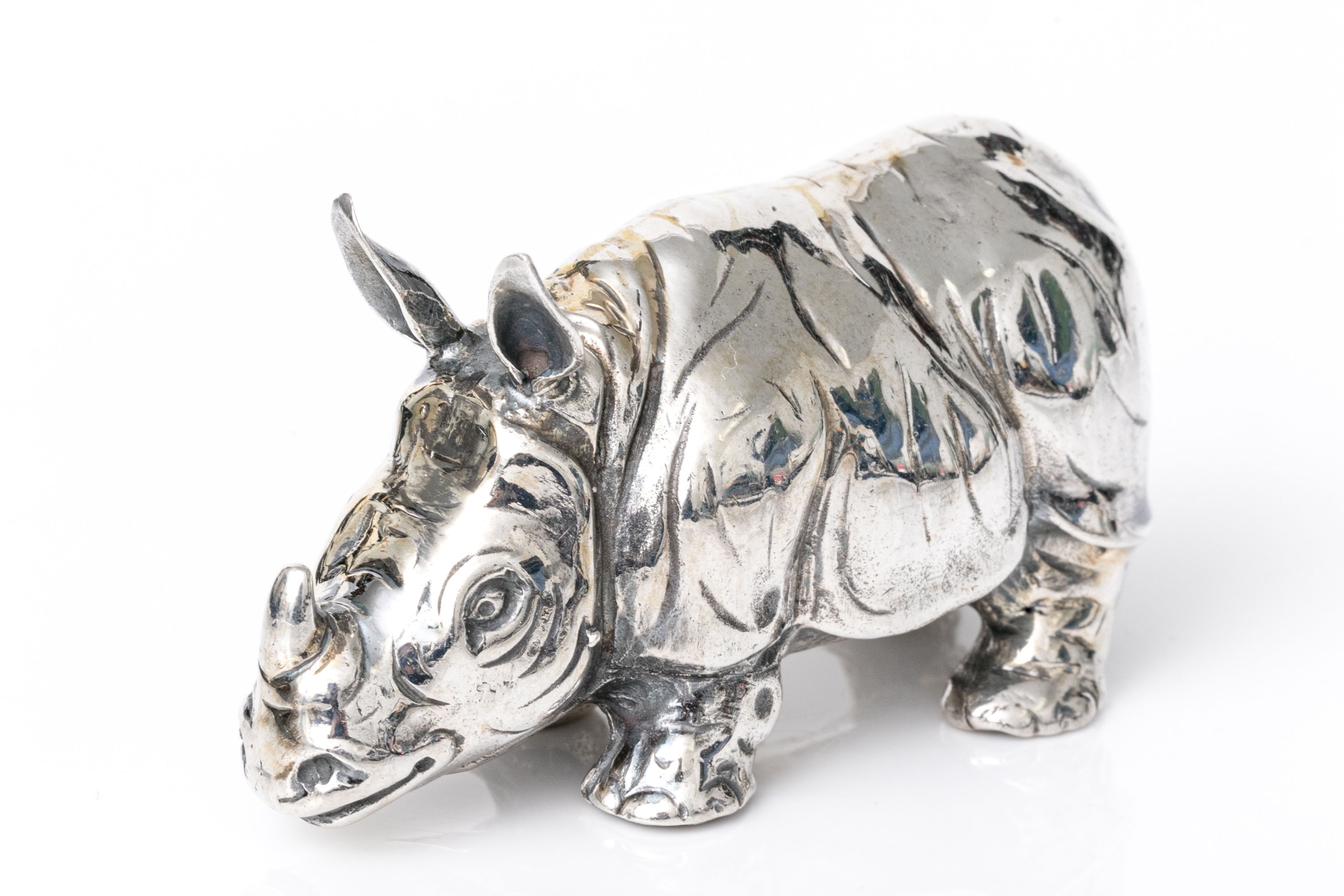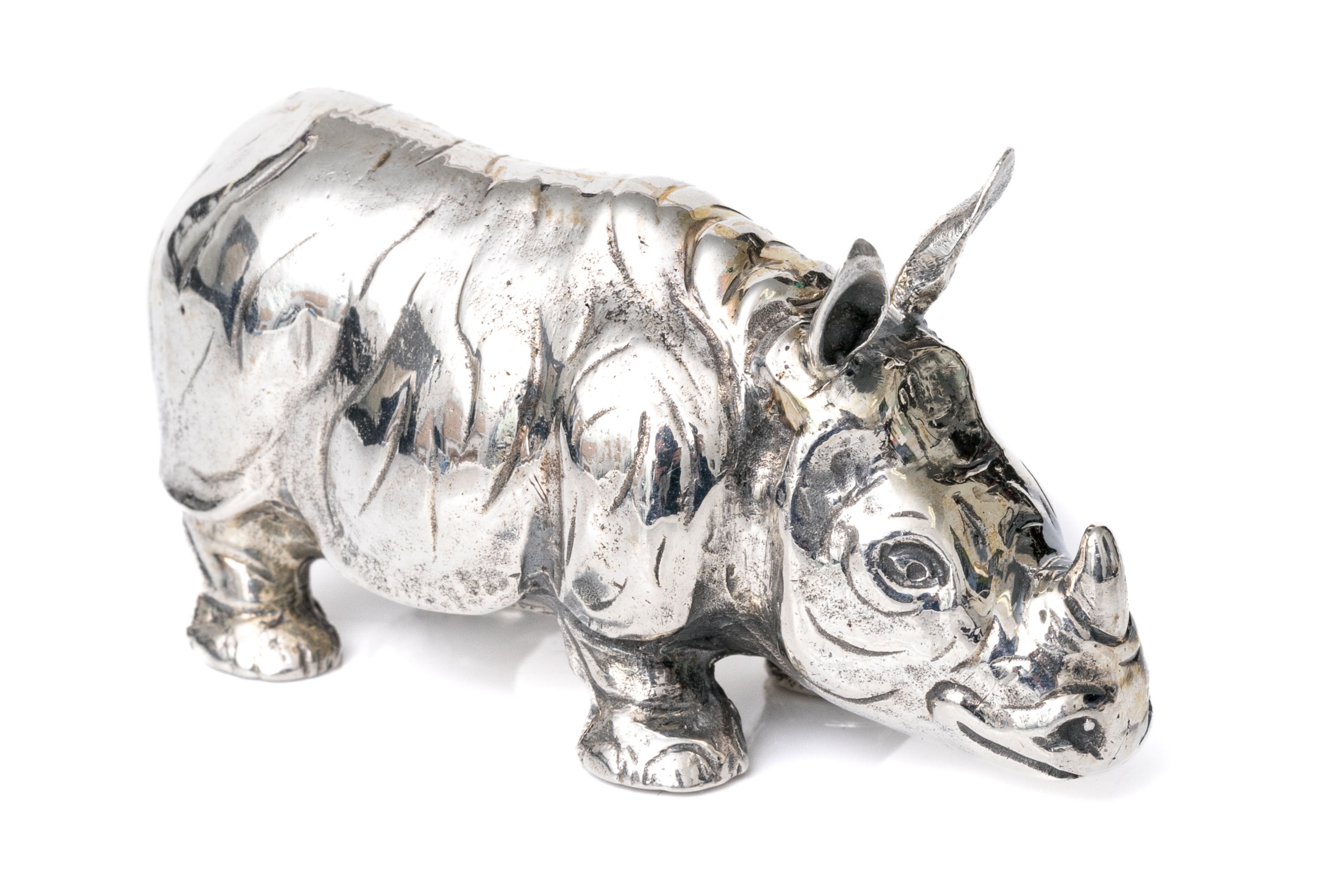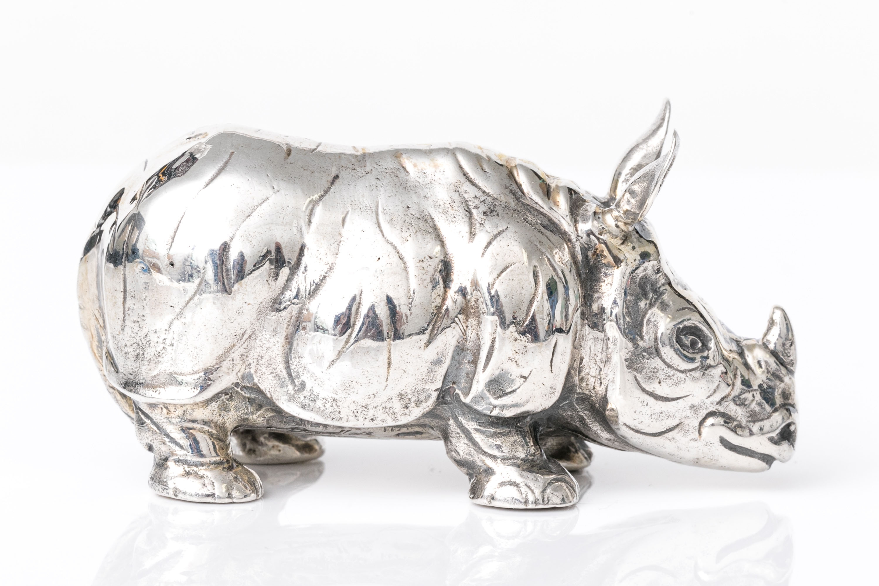 Buccellati sterling silver miniature captivating standing rhino, retail $630