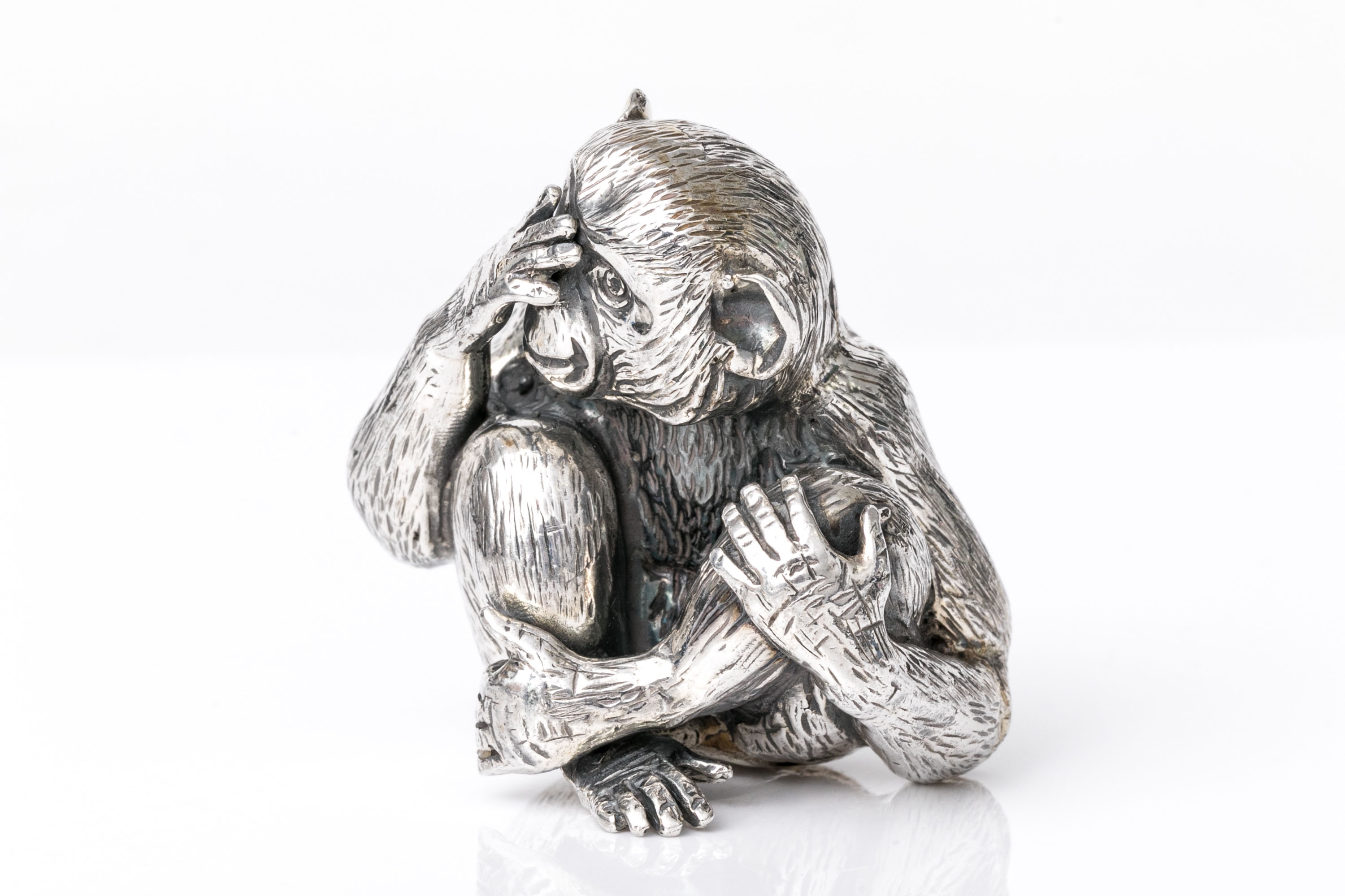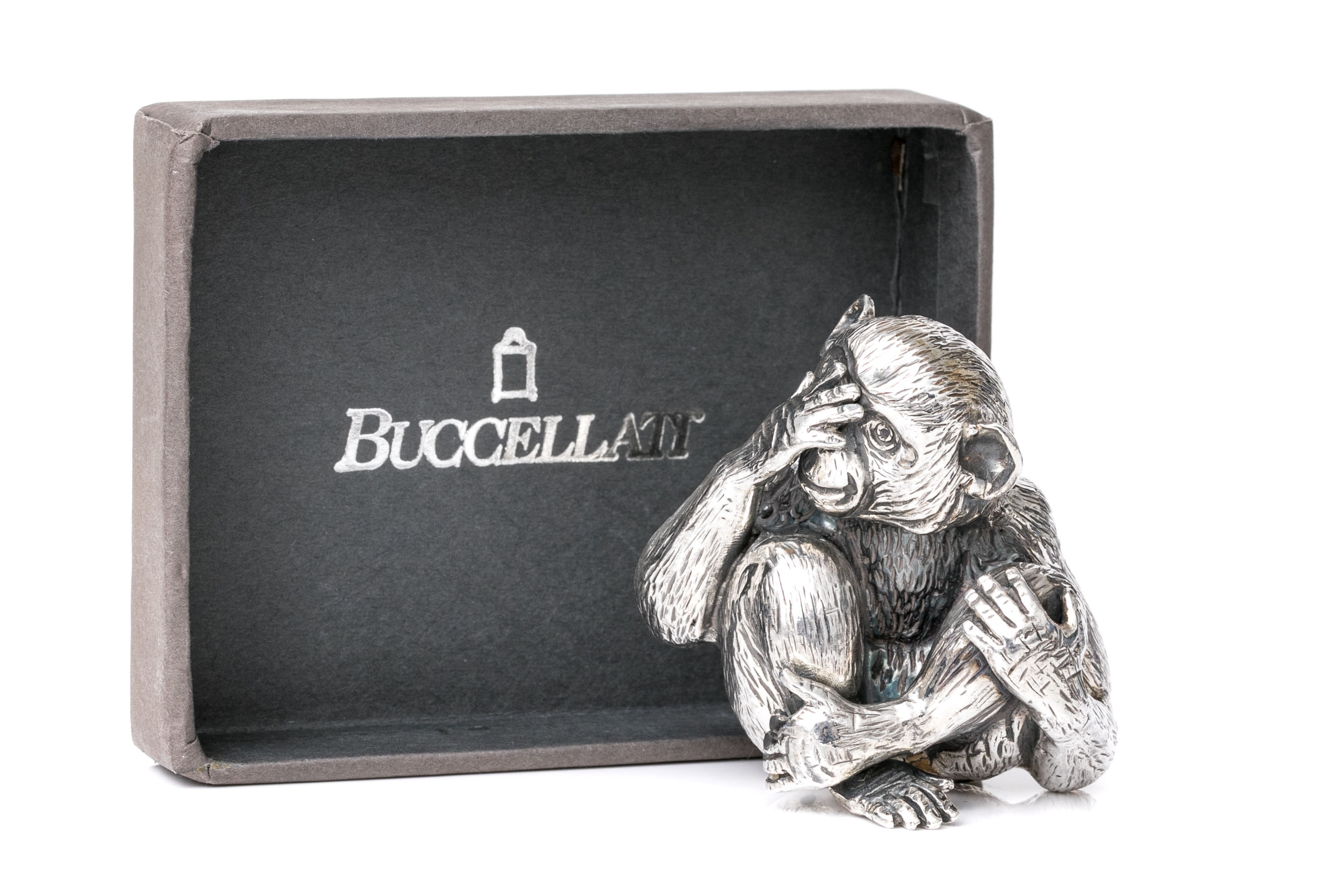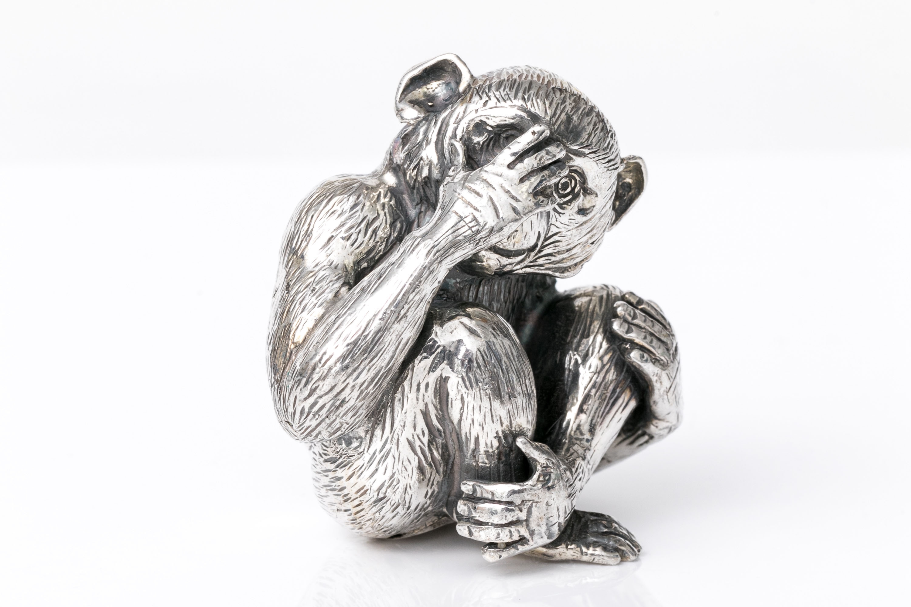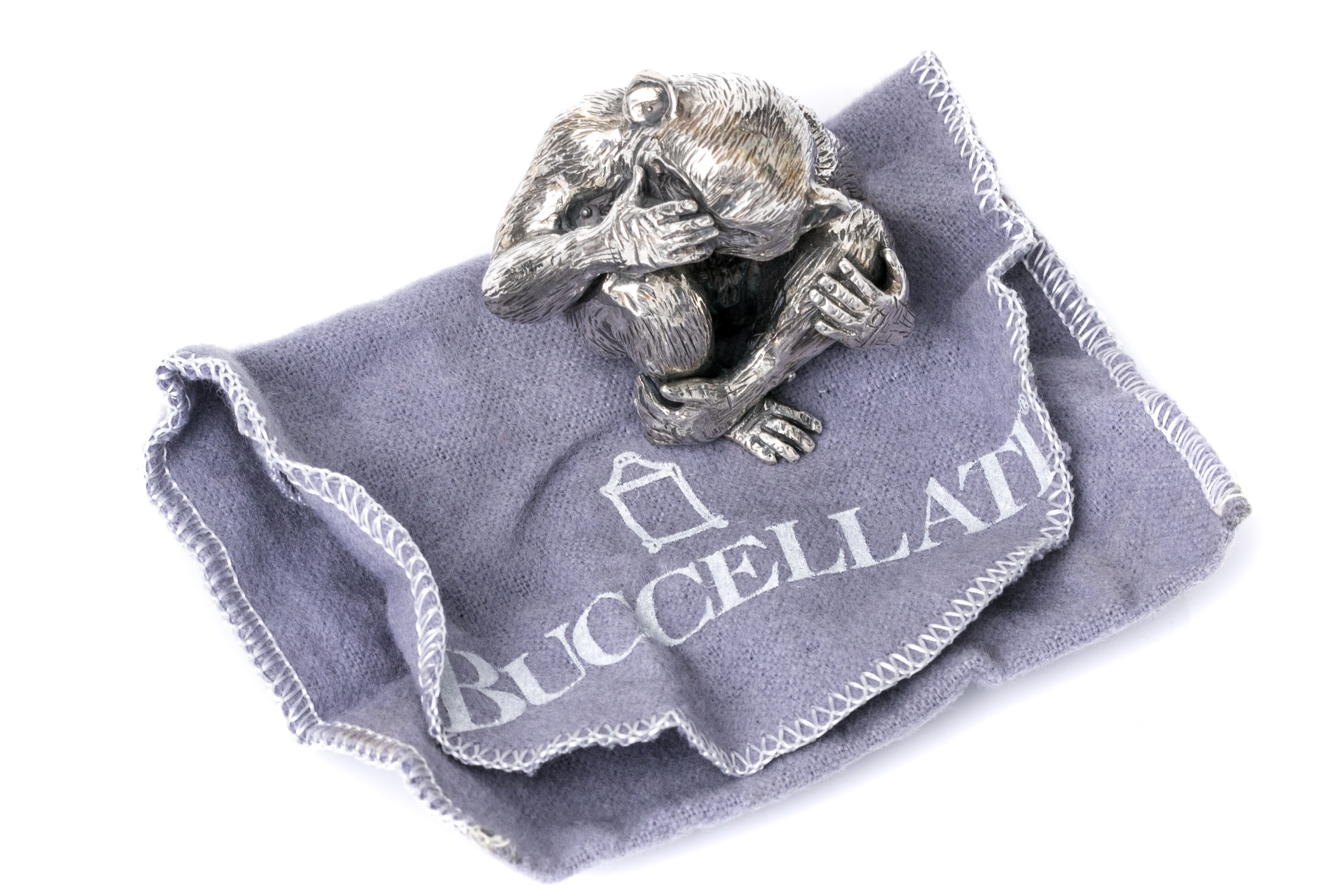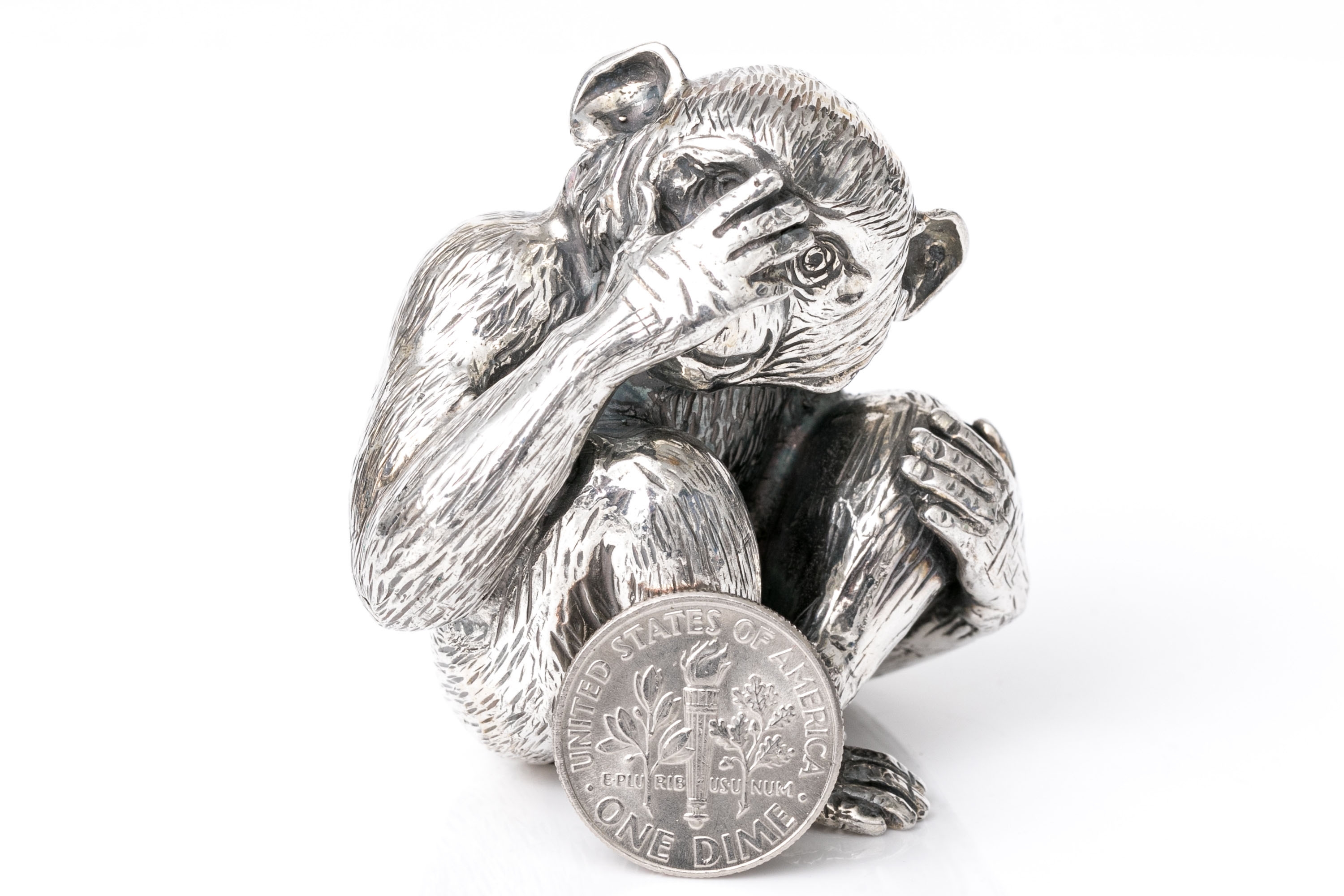 Buccellati sterling silver miniature whimsical "see no evil" monkey, retail $1050, with box