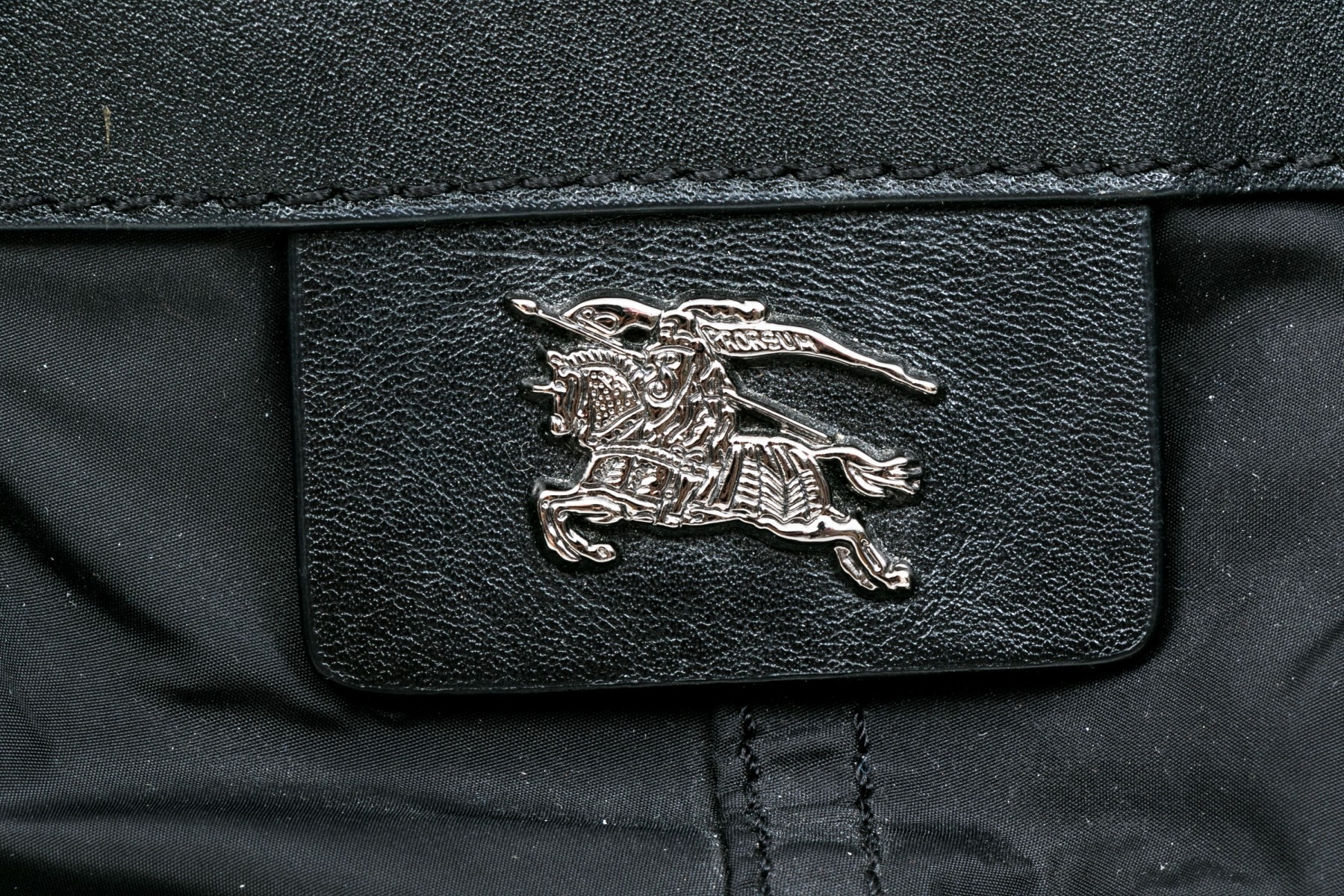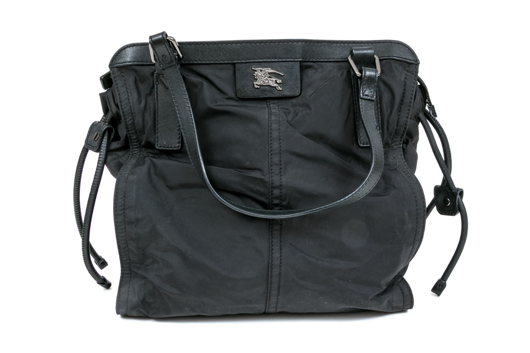Burberry Black Nylon Top Handle Bag, Plaid Lining
