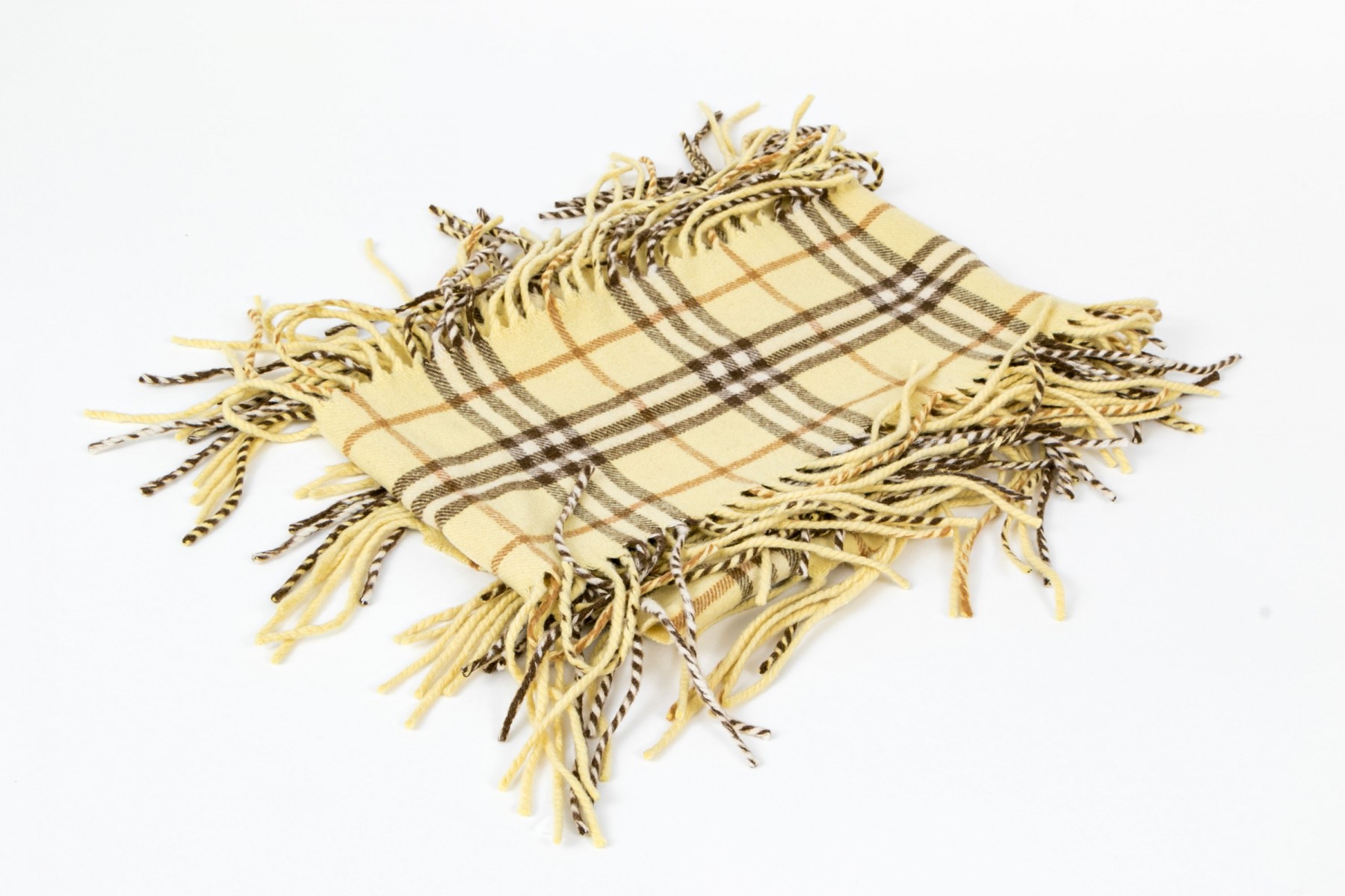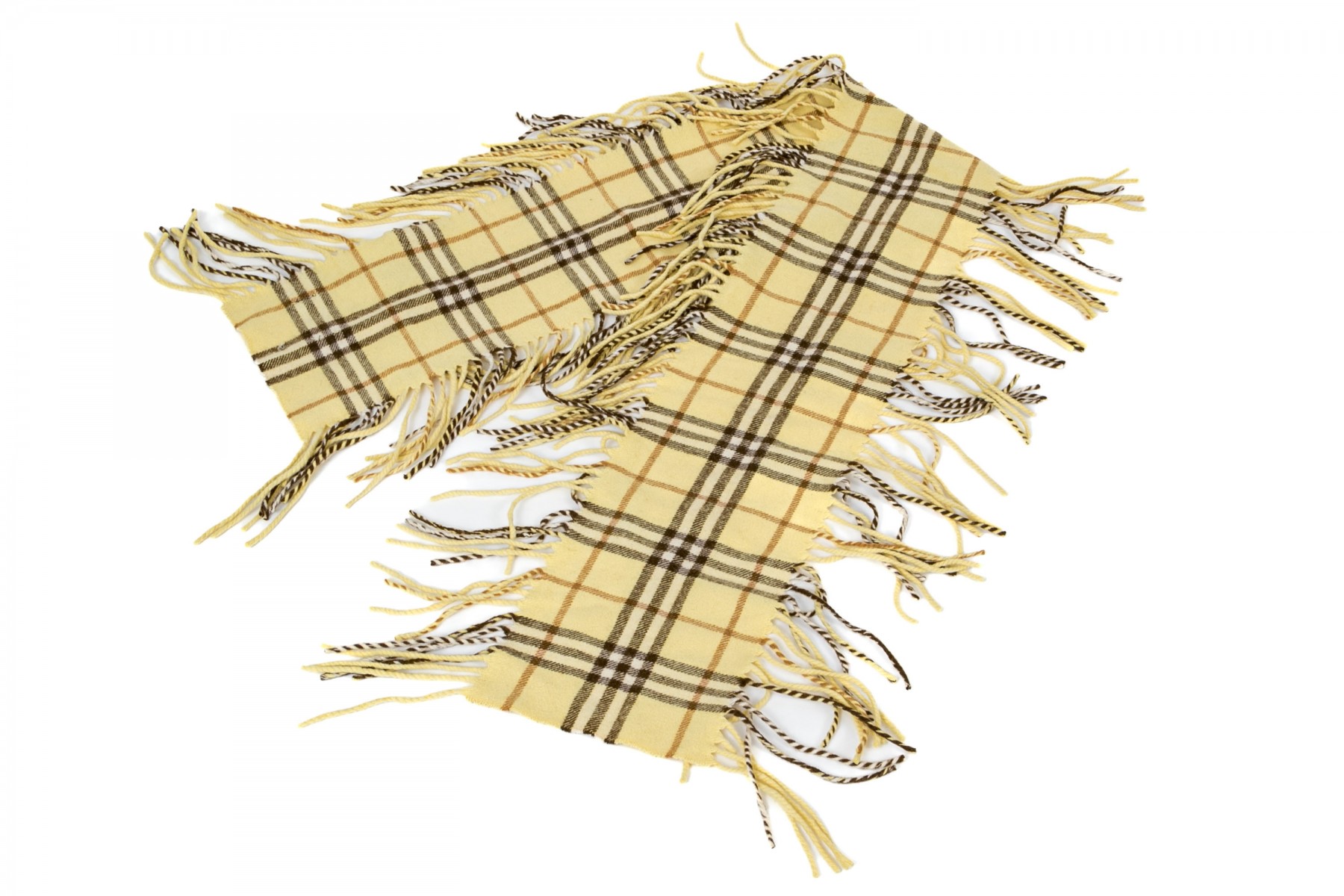 Burberry cheerful yellow and brown plaid cashmere scarf, fringed sides