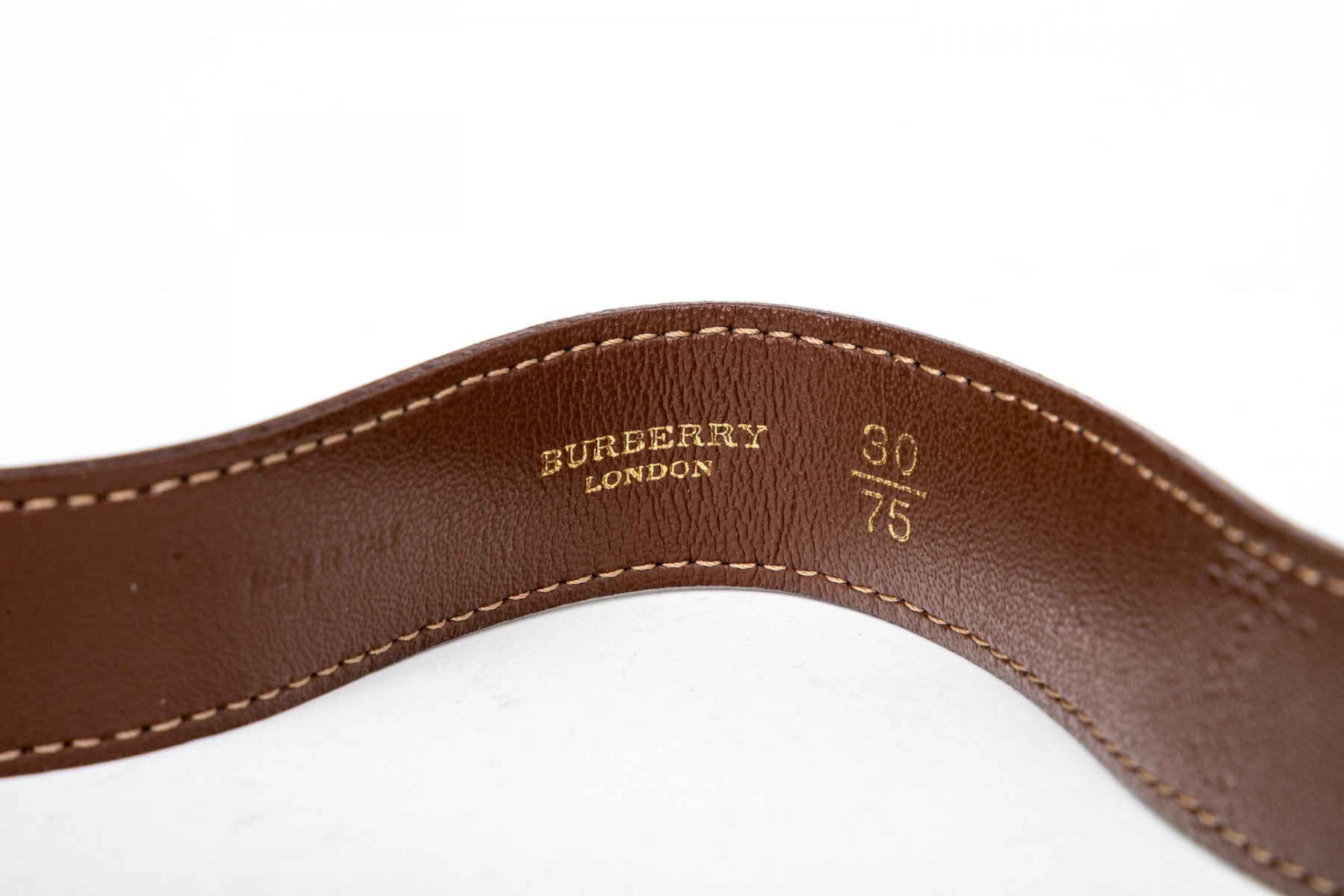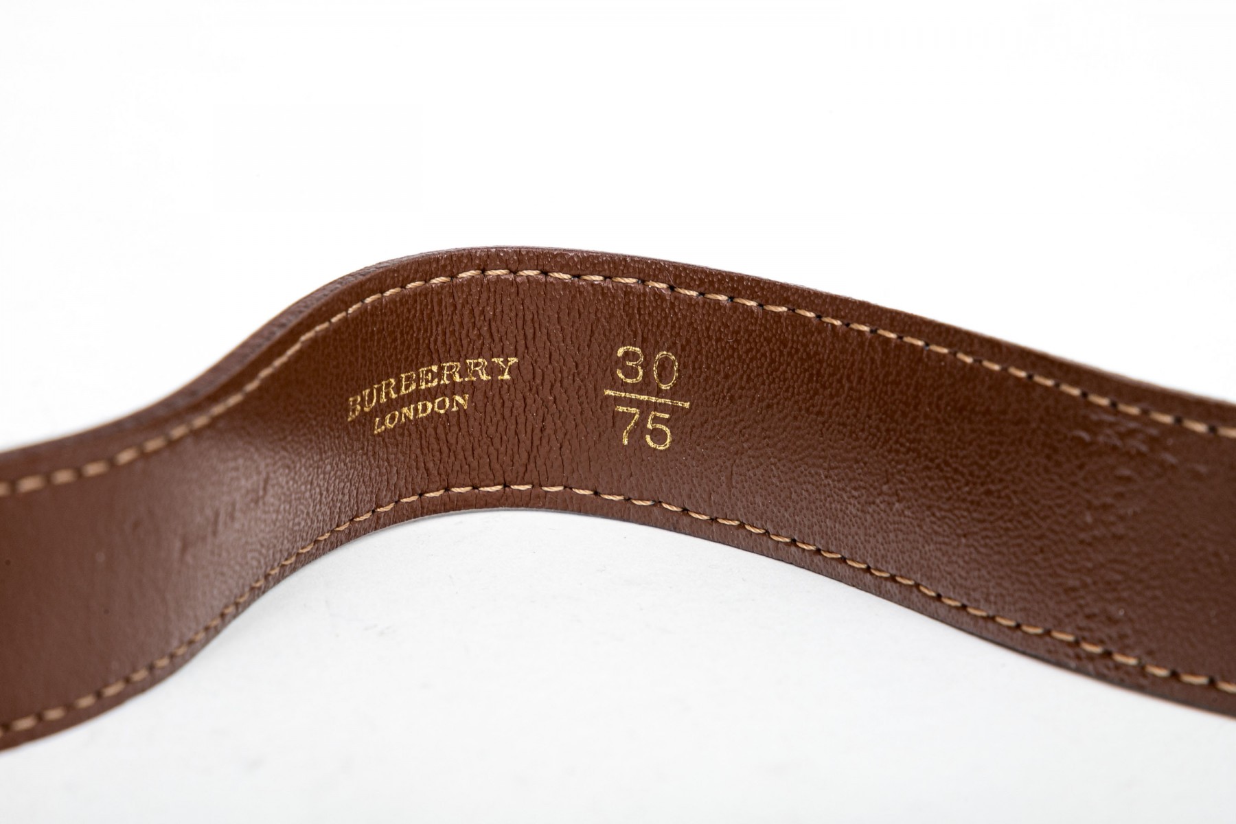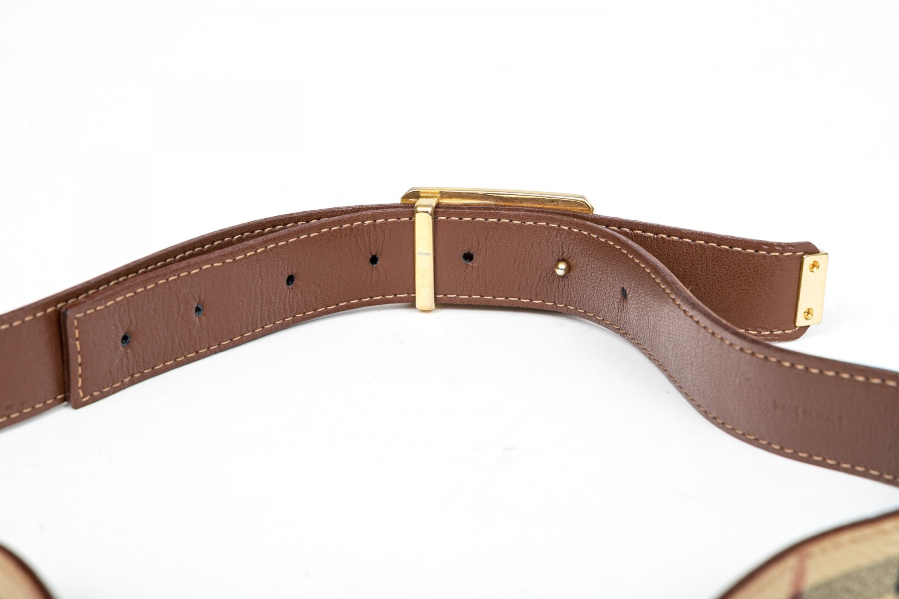 Burberry classic plaid leather belt with clamp buckle closure, 30/75, gold tone hardware