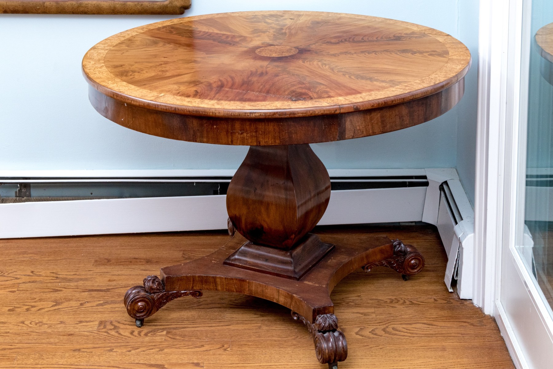 Burled Pedestal Occasional Table #448400. Black Rock Galleries provides high end estate liquidation services through online estate auctions and a 50,000 sq ft designer showroom. estate liquidator, estate sale, online auction, antiques, fine art, liquidation, clean outs, auction, consignment, interior design, fine jewelry, collectibles, appraisals, estate appraisals, estate services, decor, furniture, furniture consignment, antique center, consignment shop. We offer appraisal services and specialize in fine art, jewelry, antiques and decorative arts. Sell with us. Black Rock Galleries is the tri-state's largest estate liquidator serving New England and the greater New York City area. We are the trusted source for expert appraisals, auction services, estate sales, and consignments. Black Rock Galleries is the east coast's largest and most trusted estate liquidator, with locations in Connecticut, greater Boston, MA and Raleigh, NC, Fairfield, Southport, Apex, TX. We are the best source for expert appraisals, auction services, estate sales and consignments. We have served thousands of families and estates with compassion, professionalism and expertise. BRG works with attorneys, executors, realtors and families to bring the greatest return on personal and estate property in the current market. Our unique combination of services make us the easy choice to get the job done in a timely and stress-free manner. We are with you from the initial consultation to the final clean out. Our house-built online auction software platform offers clients a dynamic approach to liquidating their personal property. This venue is most successful in bringing the best return with the least amount of disruption for our clients. See our services page for a complete description of this offering. Burled Pedestal Occasional Table #448400