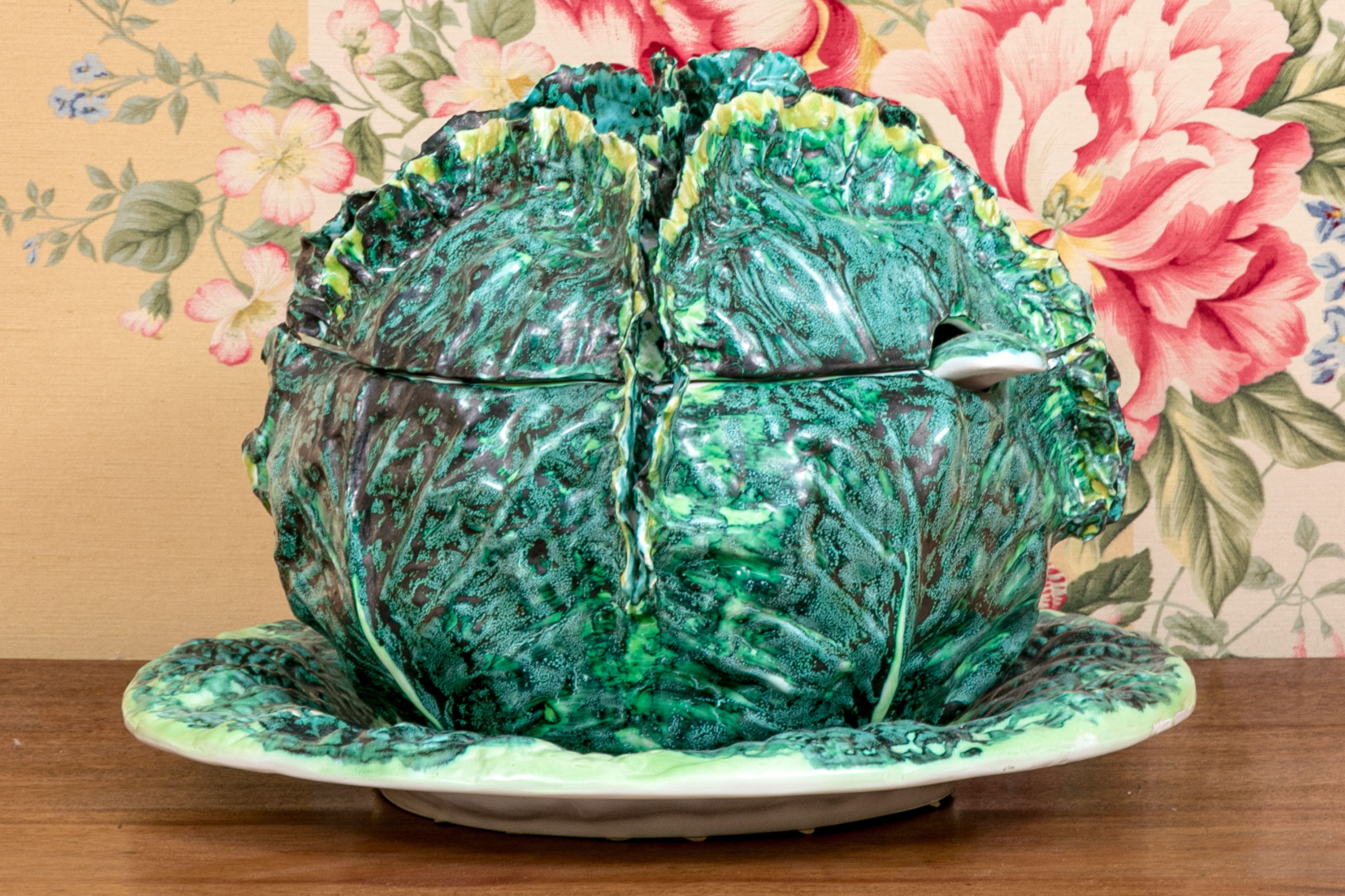 Fantastically potted and hand-painted in the form of cabbage.